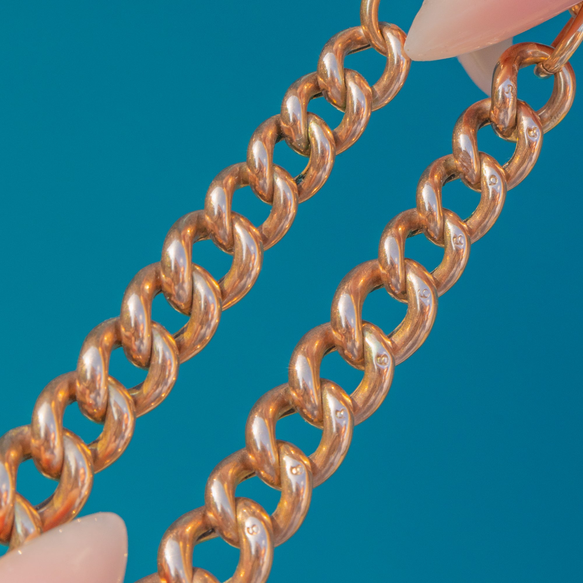 An impressively weighty Victorian Albert chain in rich 9ct Gold, complete with an unusual trio of dog-clips that make this antique chain endlessly versatile and customisable.