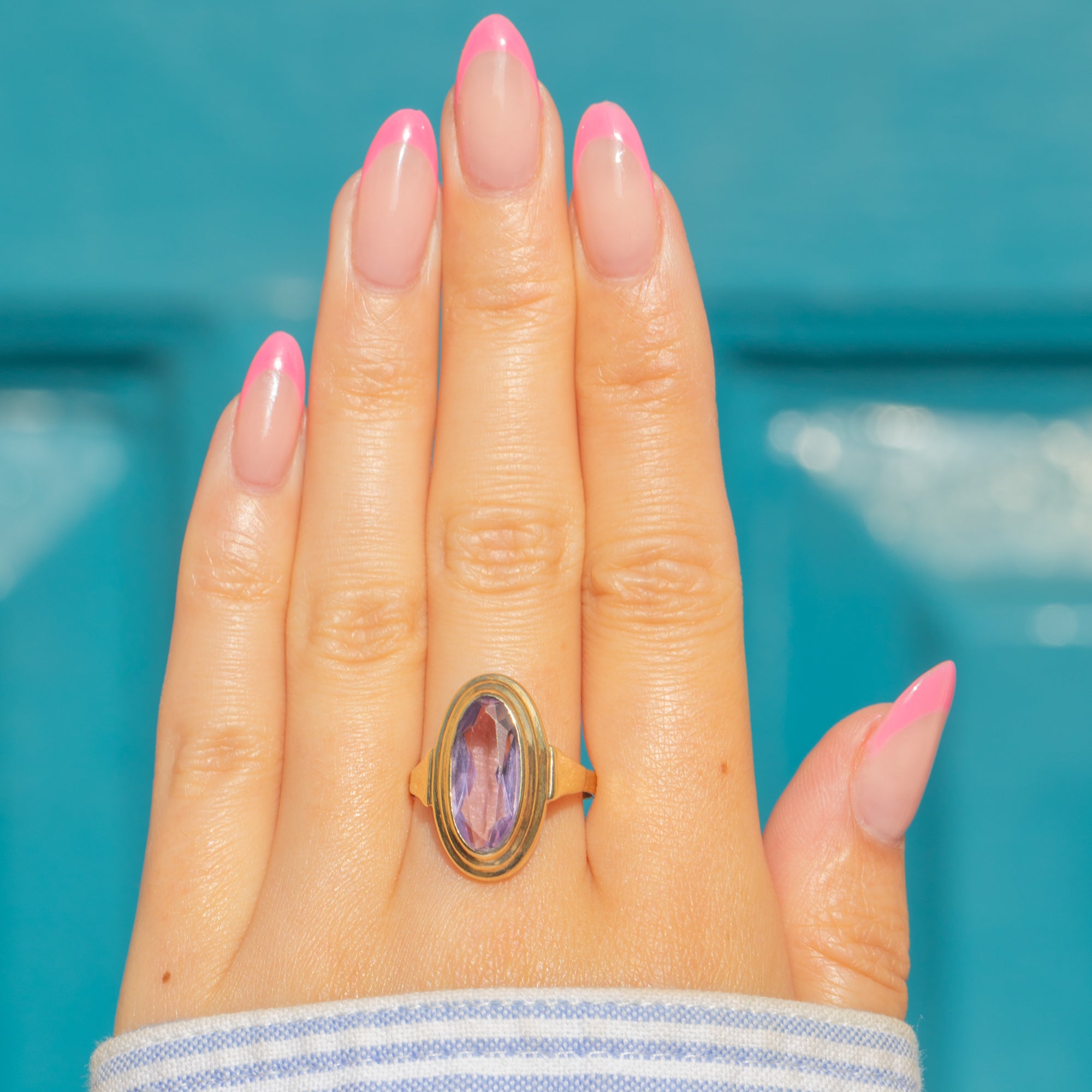 Inject some vintage glamour into your wardrobe with this Rose-De-France Amethyst Gold oval dress ring! The exuberant 1.60ct Rose-De-France Amethyst boasts the most beautiful lilac hue, with its subtle facets providing a true mystical edge.
