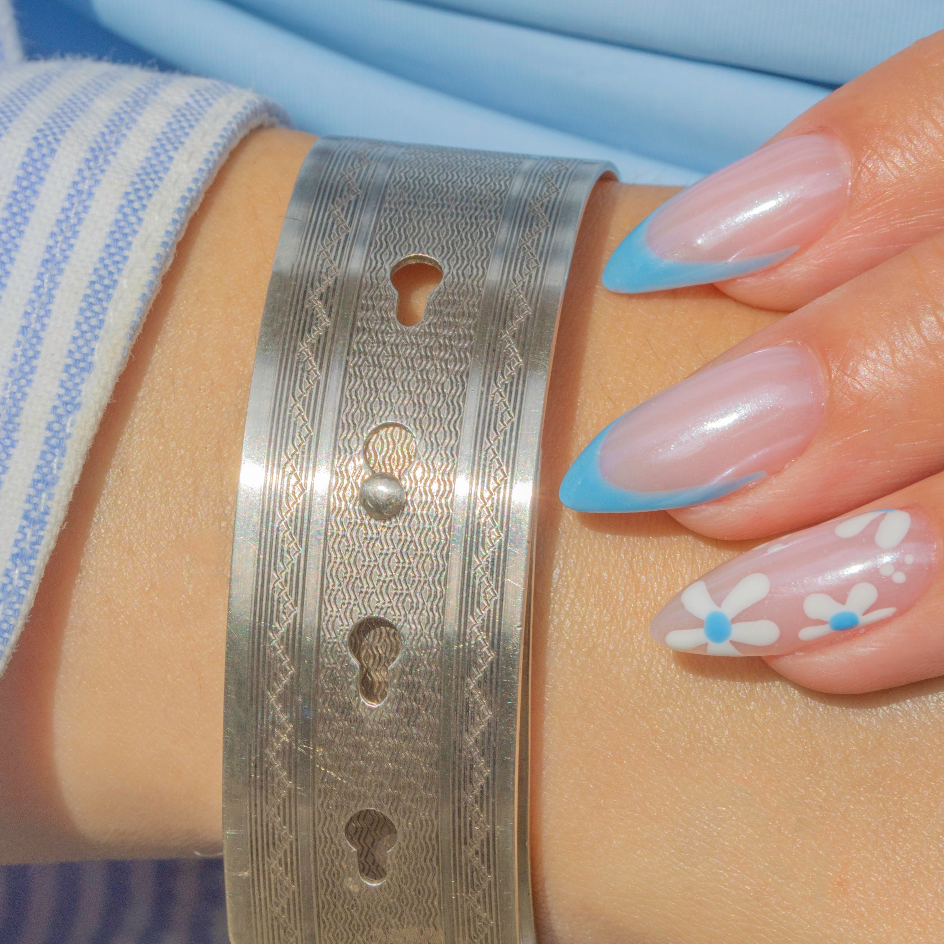 This lovely vintage Silver bracelet has a distinct belt motif with a beautiful striped texture that catches the light beautifully.