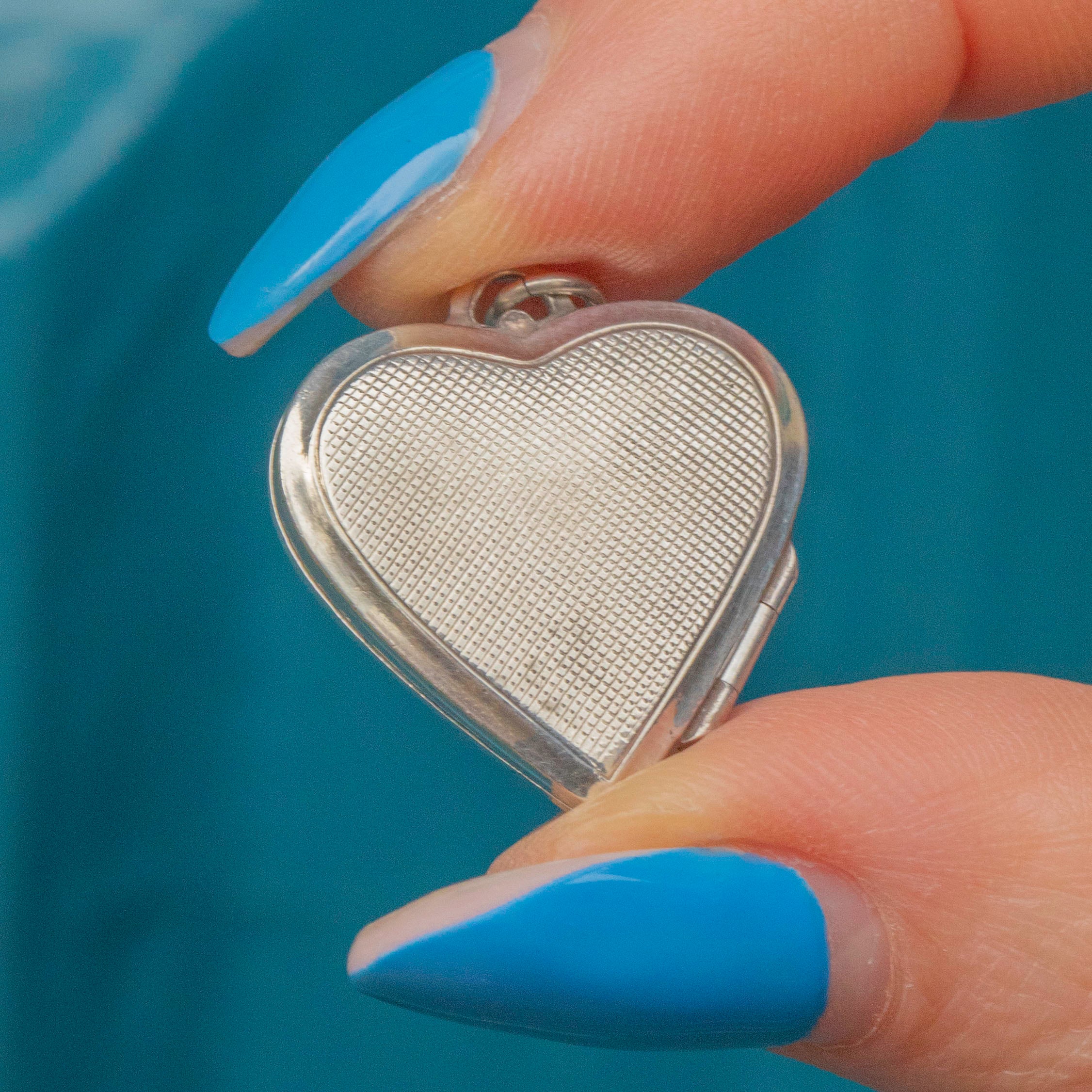 Crafted from gleaming Silver, this Art Deco locket opens to reveal space for two cherished photos to be placed inside. Her classic heart shape and exquisite detailing make her a thoughtful gift for someone special or a treasured addition to your jewellery collection.