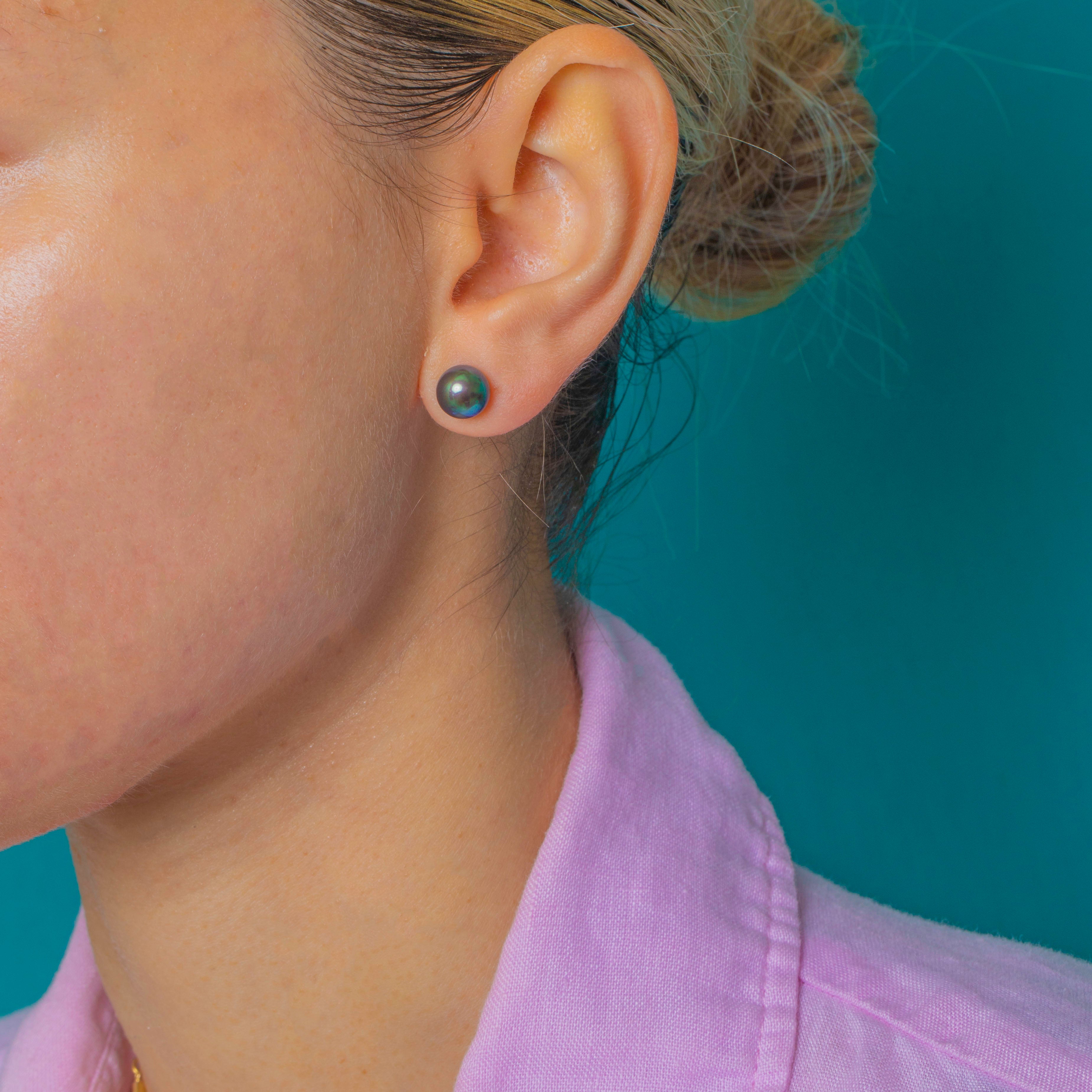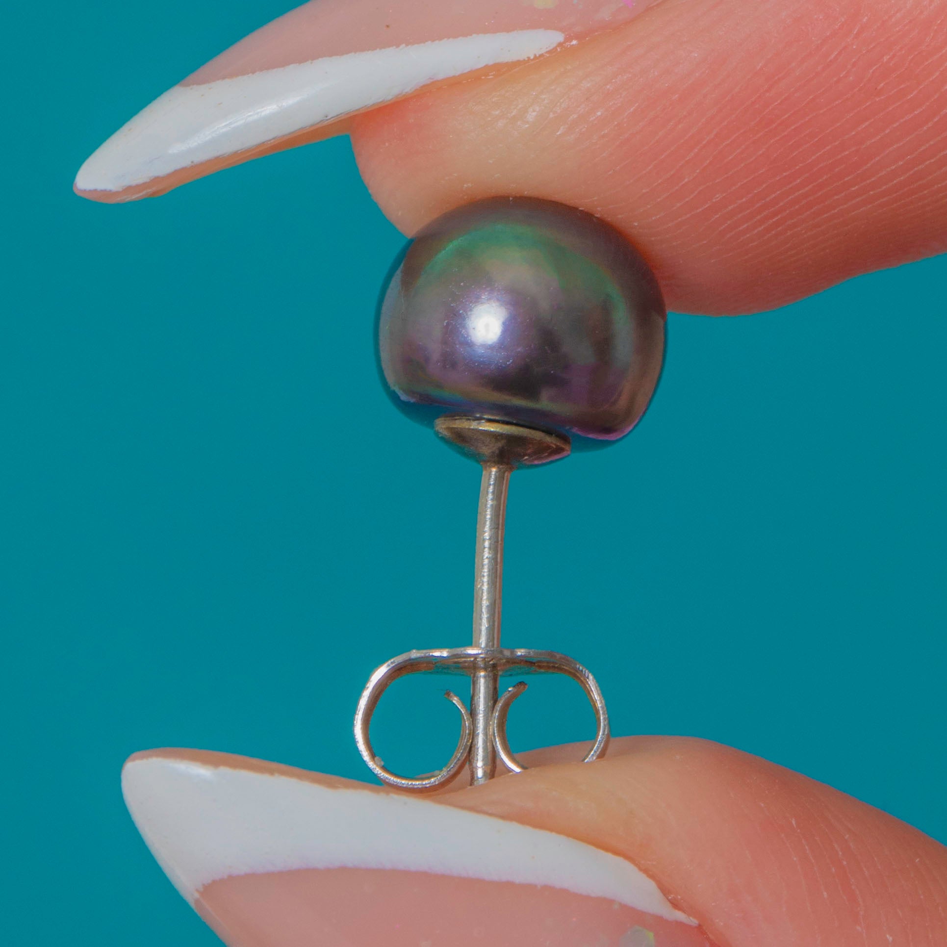 These Vintage Peacock Pearl stud earrings are a timeless classic. The lustrous 8mm Pearls display beautiful natural sheen and depth, making them effortlessly elegant for everyday wear or special occasions.