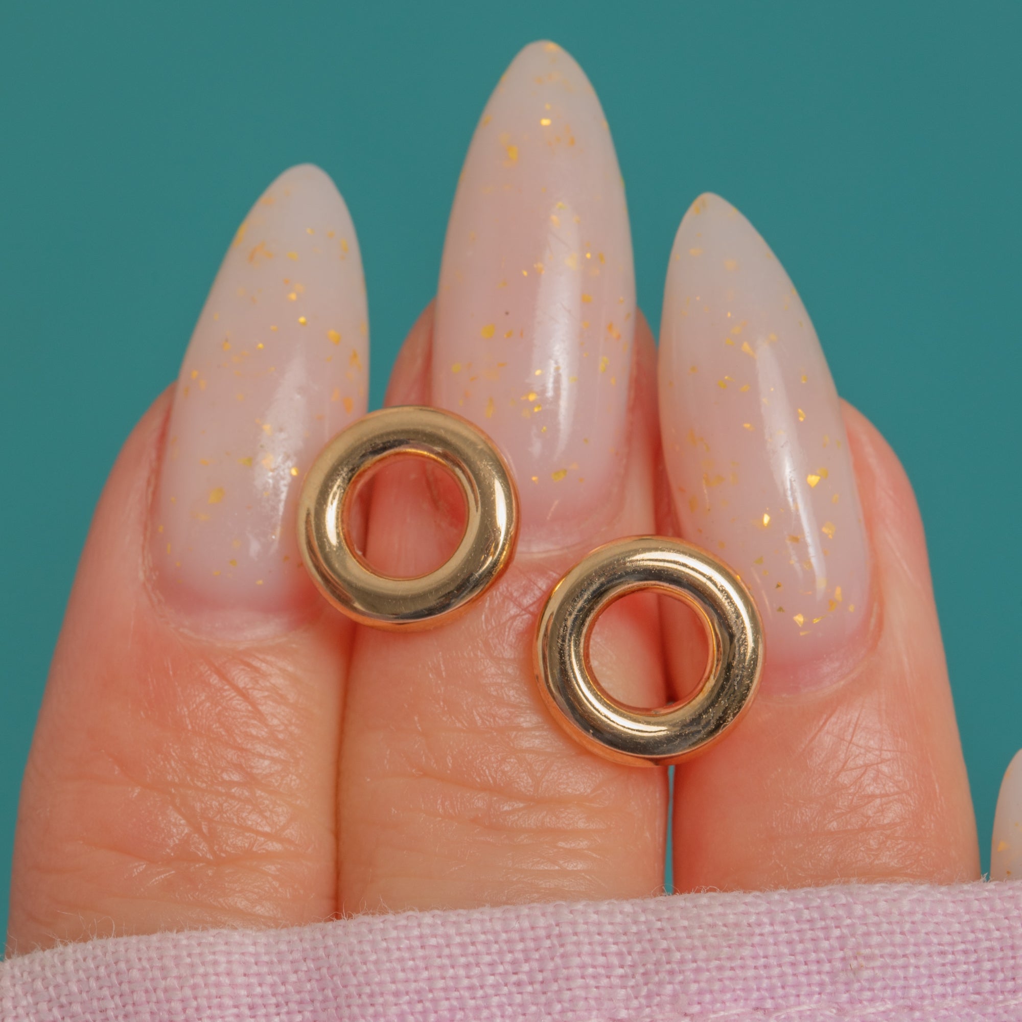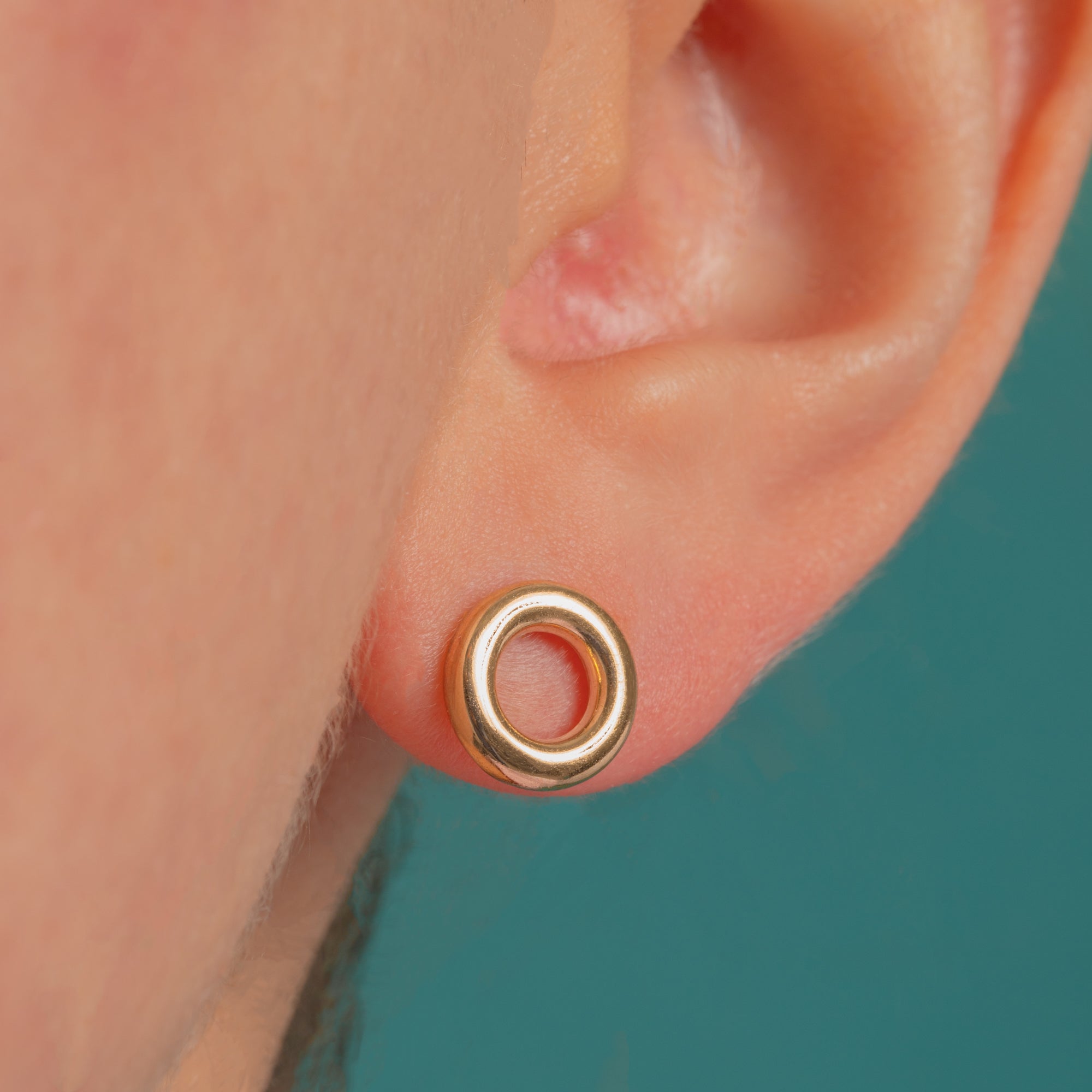 Sleek, simple, and effortlessly polished, these 9ct Gold circle studs bring a minimalist touch to any jewellery wardrobe. The open “donut” silhouette sits flat to the lobe with a glossy high-polish finish that catches the light beautifully—perfect for everyday wear and easy to elevate for evening.