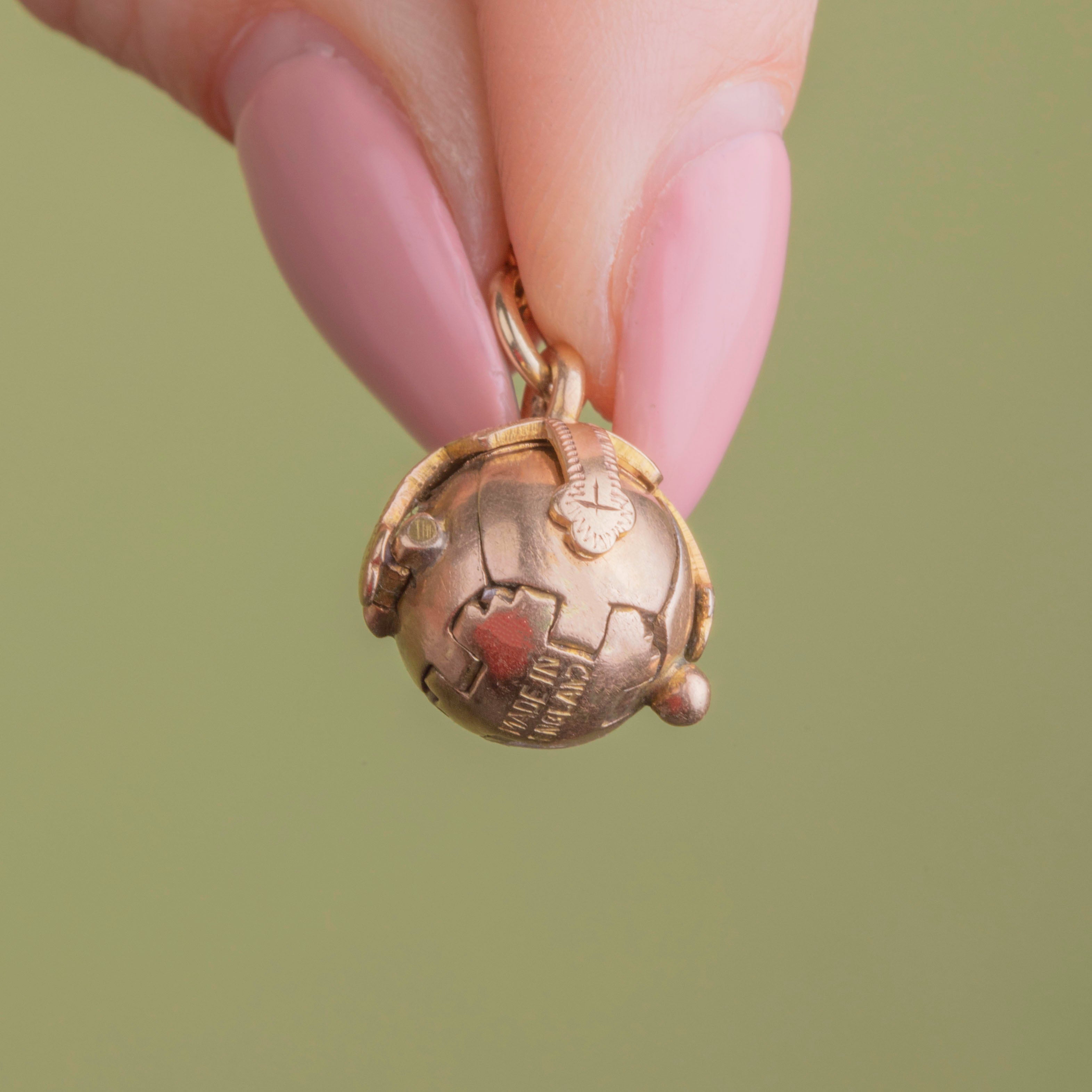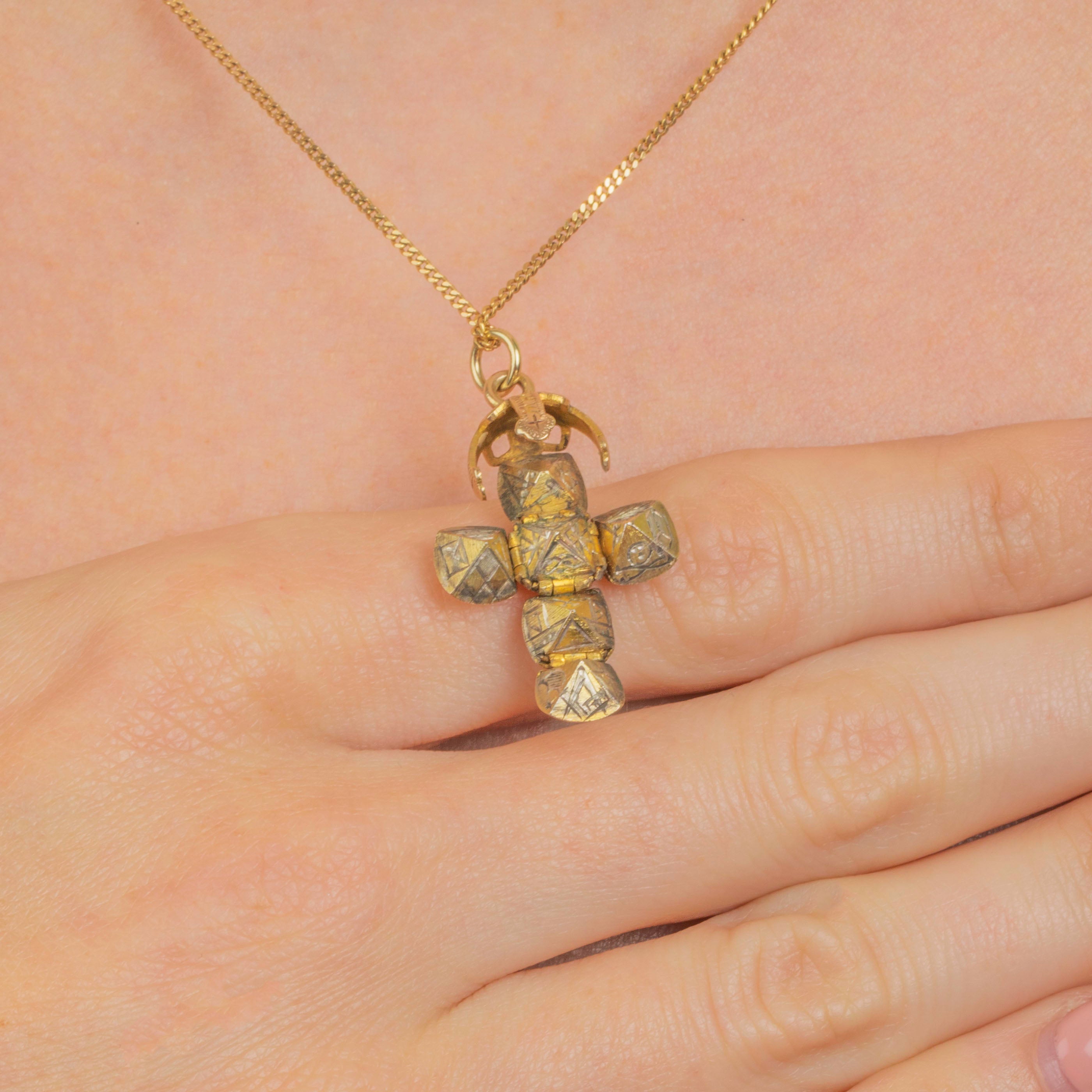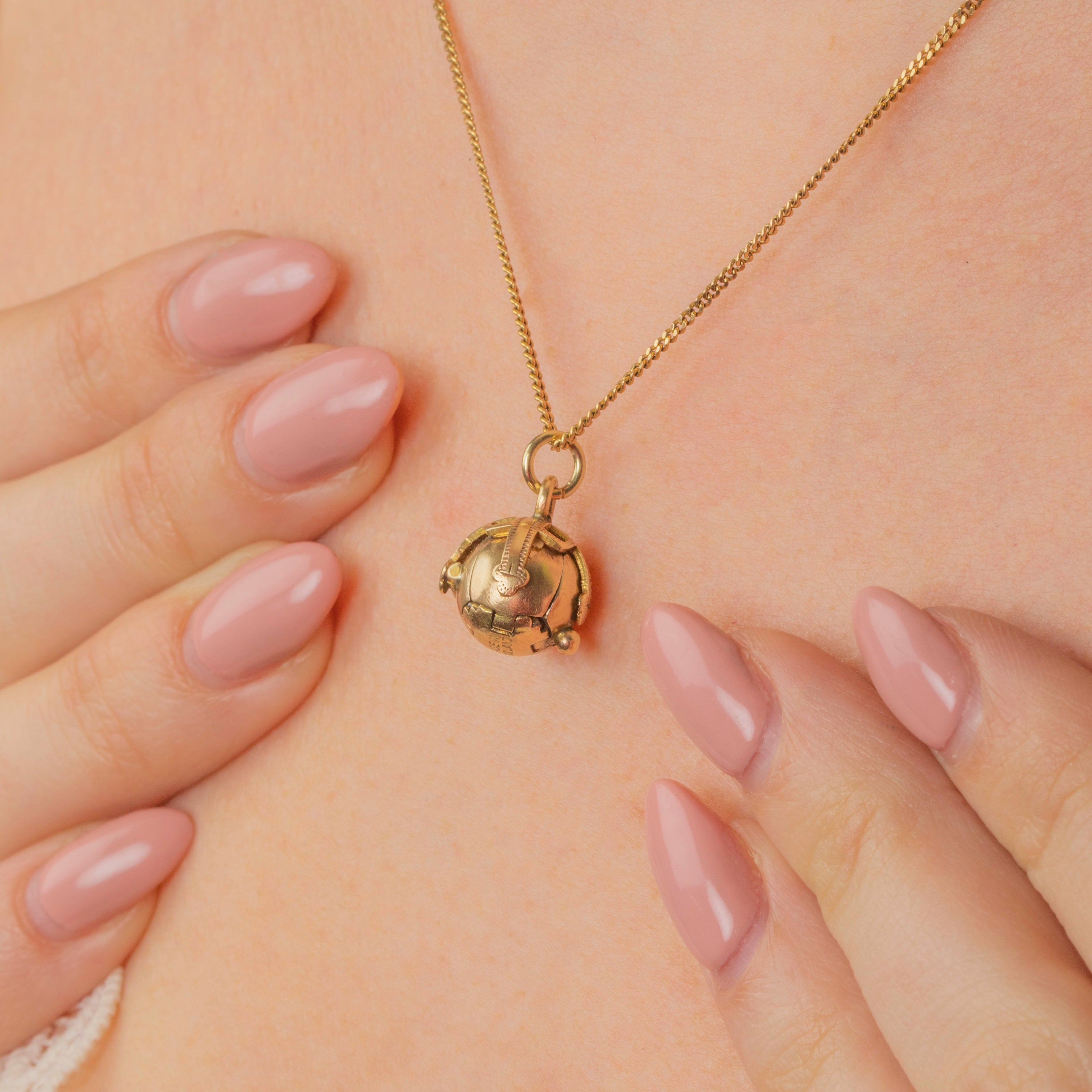 This small Masonic orb charm is beautifully crafted! Masonic pendants such as this were originally worn around the neck during the 19th century, a discreet way to pay homage to the Freemasons. At first glance, this piece appears simple and spherical, but it folds out to form a cross!