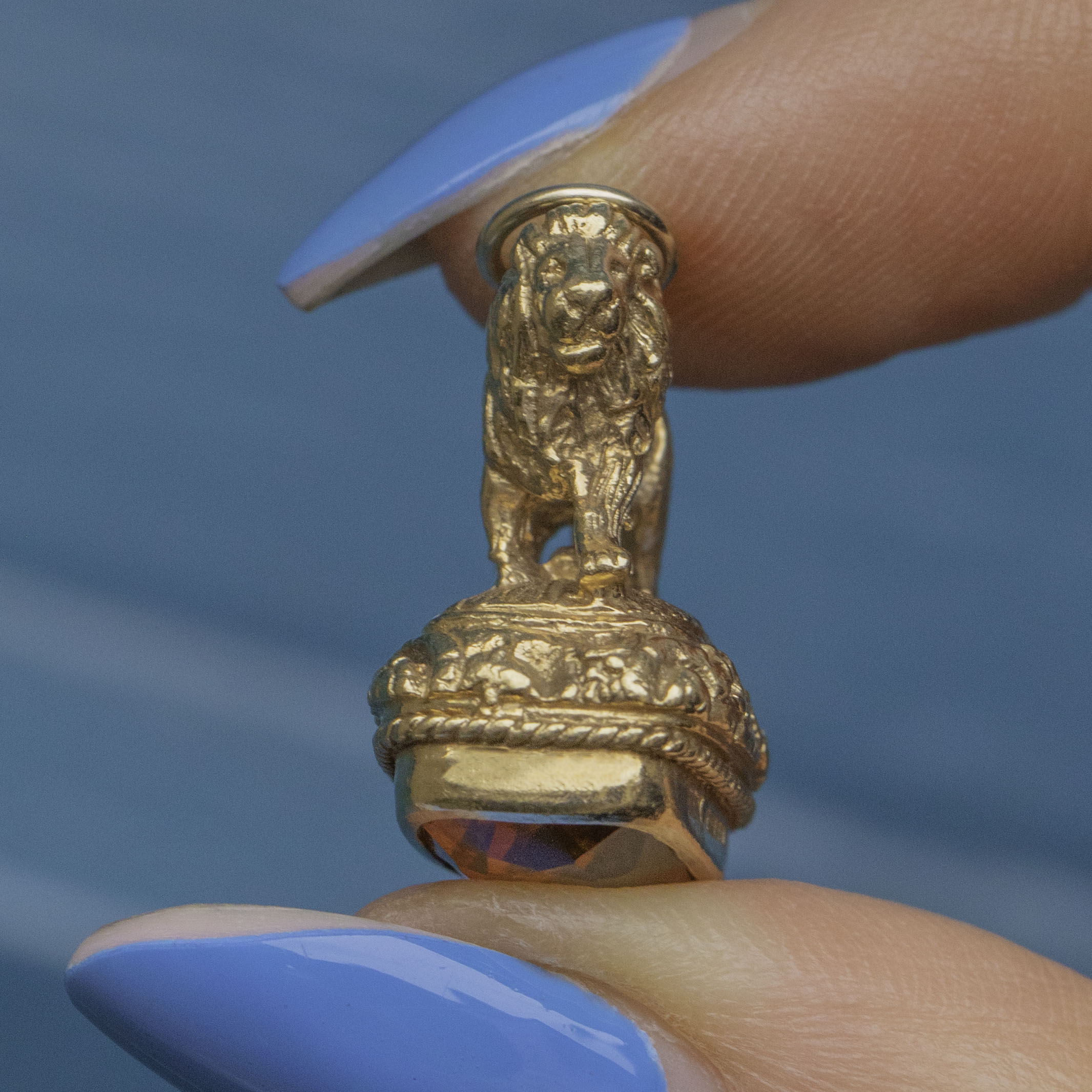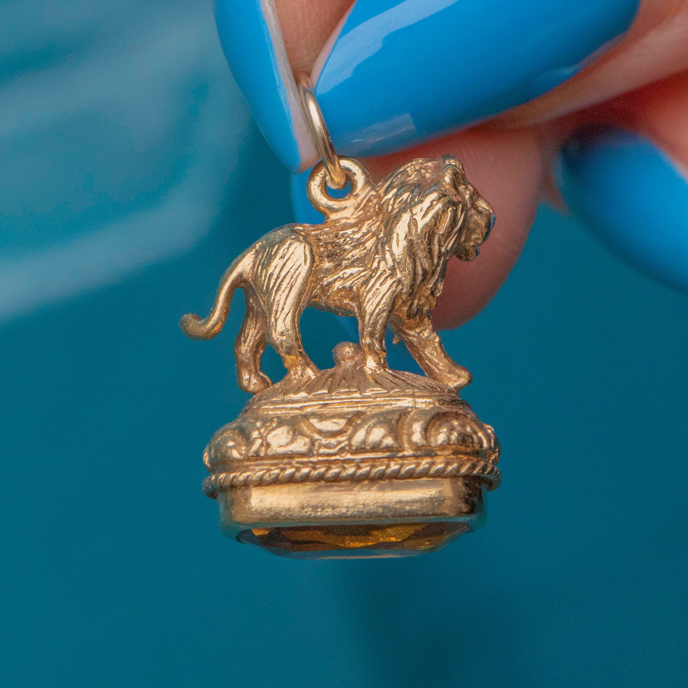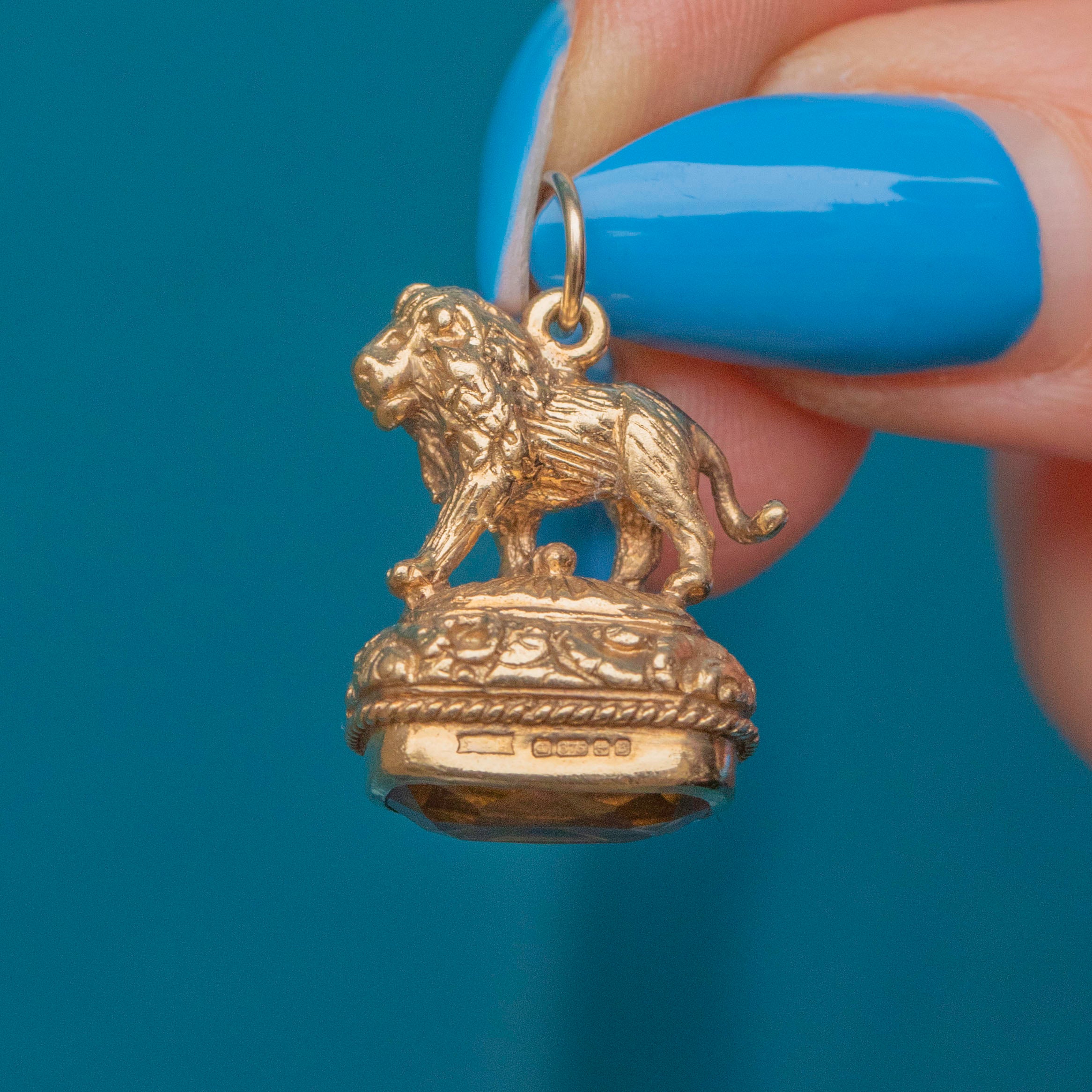 Solid 9ct Gold Lion Citrine Fob Pendant