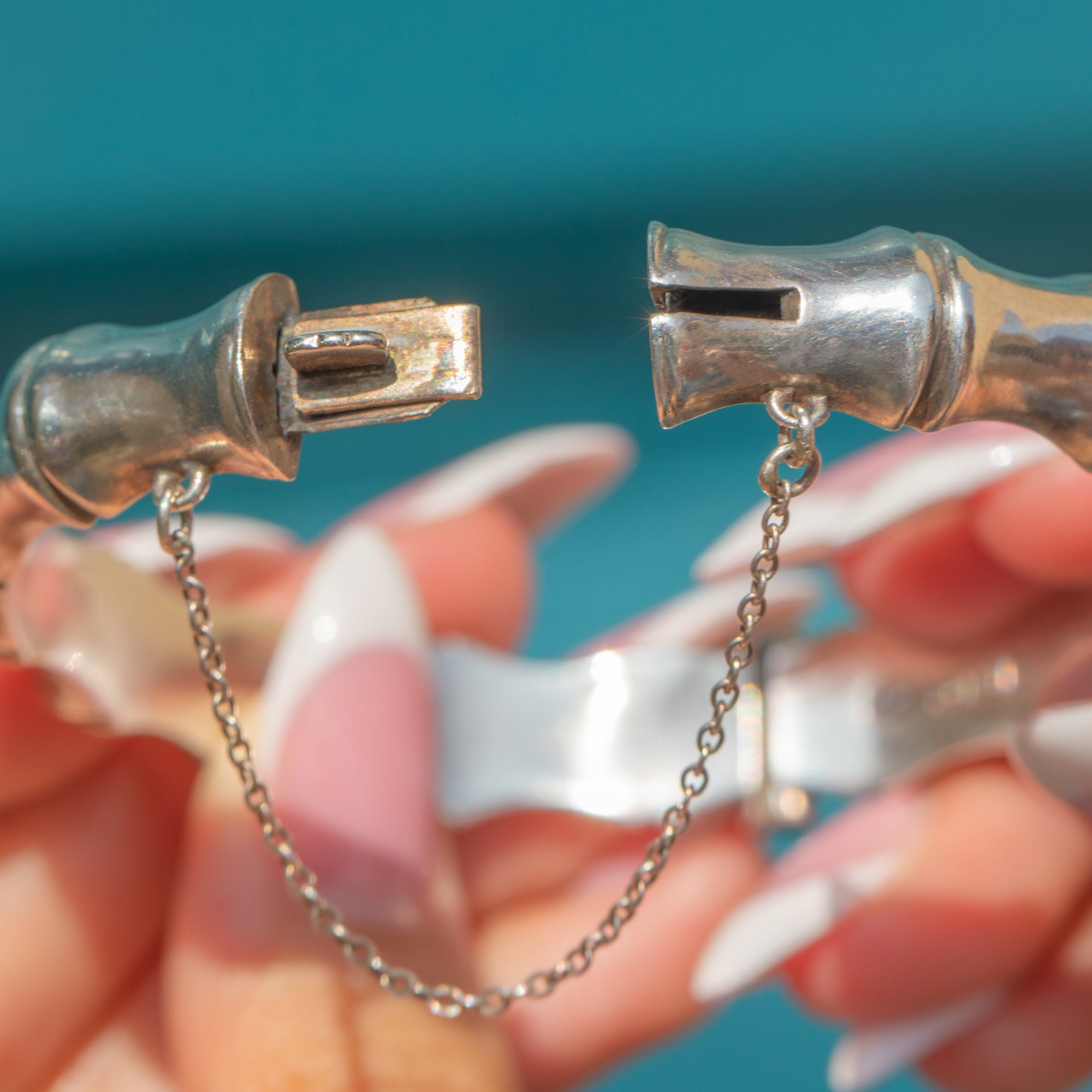 This Vintage Sterling Silver bangle is styled in a bamboo motif, capturing naturalistic texture and design. Crafted in 1963, the hinged bangle is beautifully finished, with an integrated clasp ensuring a secure and comfortable fit on the wrist.
