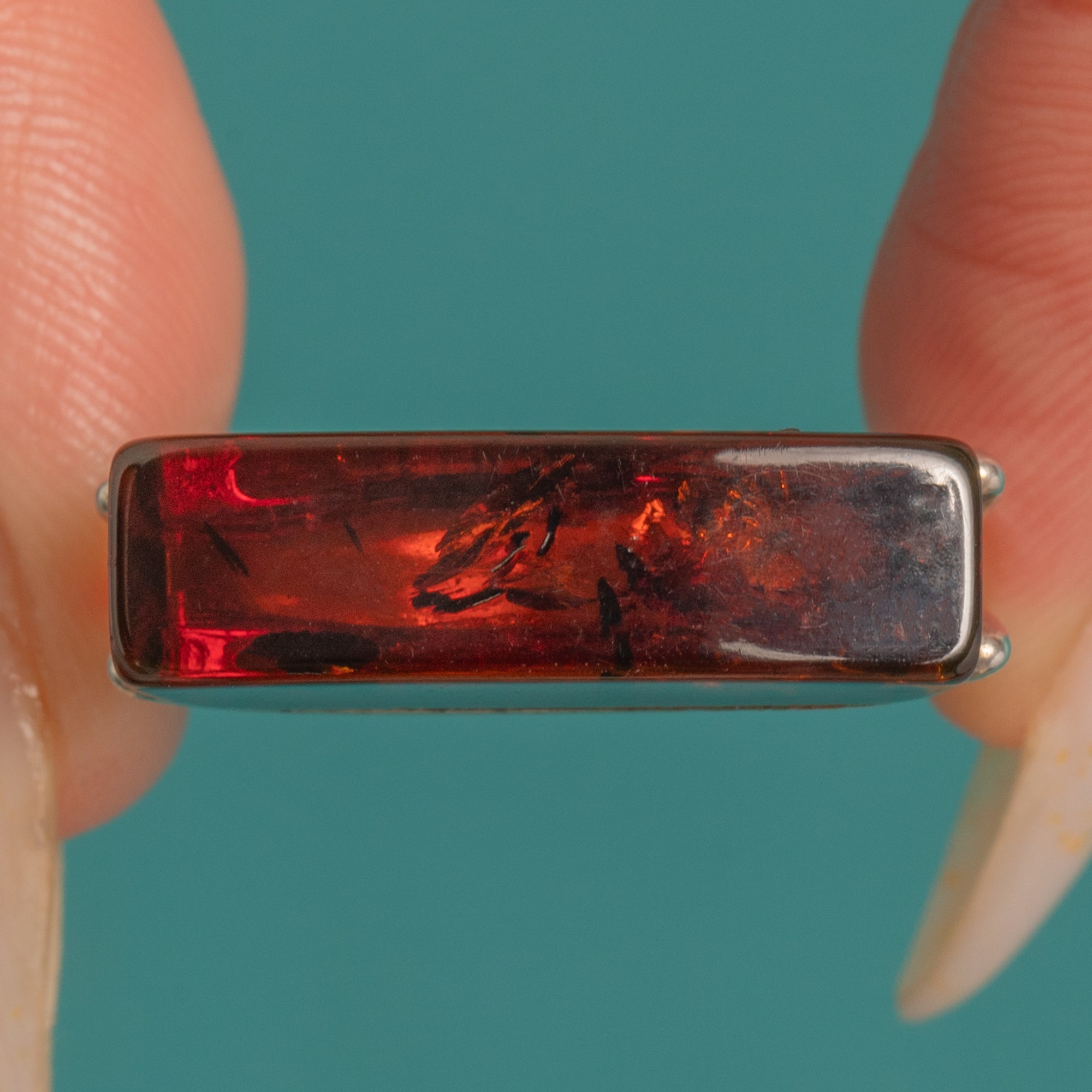 Amber is visible to a depth of 6.5mm within the setting.