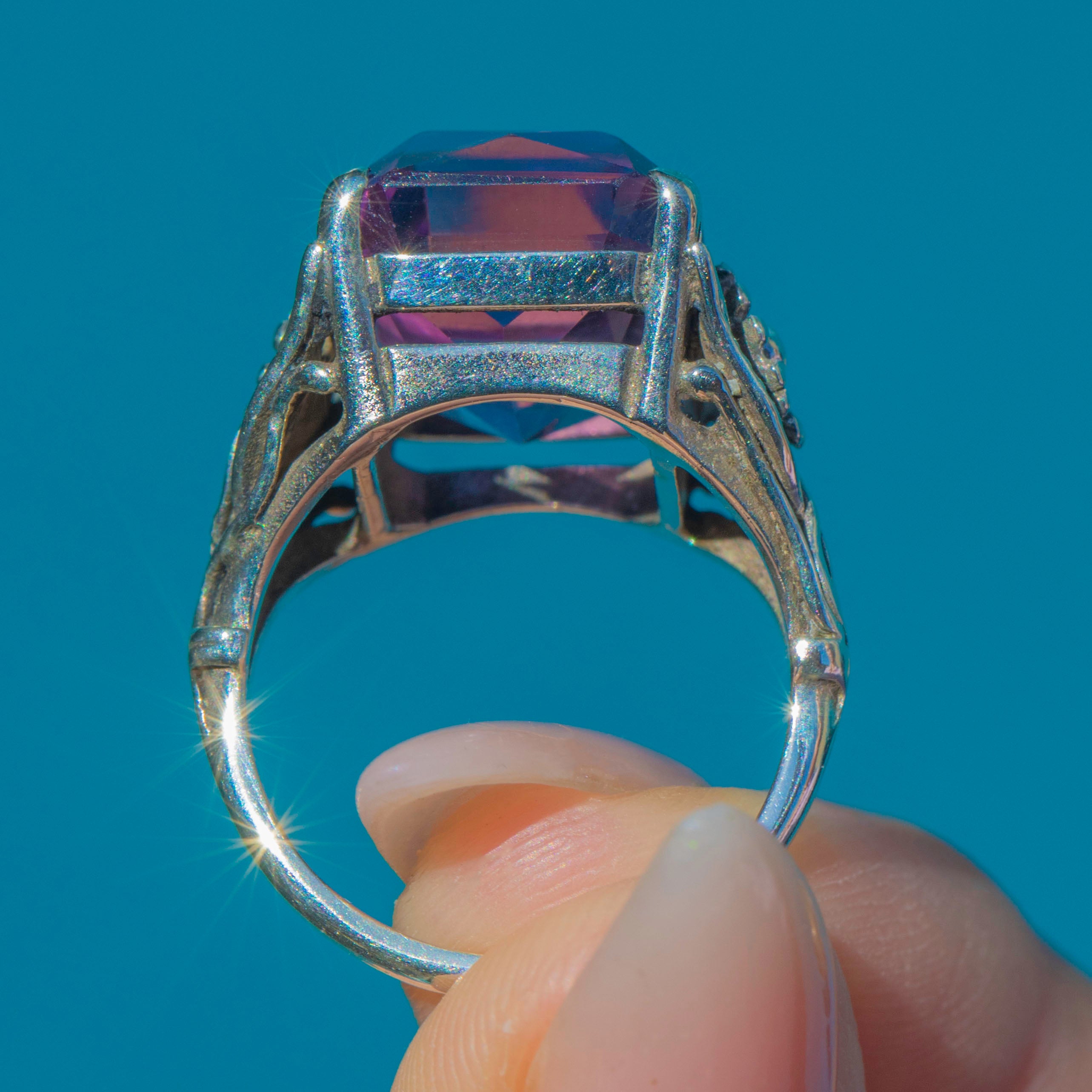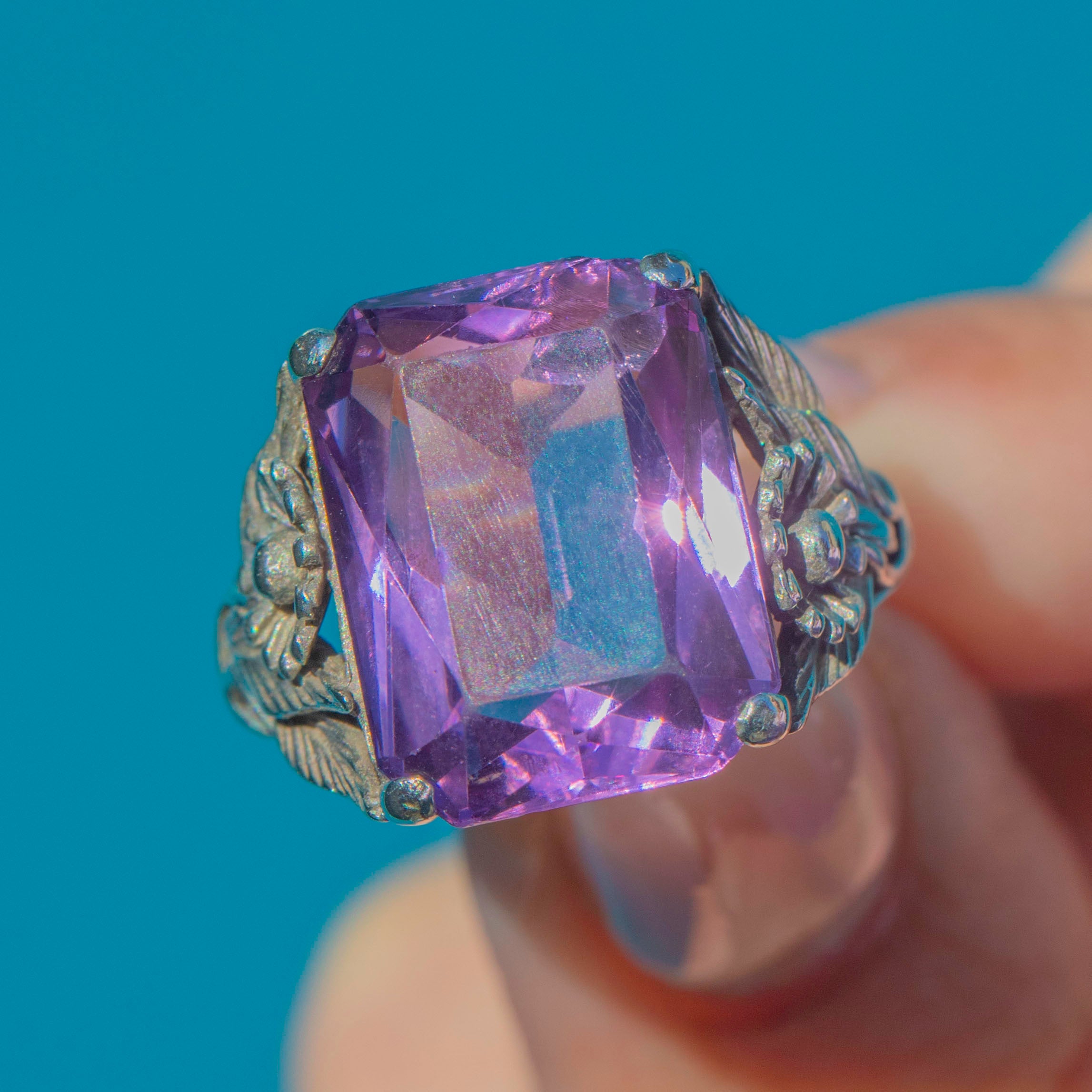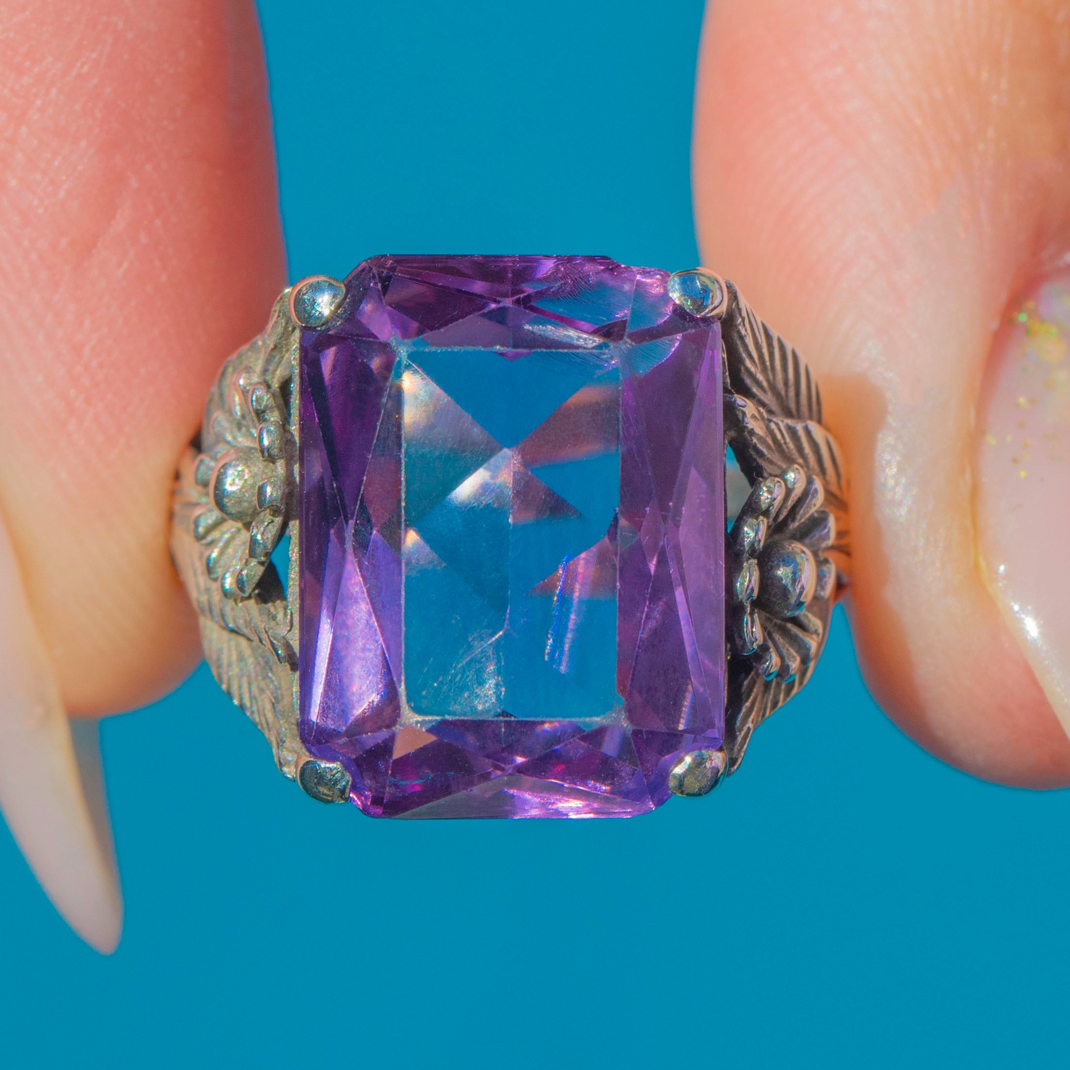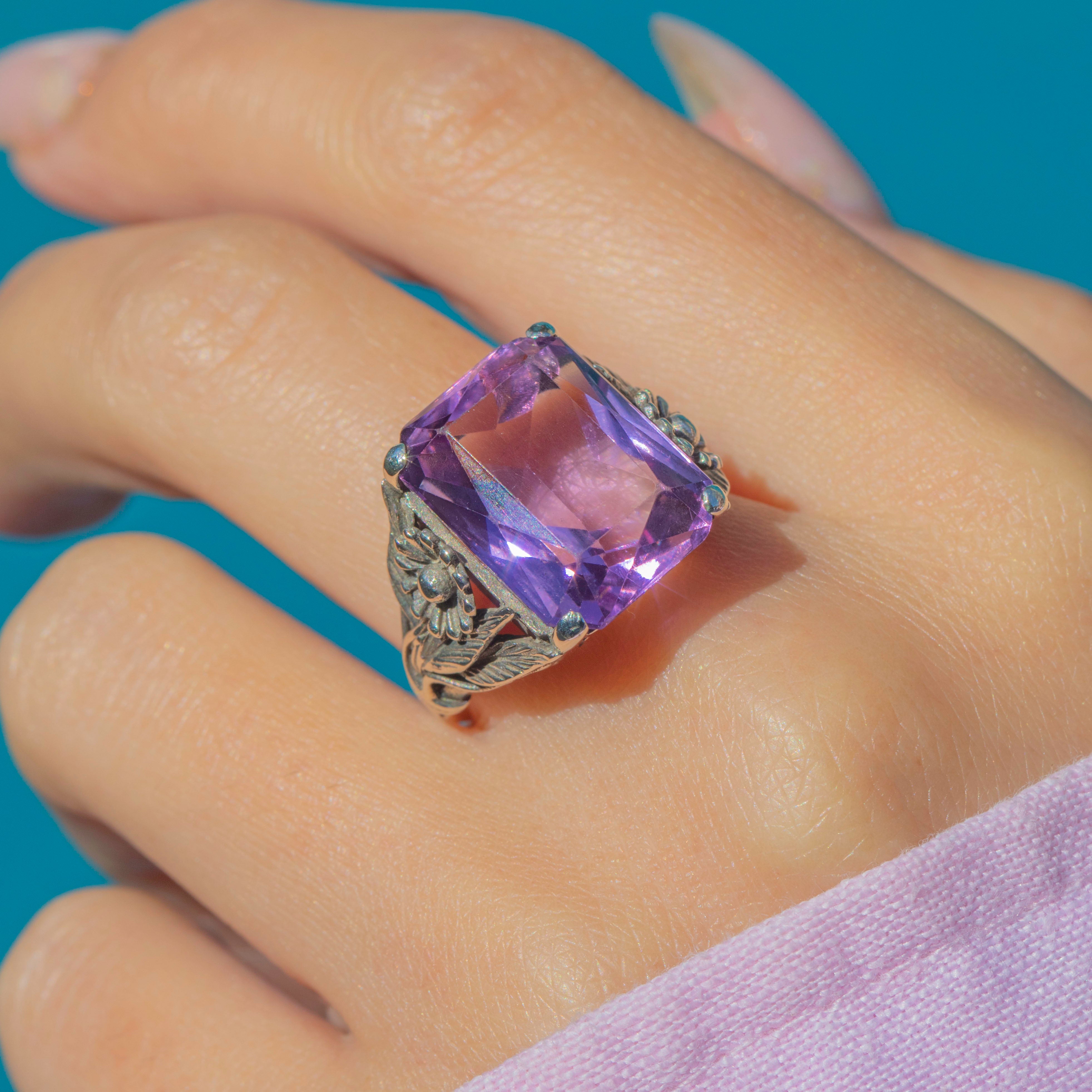 Striking 9.50ct Arts & Crafts Era Silver Amethyst Ring c.1910