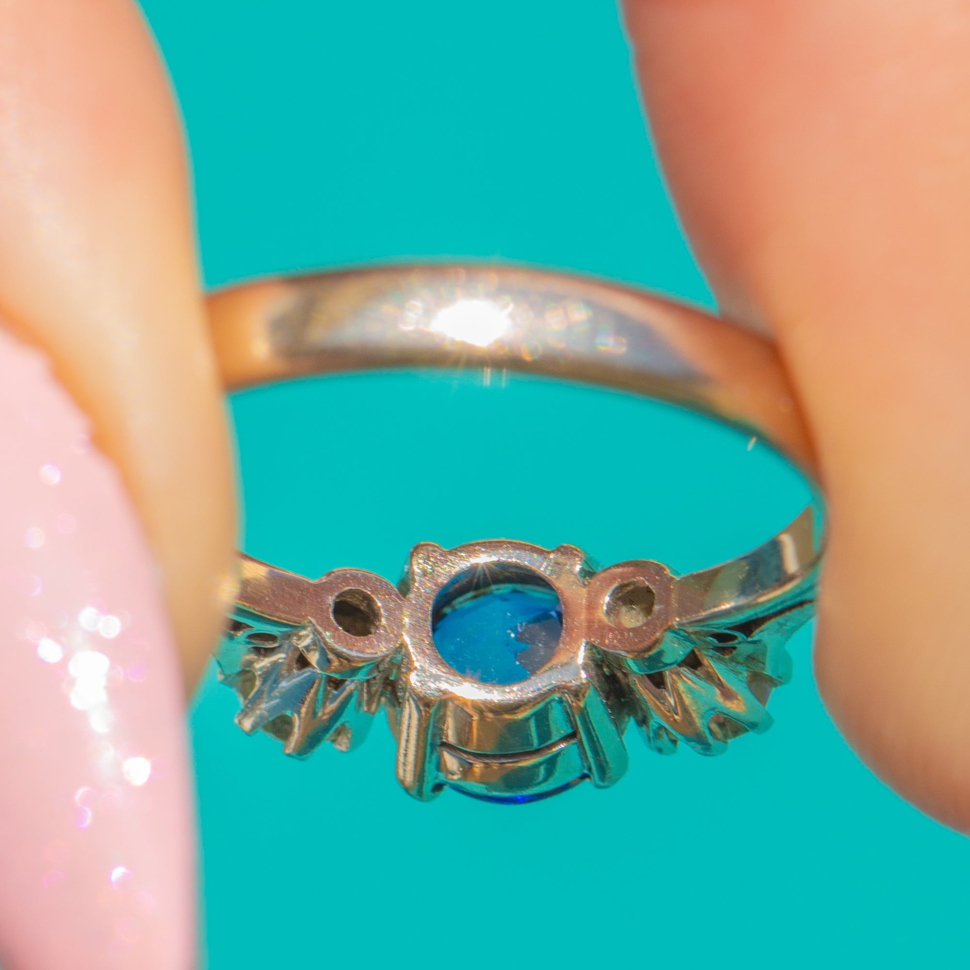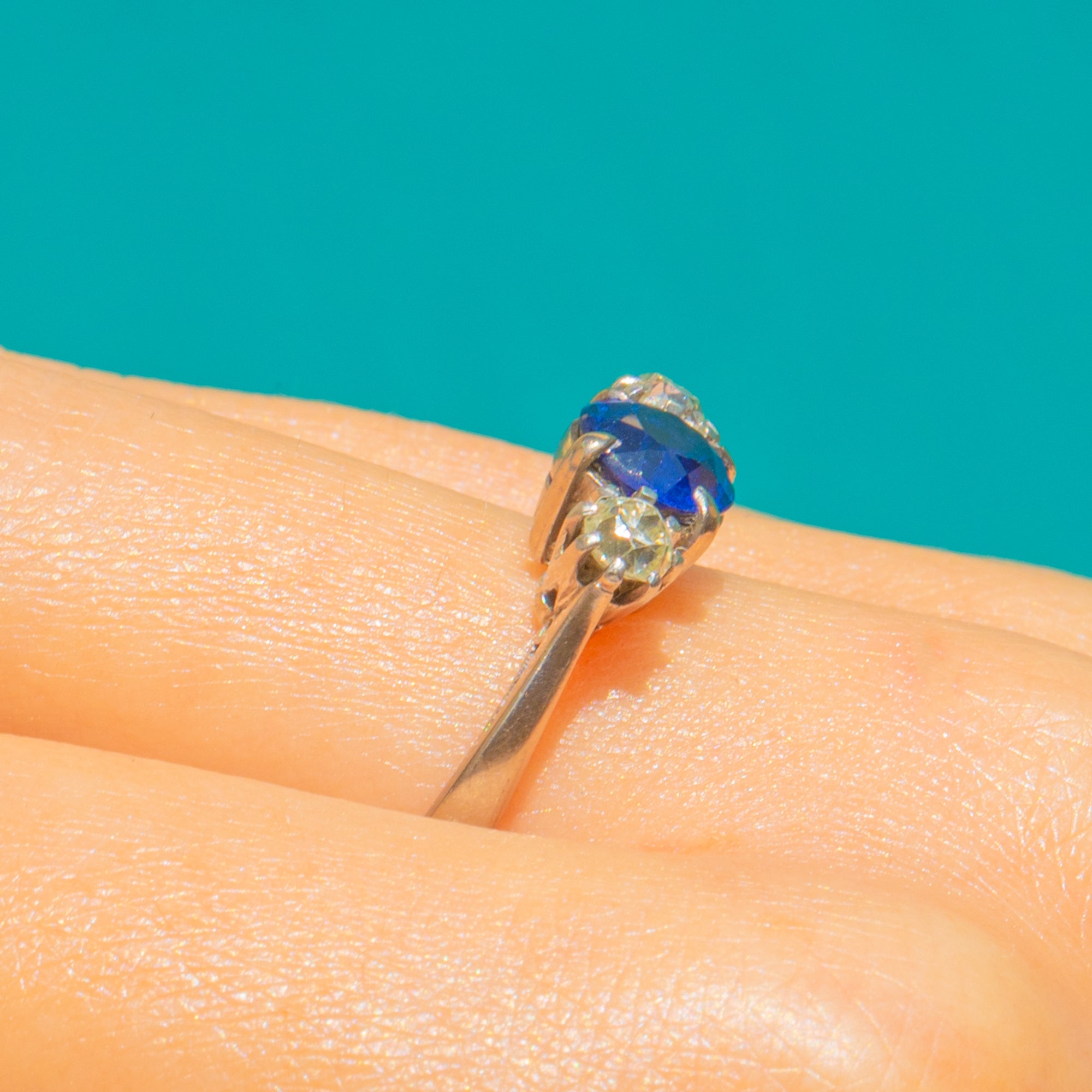 Superb Antique 18ct White Gold Sapphire Diamond Trilogy Ring, Vivid 0.70ct Sapphire