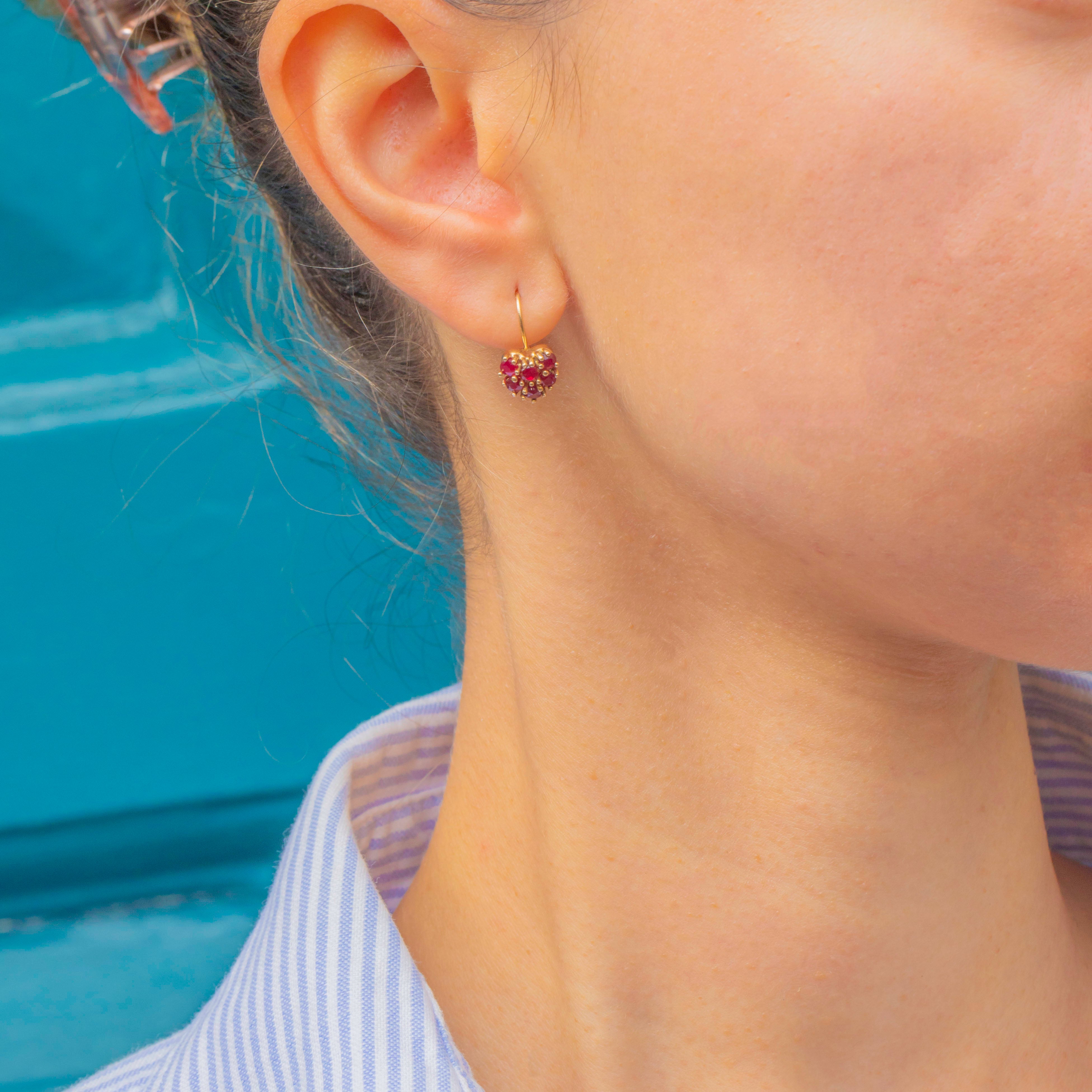 EXCELLENT: The Rubies are vibrant and well-matched with no visible wear. The Gold is bright and smooth with secure lever-backs in perfect working order, showing minimal signs of previous use.