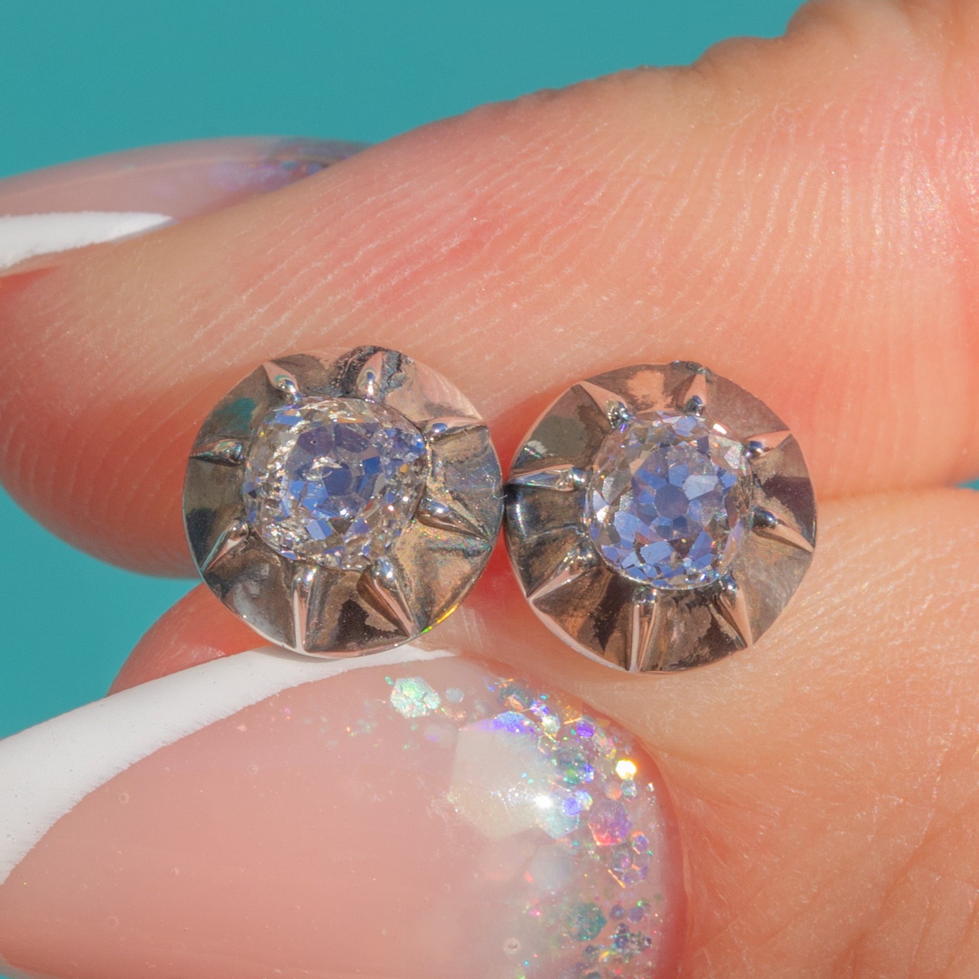 Victorian 0.80ct Old Mine Cut Diamond Stud Earrings