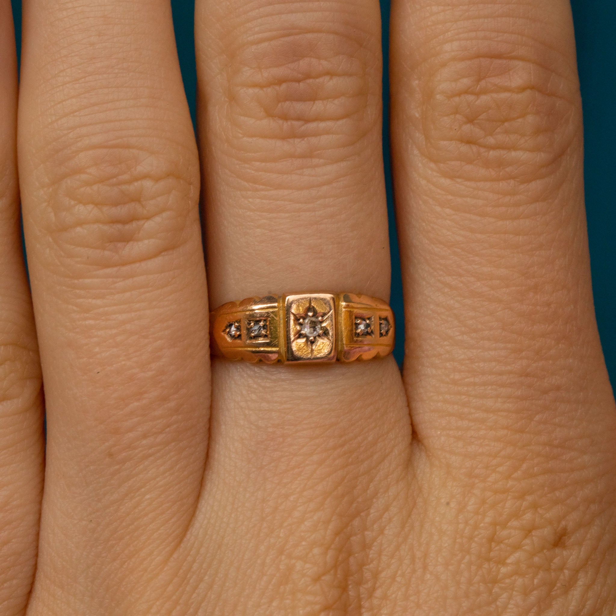 Victorian 15ct Gold Diamond Five Stone Gypsy Ring