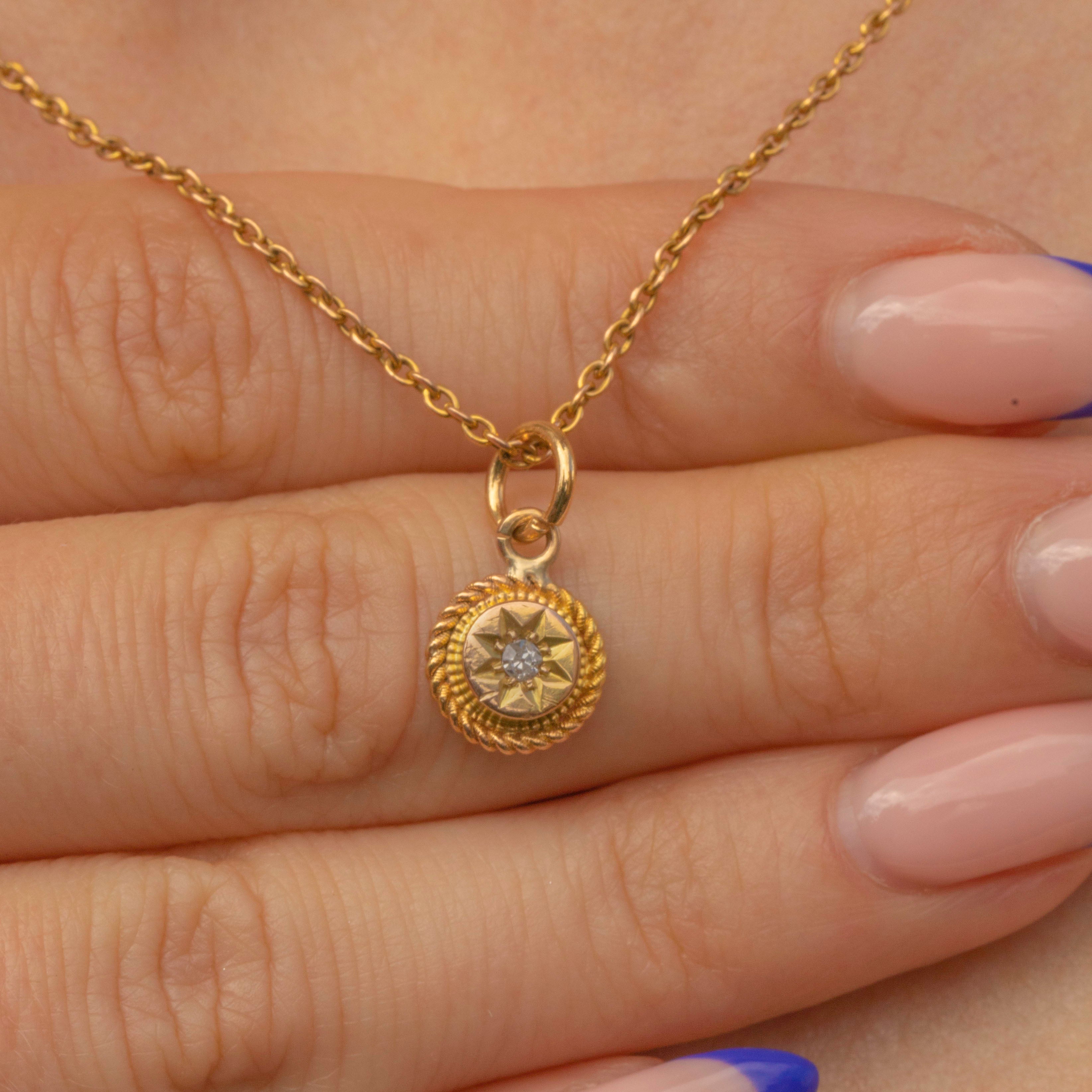 We adore this Victorian 15ct Gold Diamond star-set round pendant! With a dazzling Diamond that's too good to resist, this Etruscan beauty will feel right at home in your jewellery box.