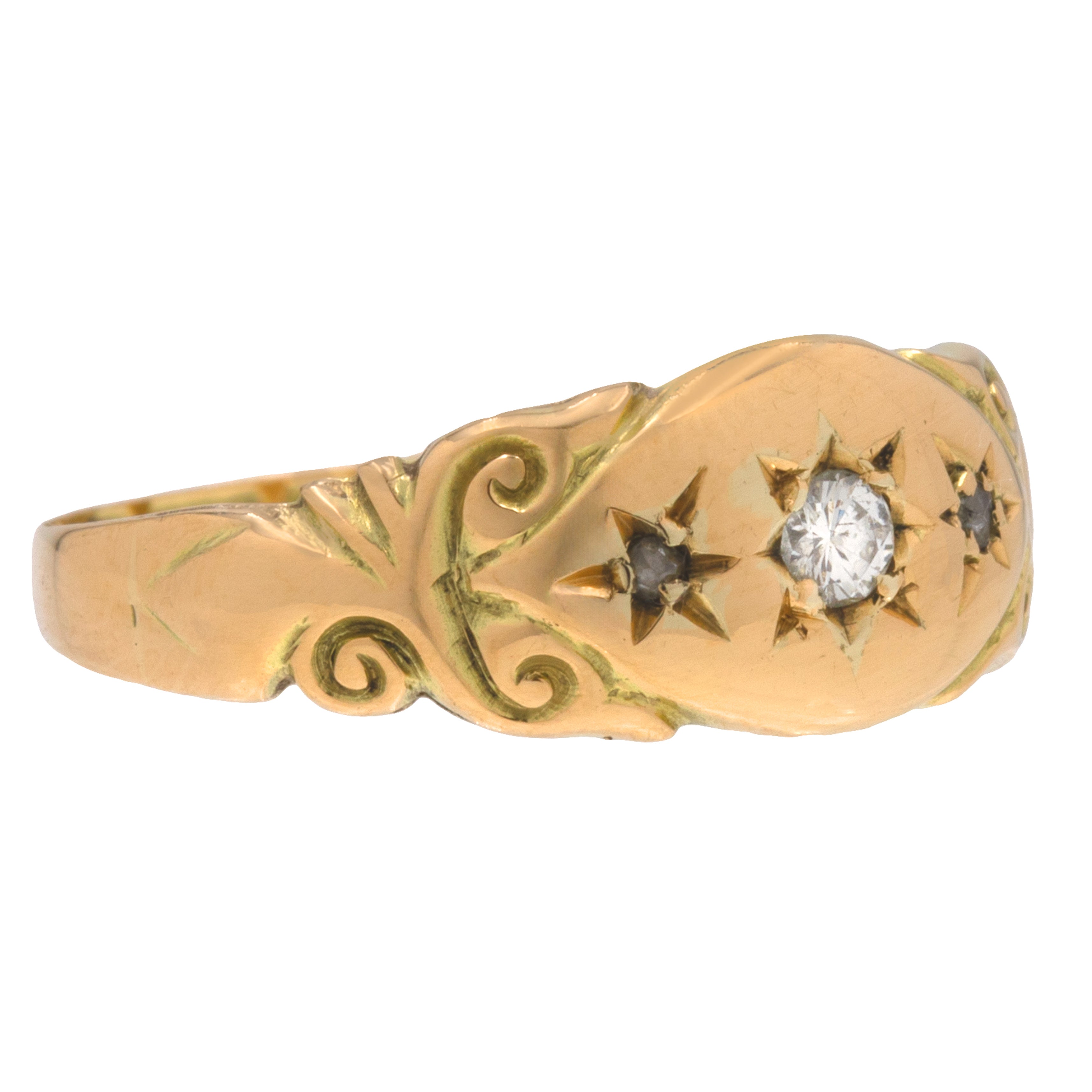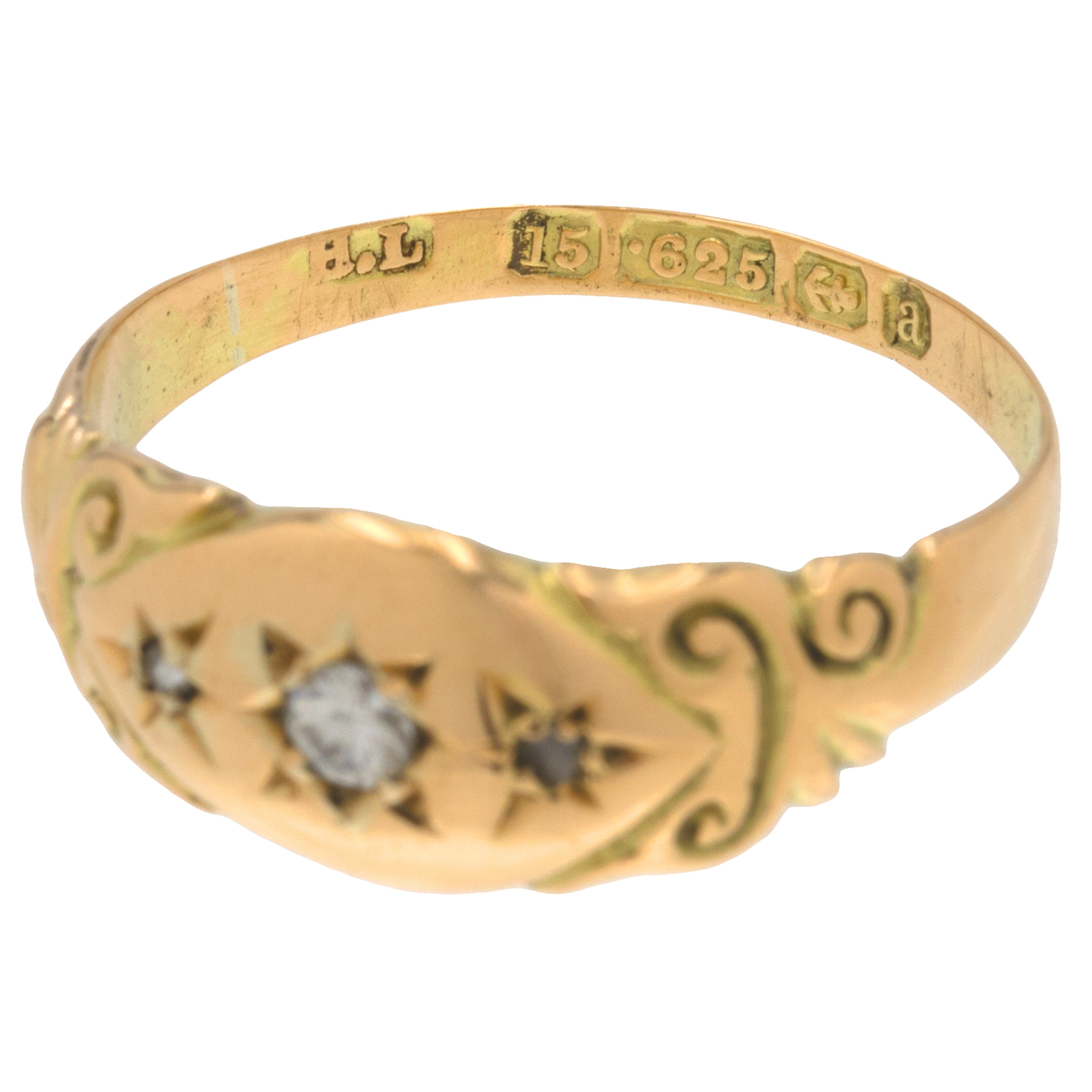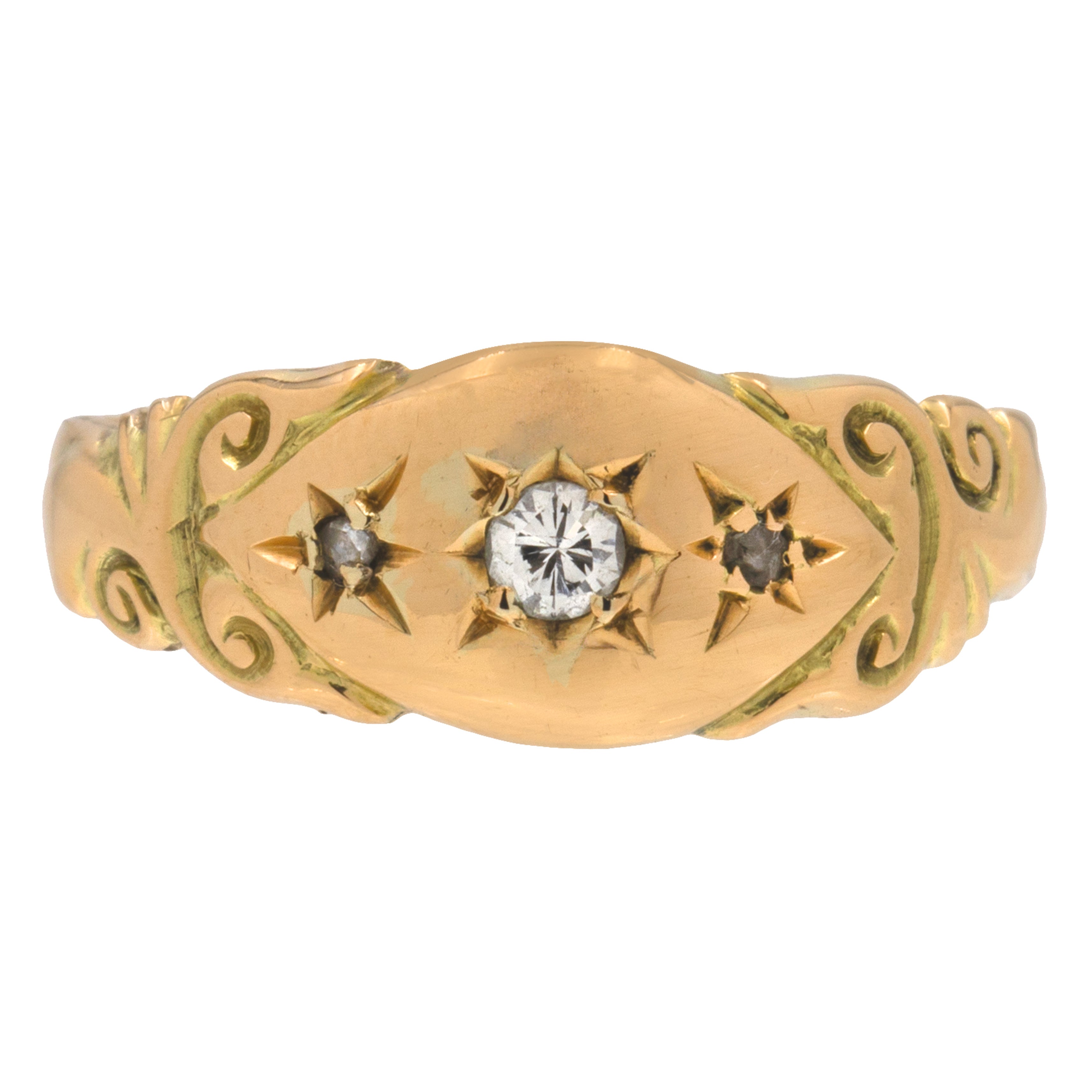 Victorian 15ct Gold Diamond Three Stone Gypsy Ring