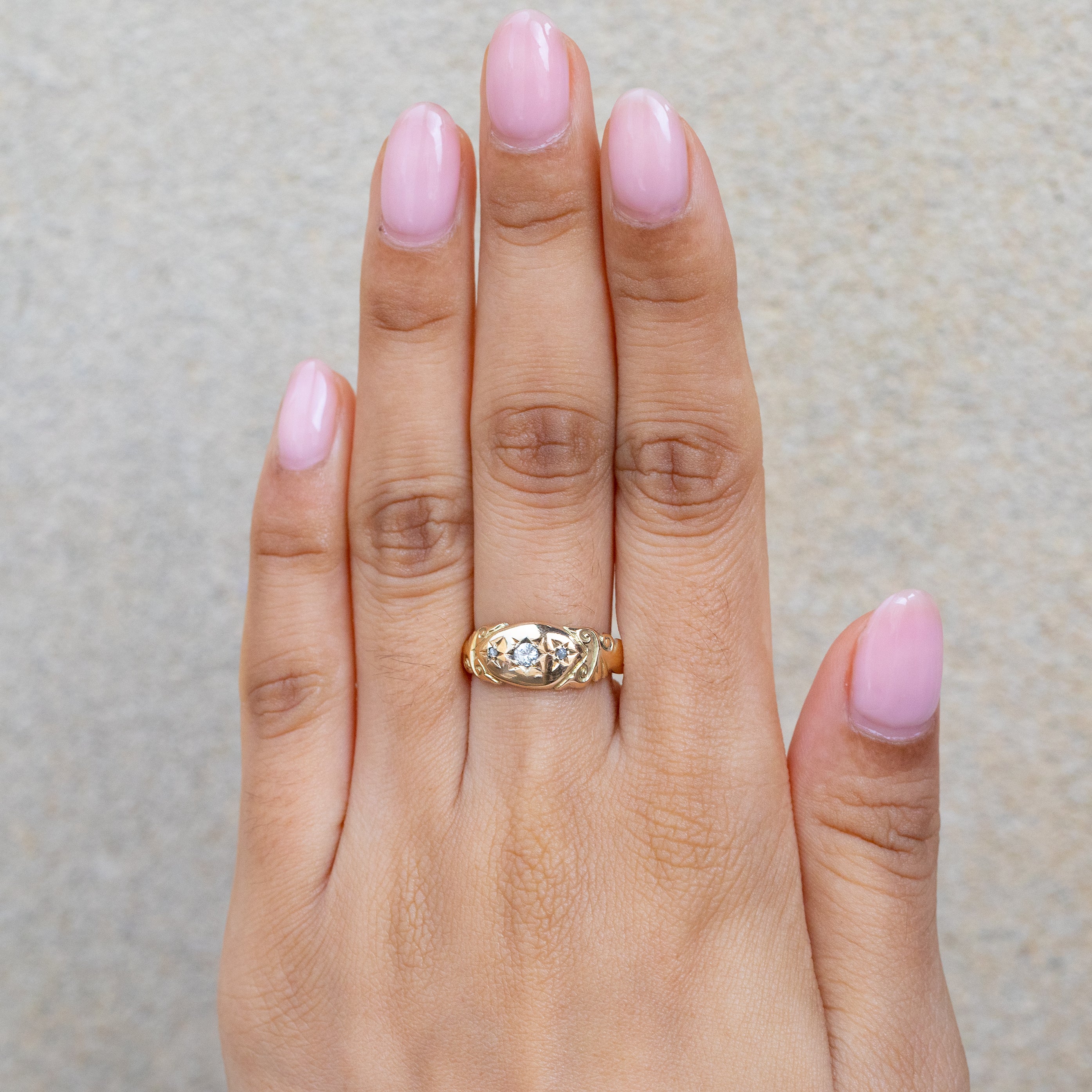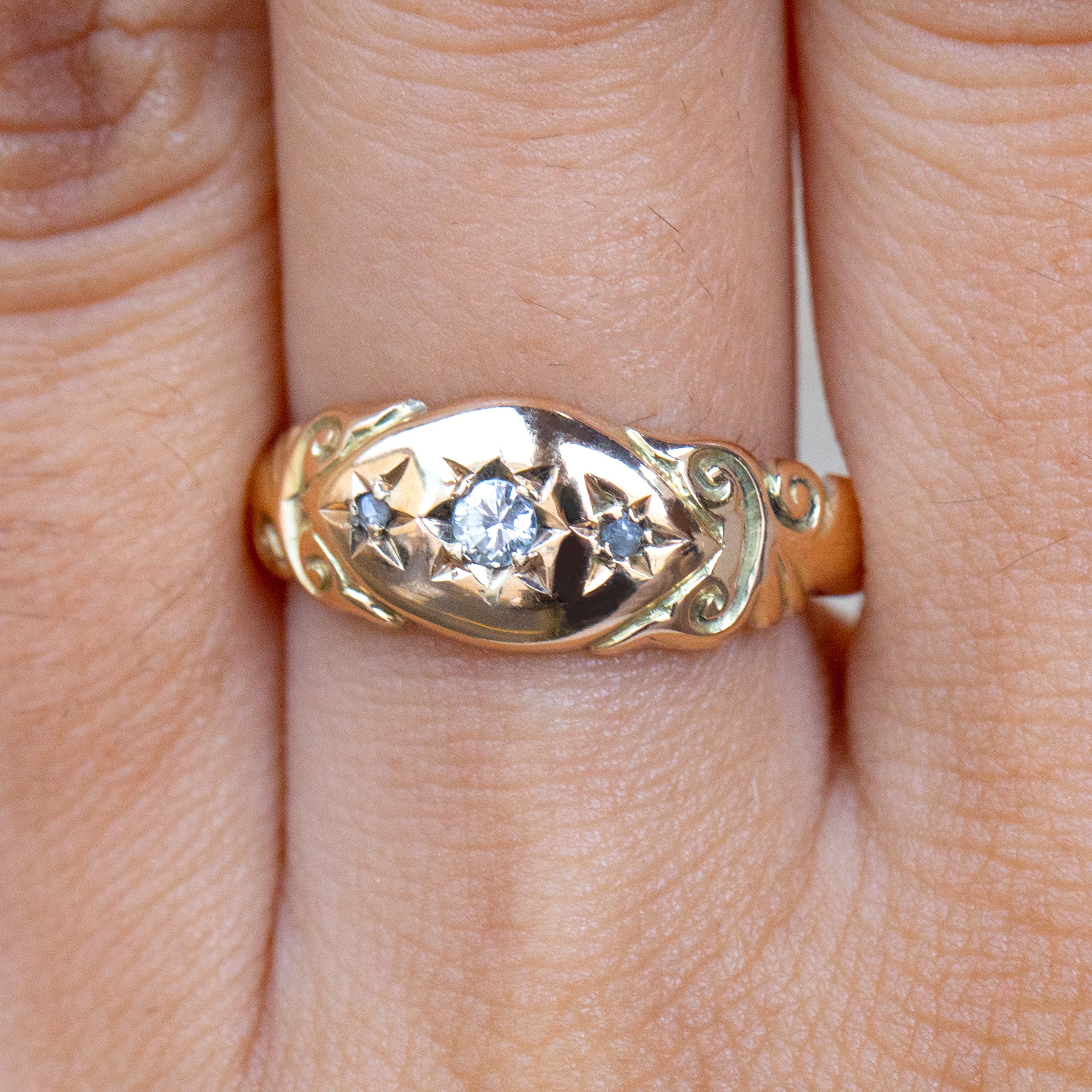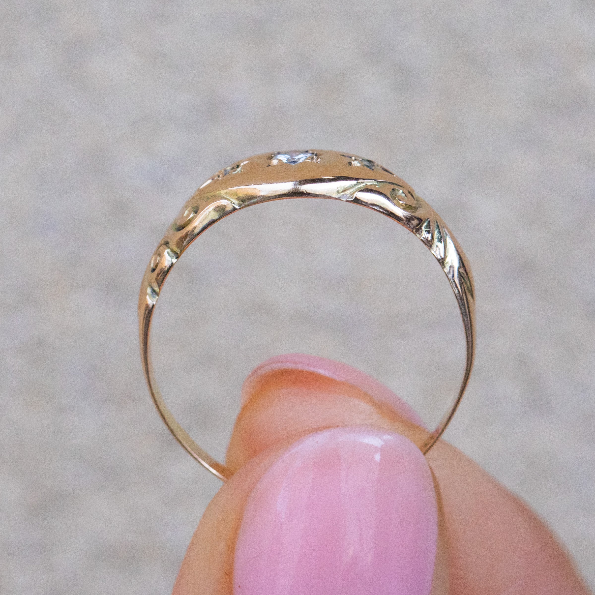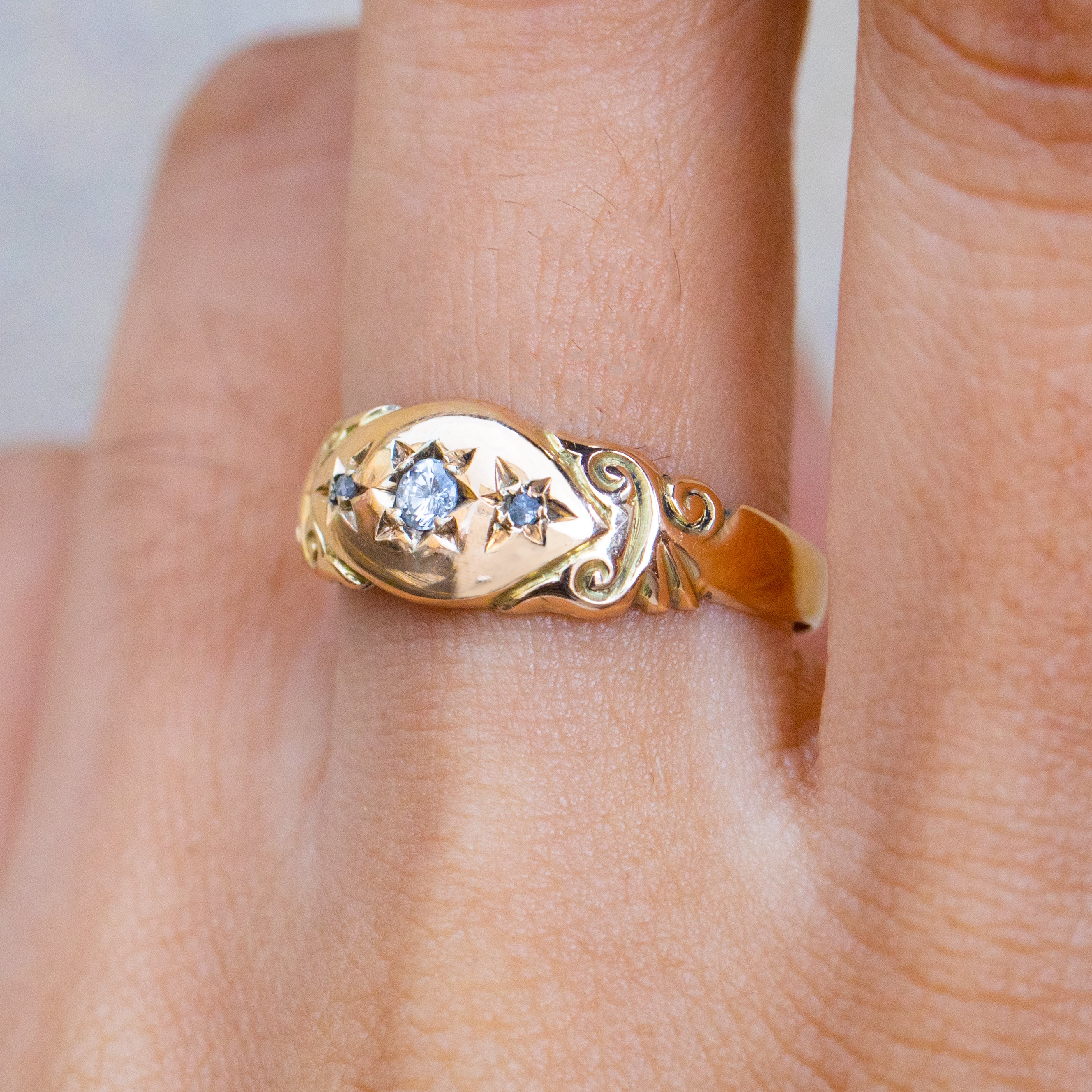 Victorian 15ct Gold Diamond Three Stone Gypsy Ring