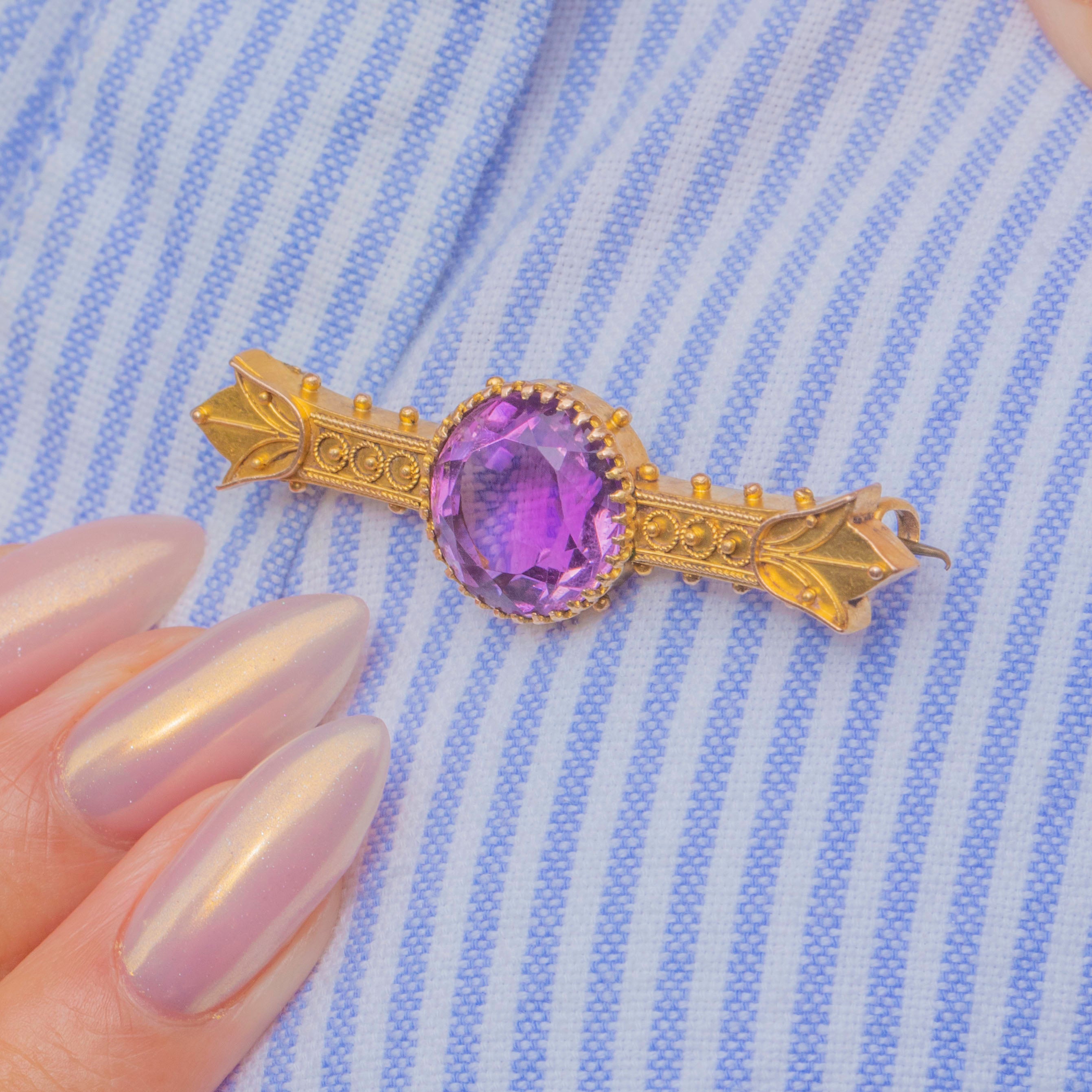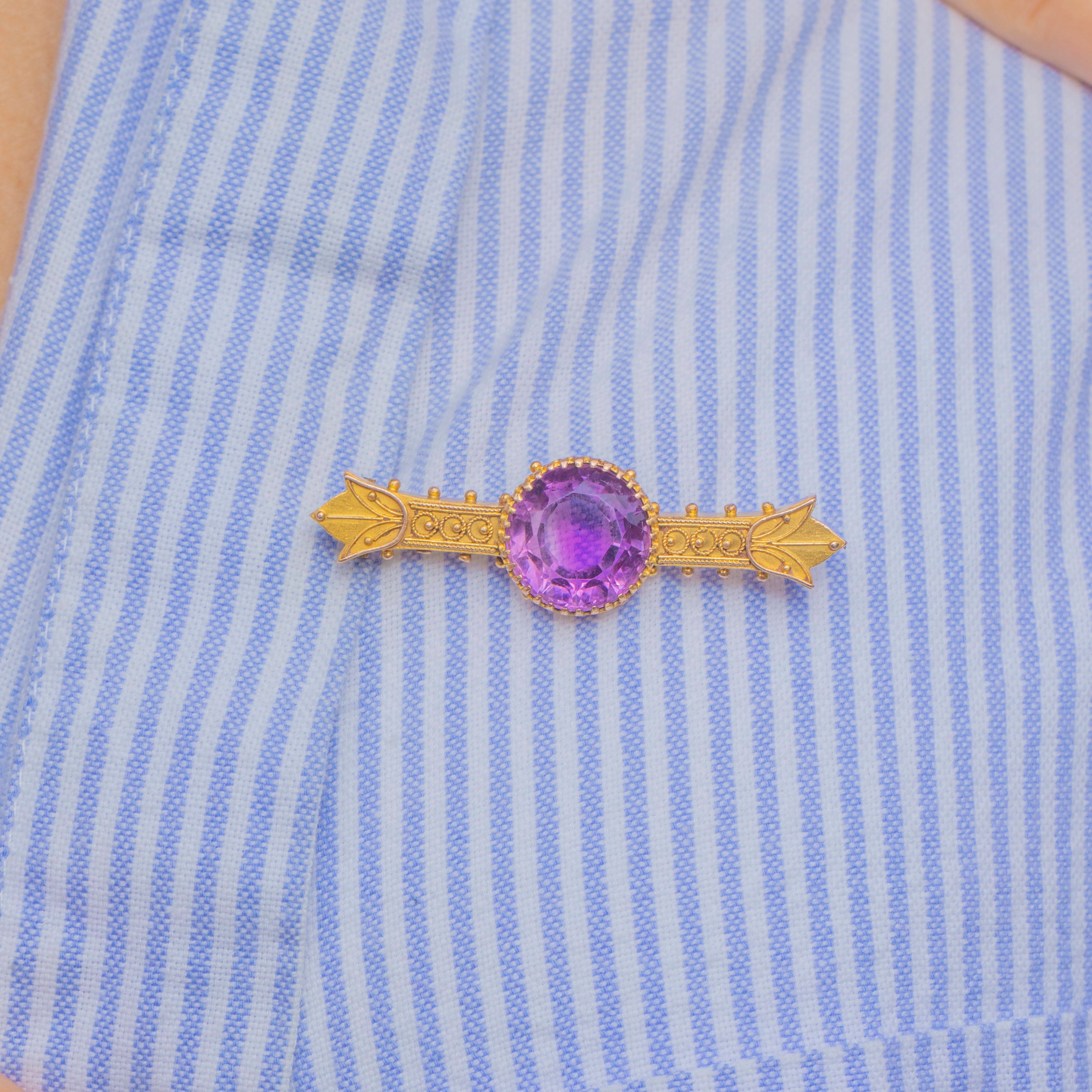 Victorian 15ct Gold Etruscan Amethyst Brooch