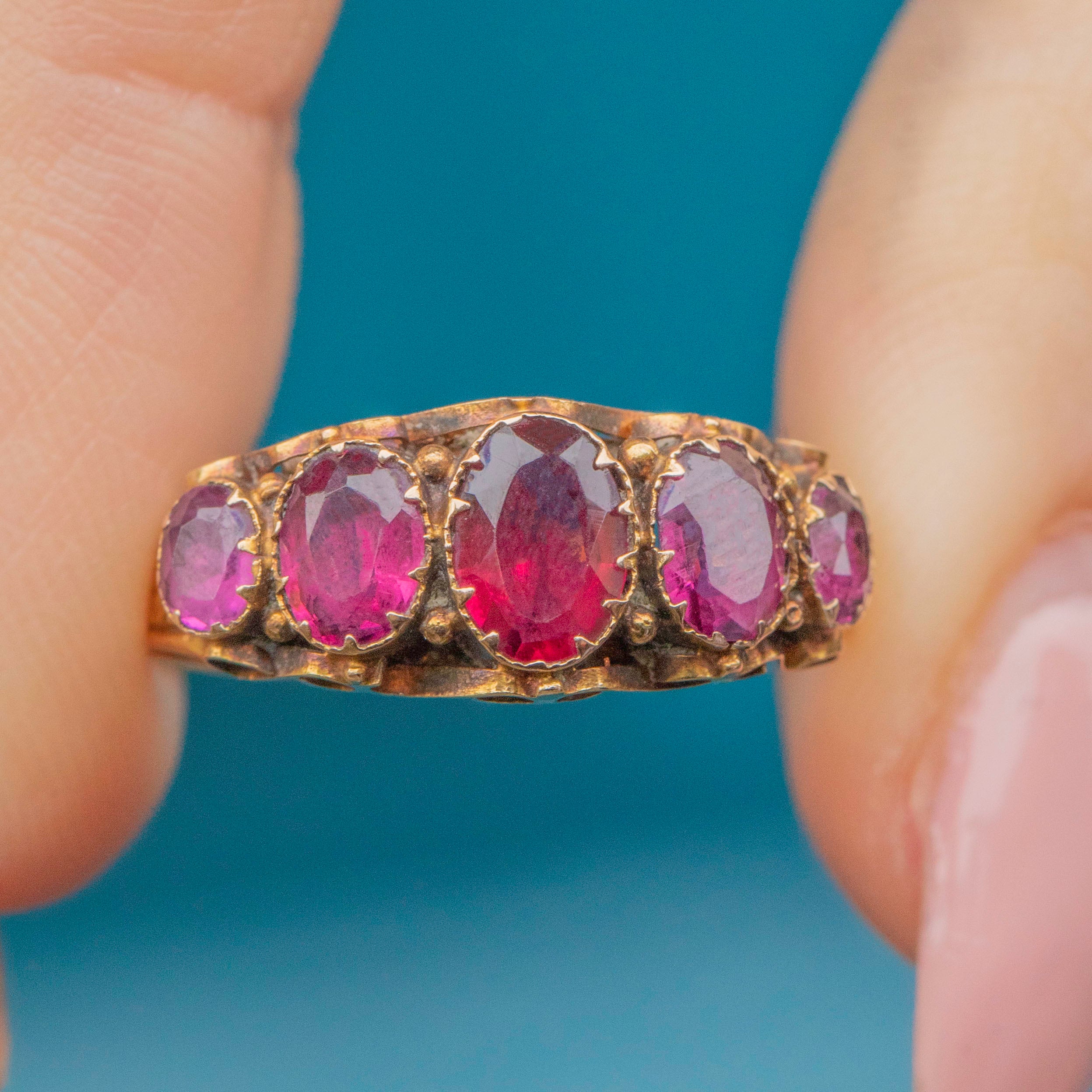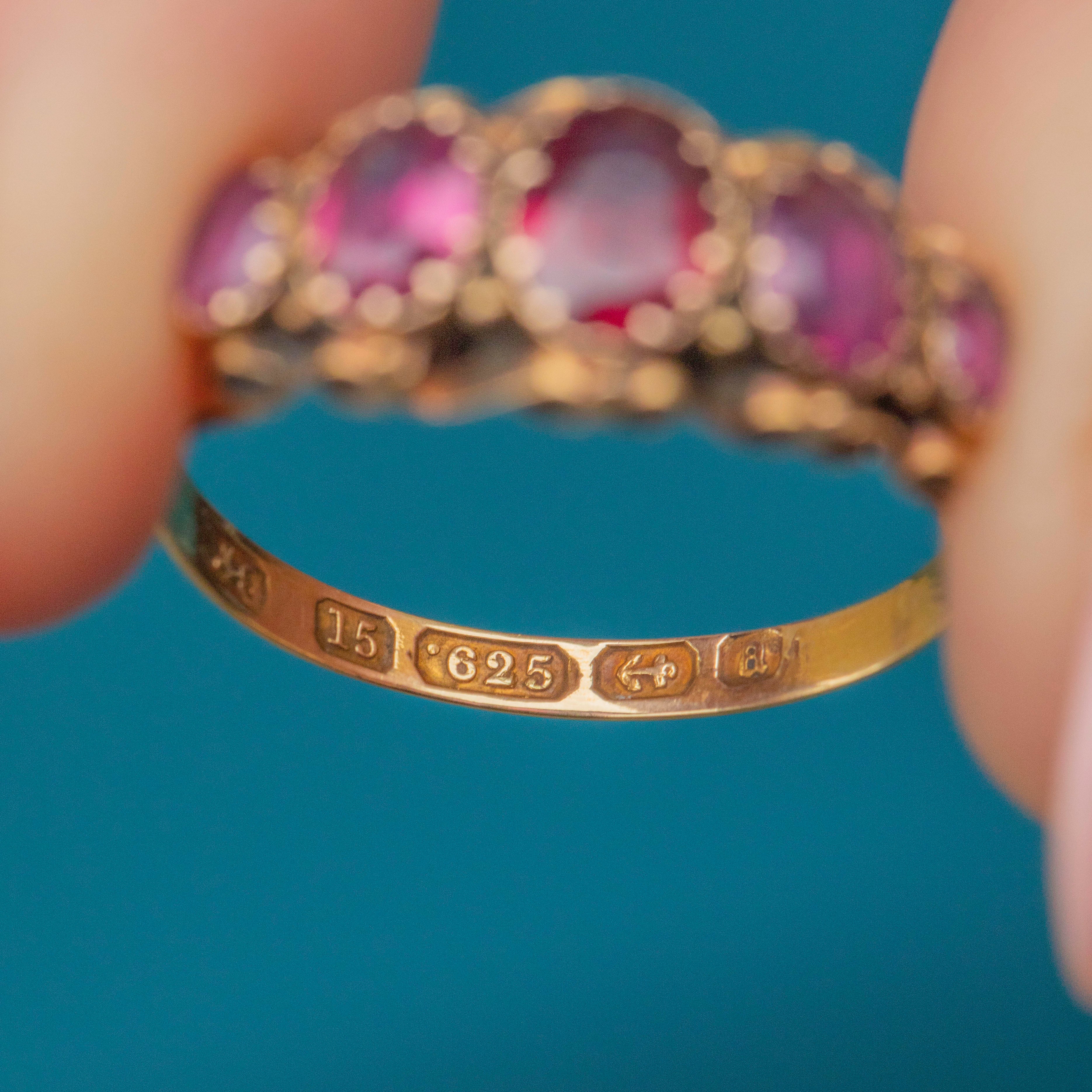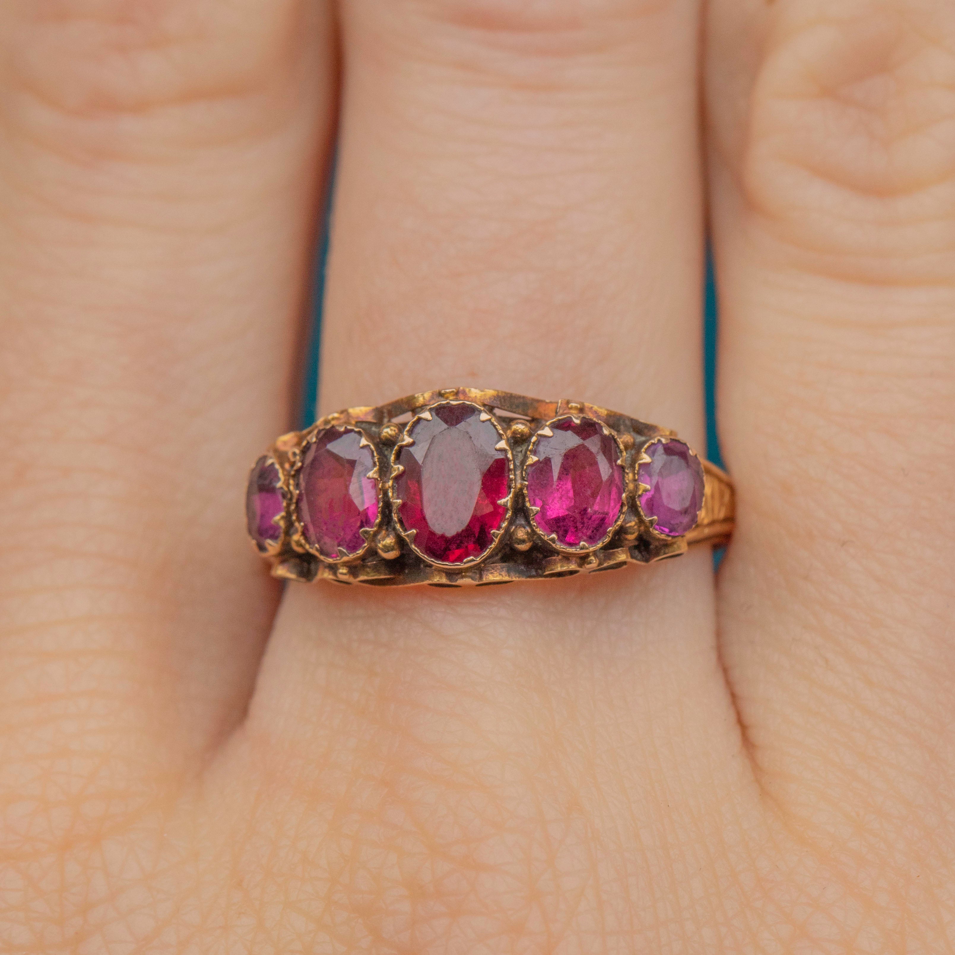 Victorian 15ct Gold Garnet Five Stone Ring, c.1875