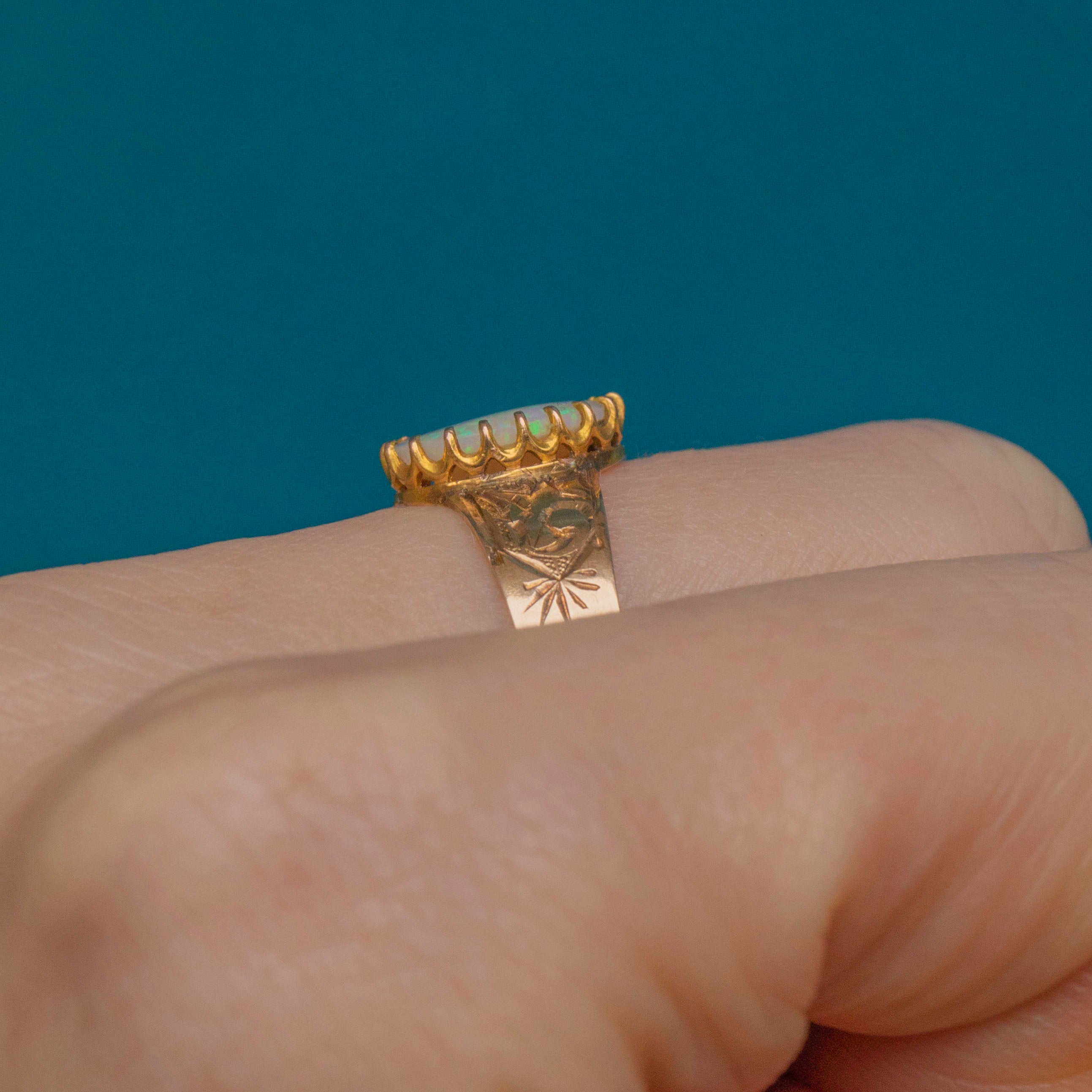 Victorian 15ct Gold Opal Ring Engraved Shoulders