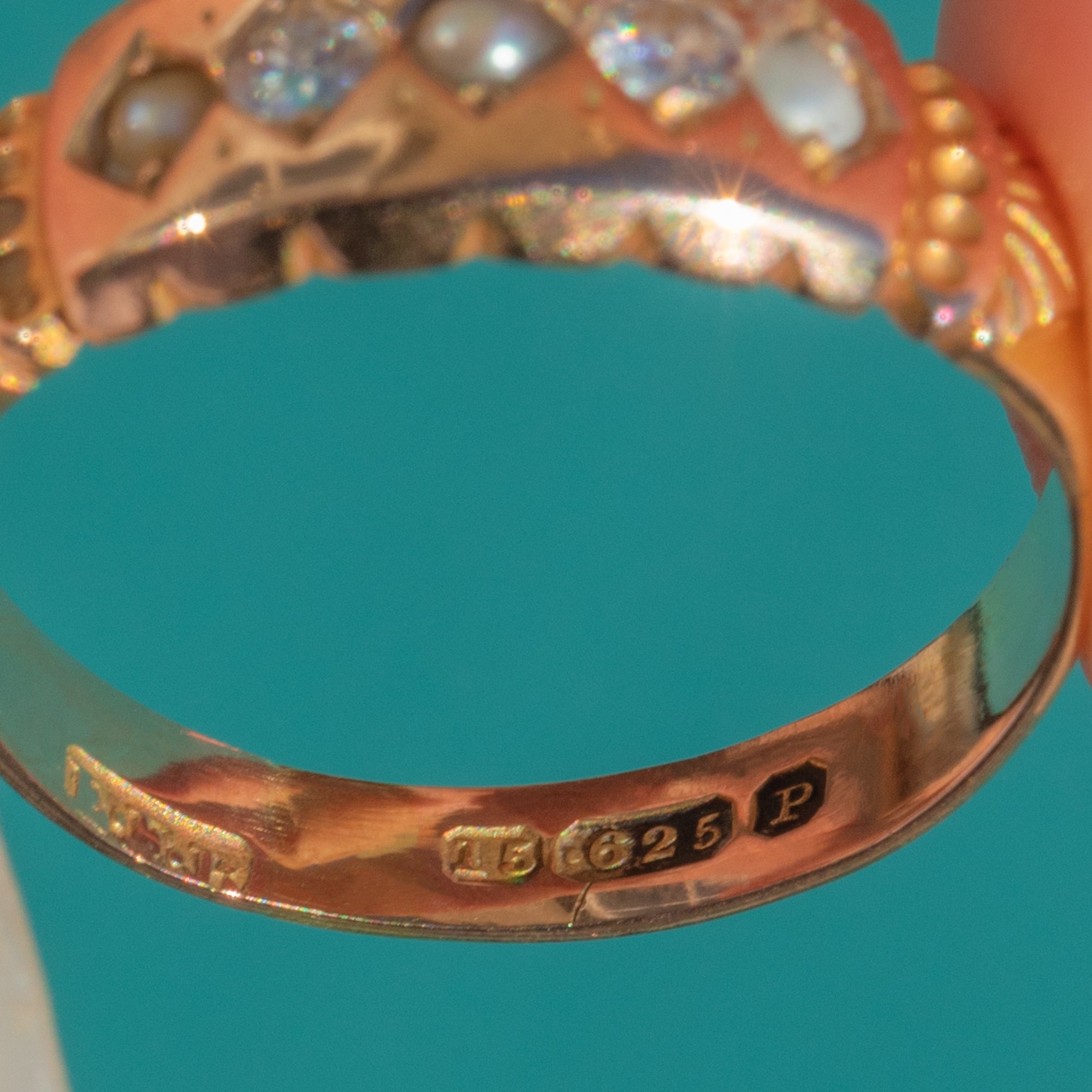 Victorian 15ct Gold Pearl & Diamond Gypsy Ring, c.1864