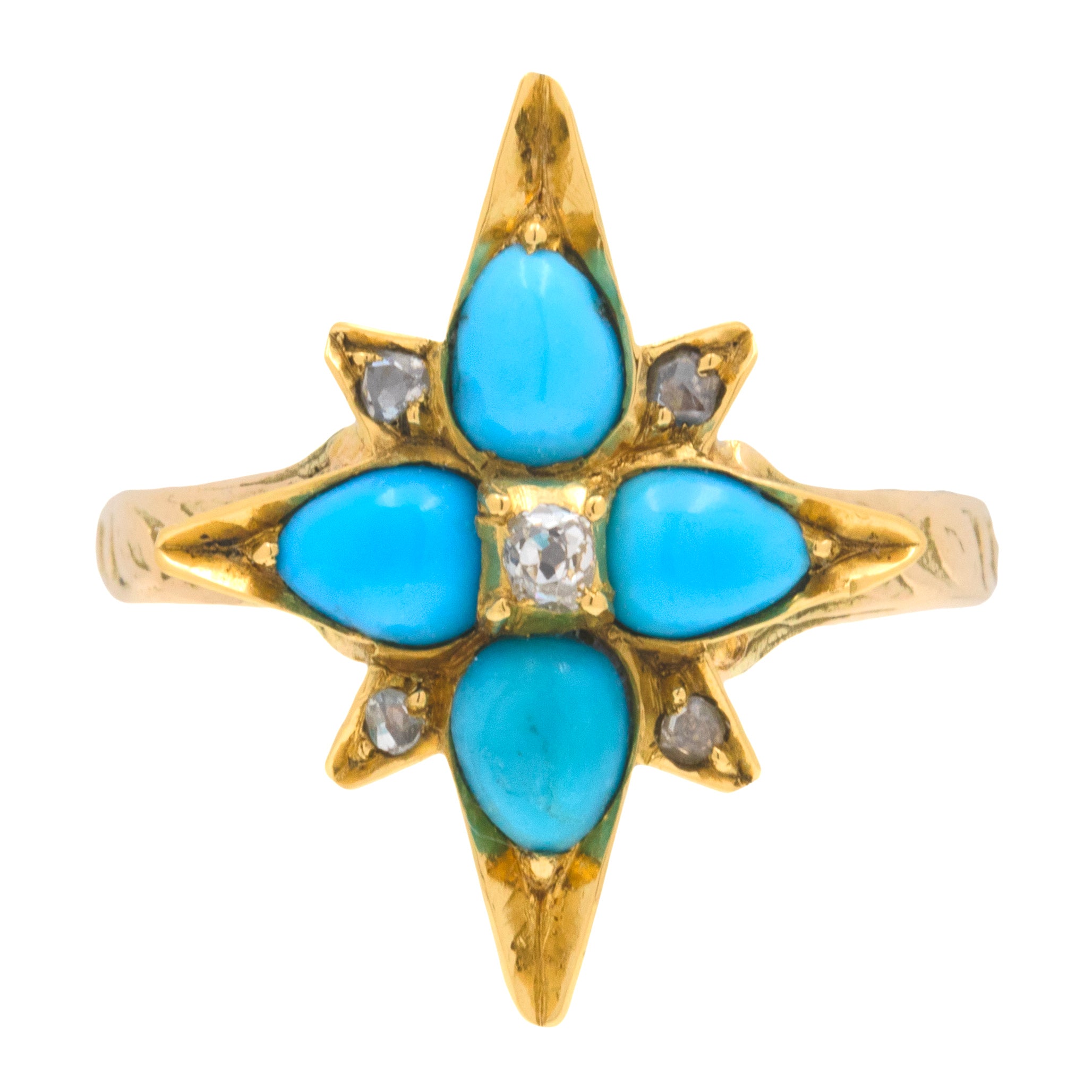 Victorian 15ct Gold Turquoise Diamond Star Ring