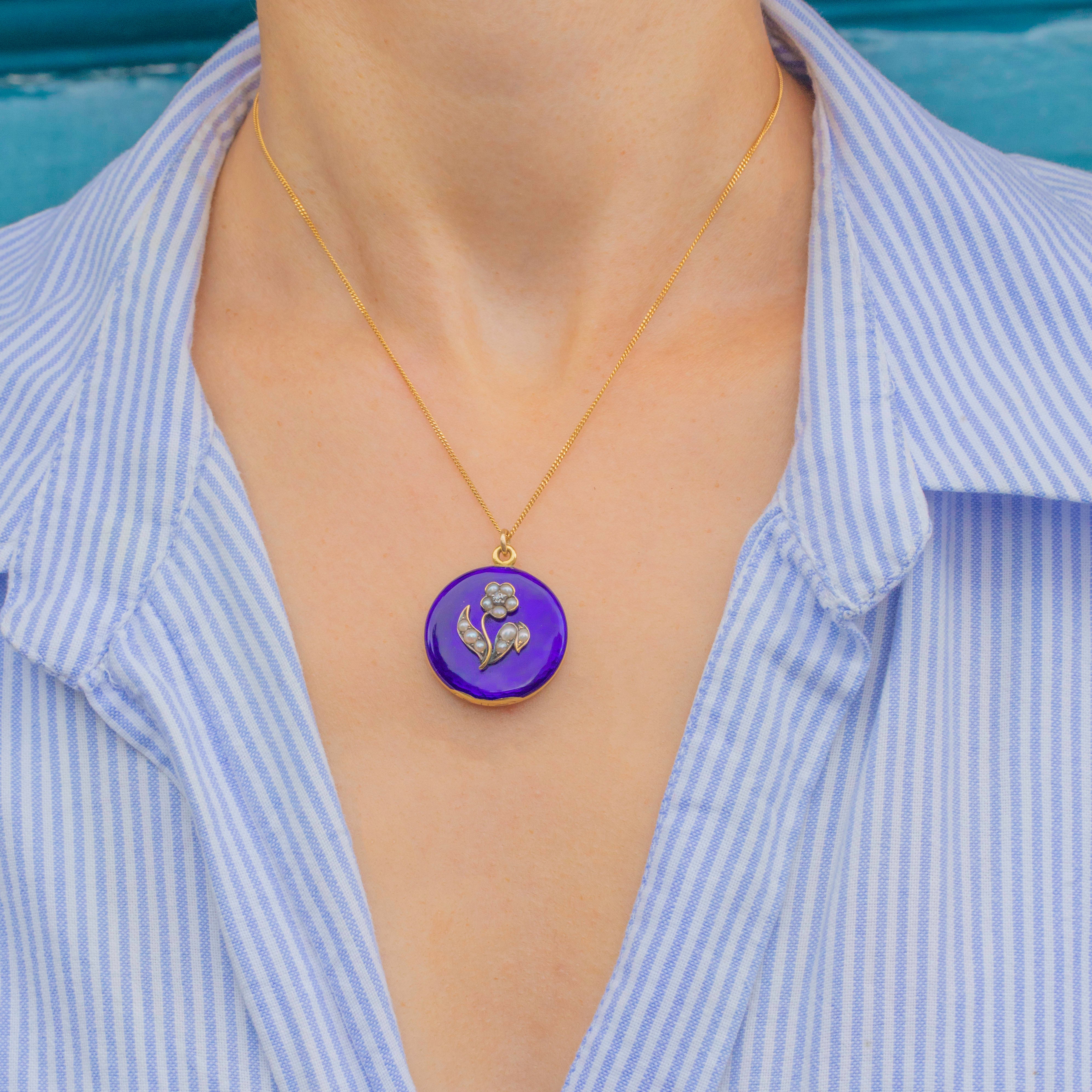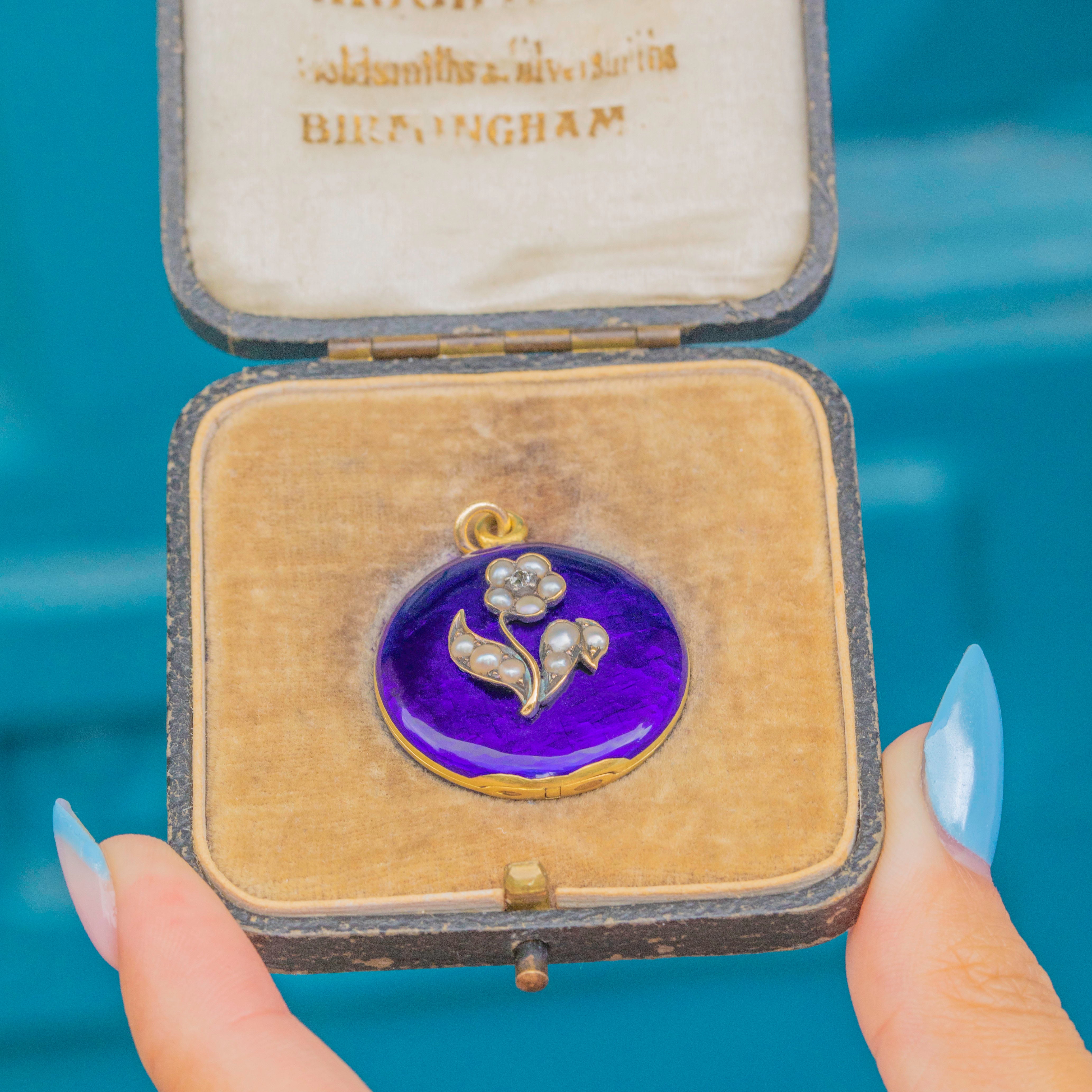 Add a touch of floral charm to your collection with this Victorian forget-me-not Blue Enamel locket!