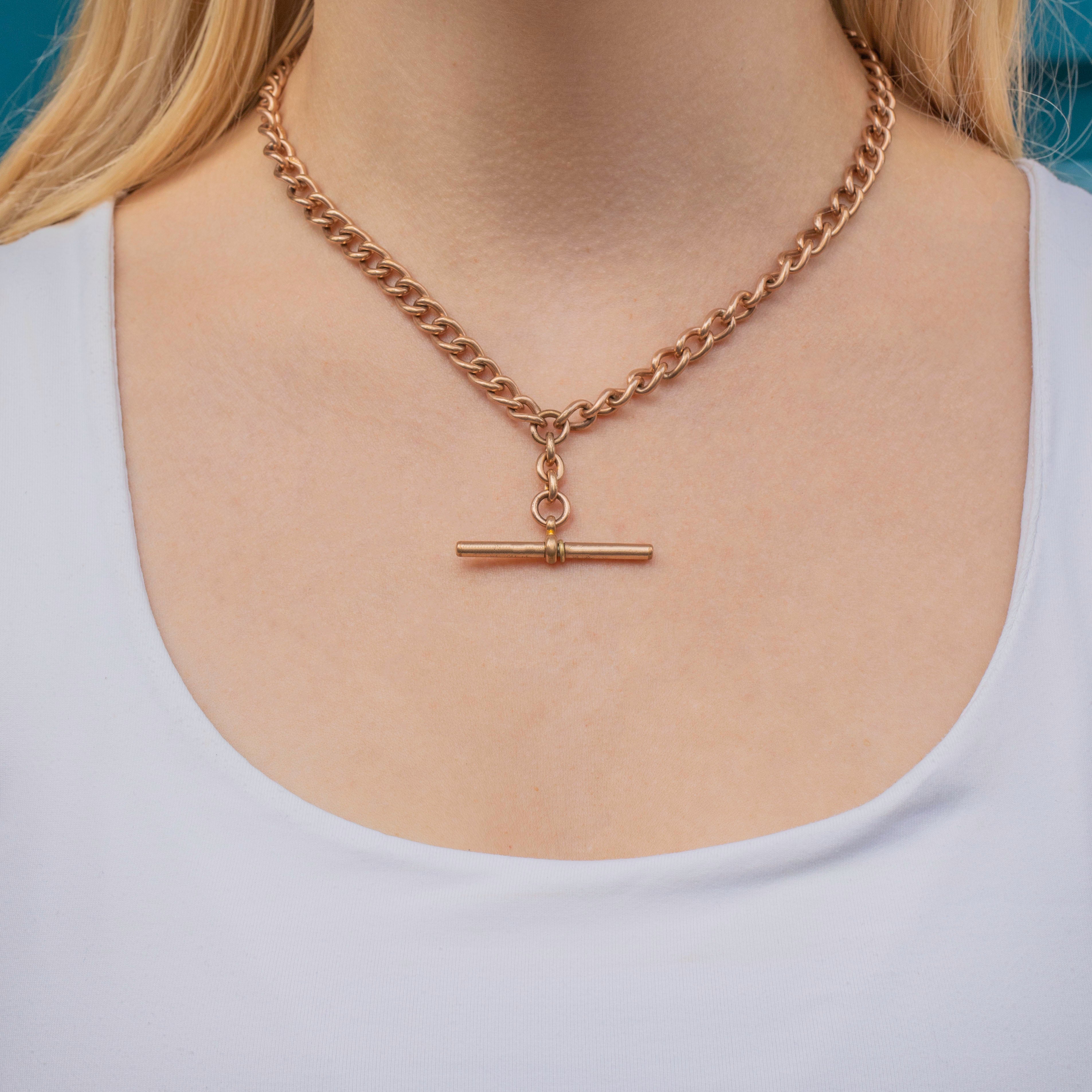 Albert chains are named after a style of watch chain Prince Albert wore during the Victorian period. Traditionally an Albert chain has a "T-bar"on one end used to affix the chain to a vest button-hole and the opposite end of the chain is fitted with a swivel hook to attach watch or a fob. In the present day,  Albert chains are often repurposed  necklaces, as you see here.