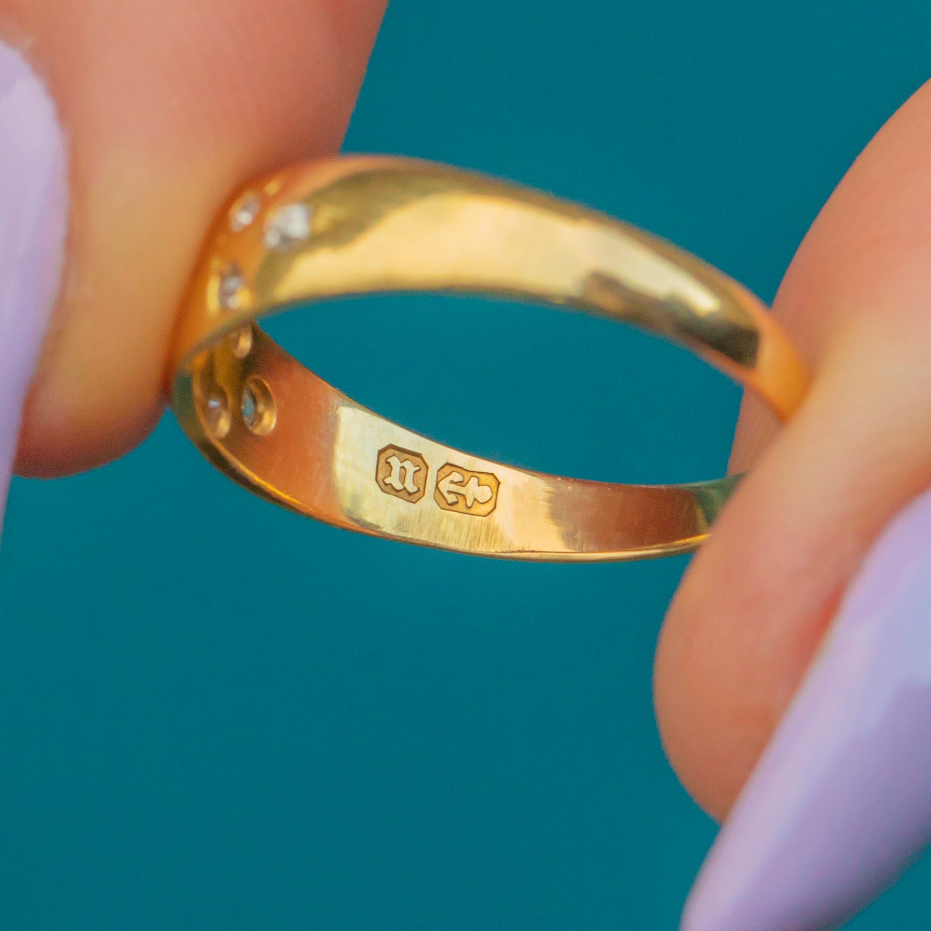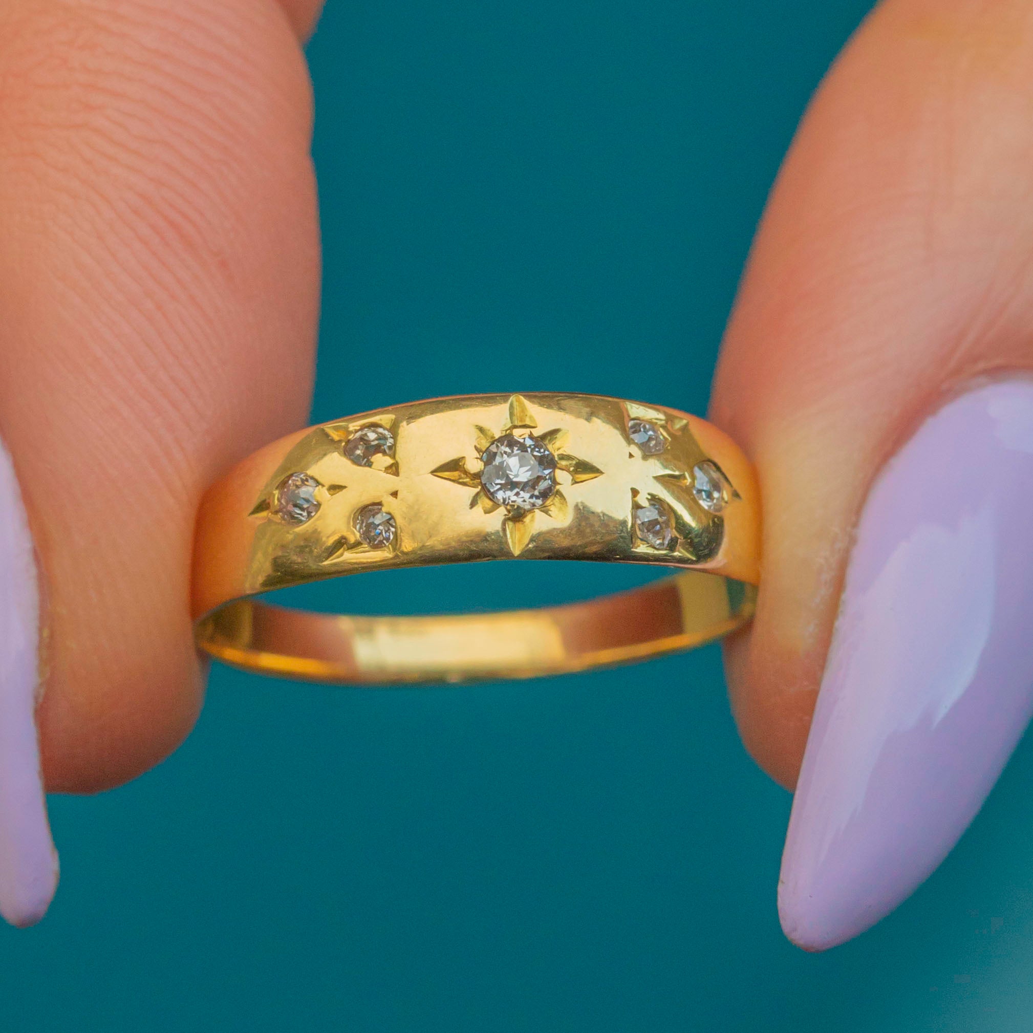This Victorian 18ct Gold Diamond gypsy ring is simply stunning. Crafted from sumptuous, buttery 18ct Gold, you will feel ever so regal with this ring caressing your finger!