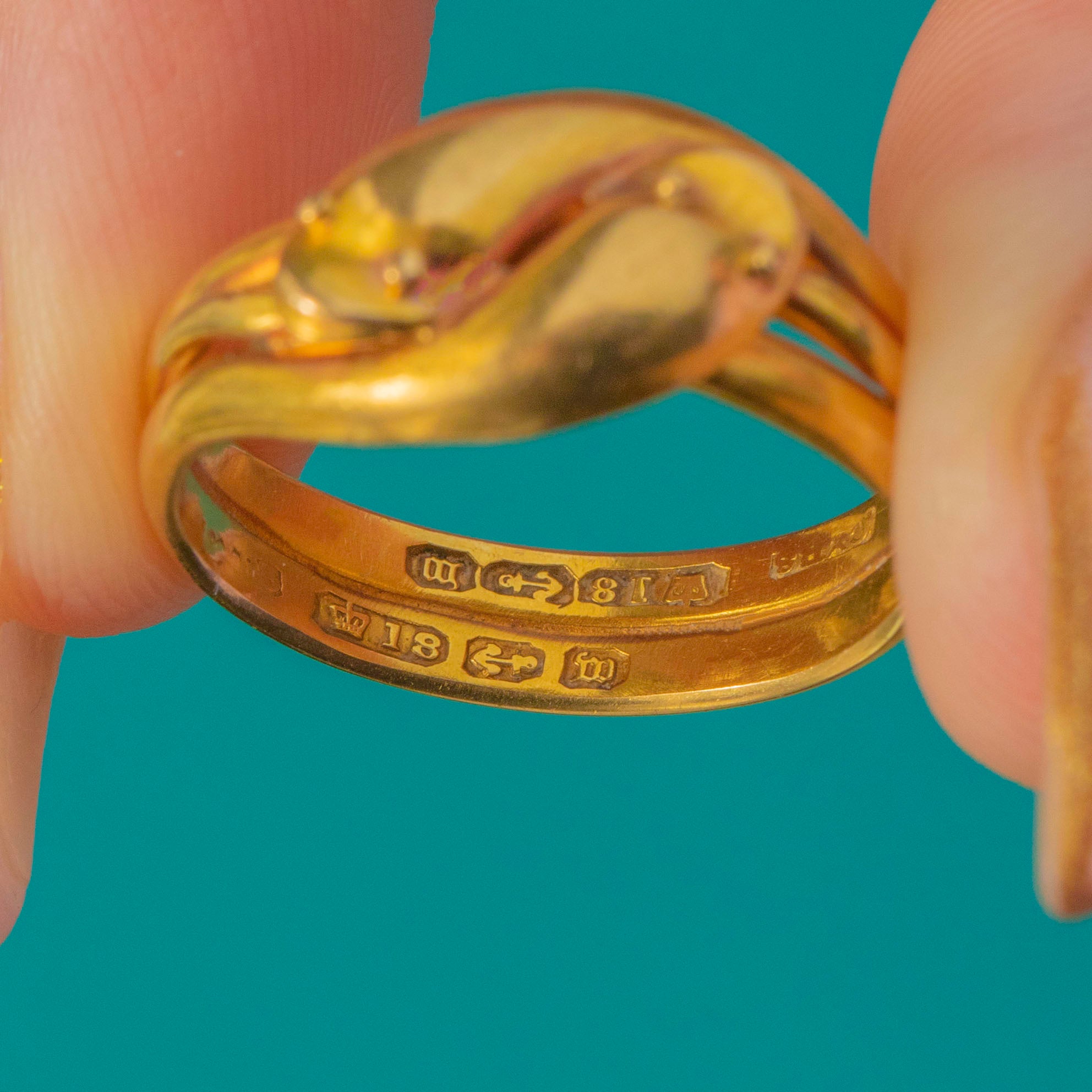 Victorian 18ct Gold Double Snake Ring c.1886