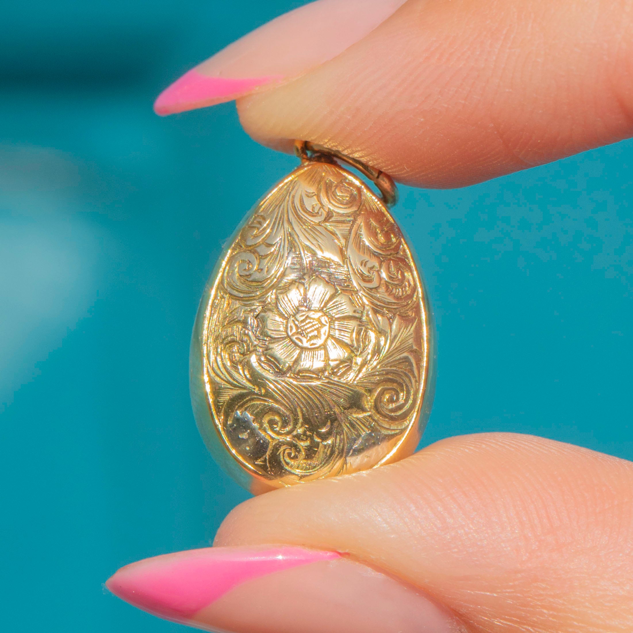 Victorian 18ct Gold Engraved Garnet Cabochon Pendant, 4.05ct