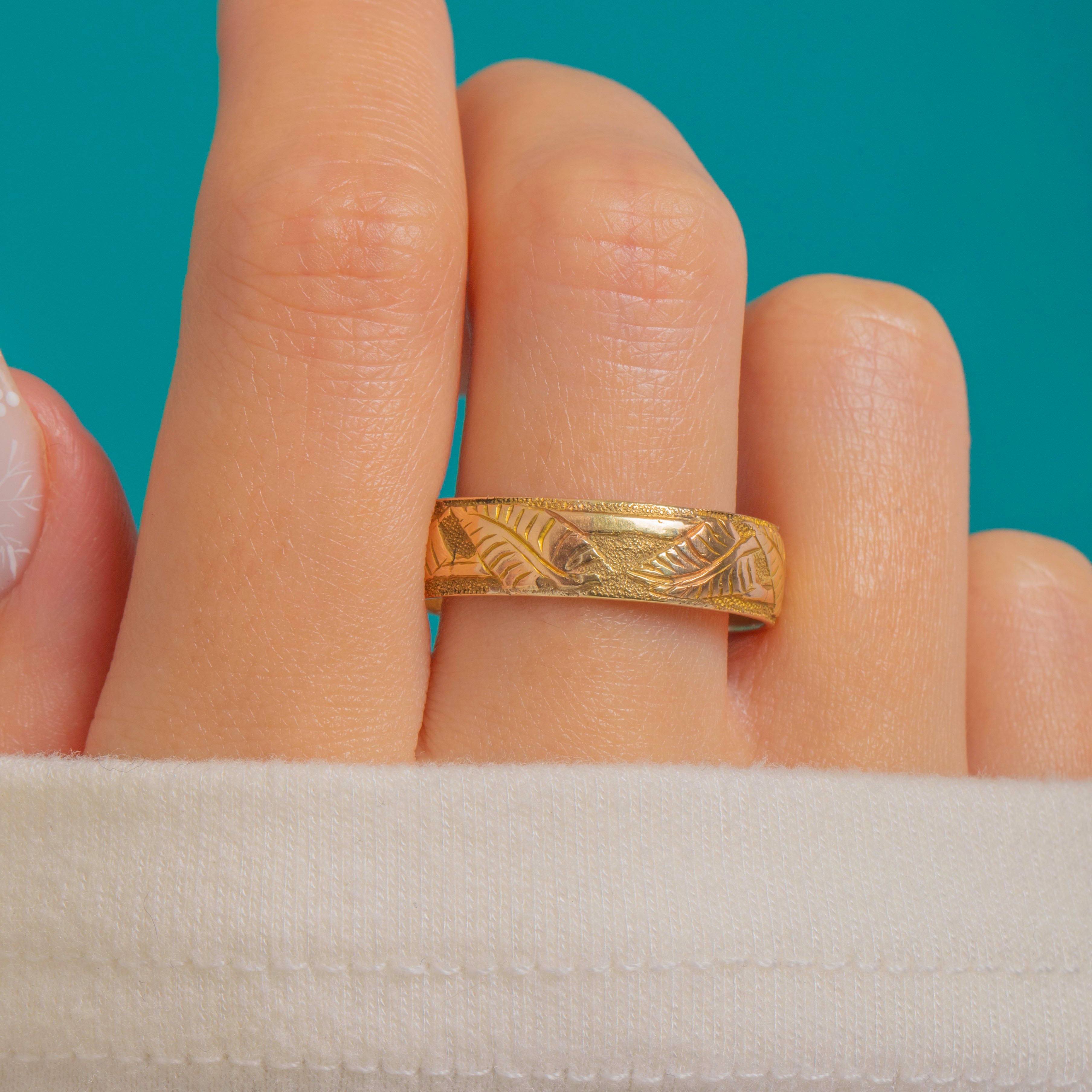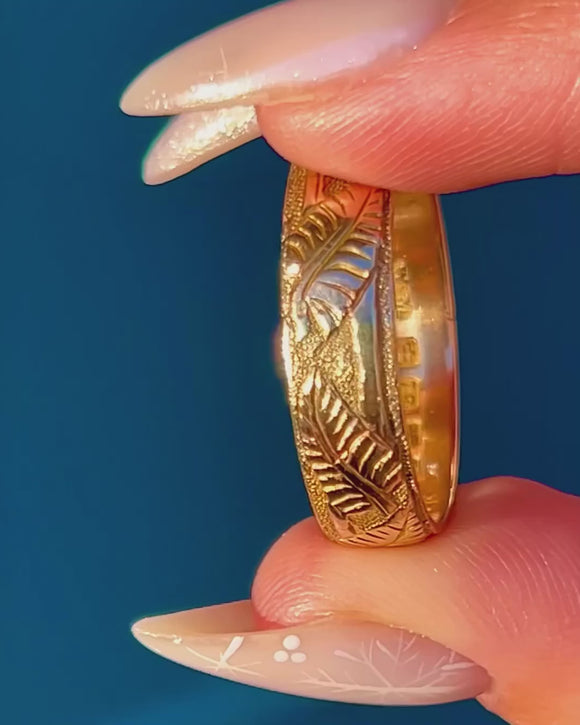 Victorian 18ct Gold Fern Evergreen Wedding Band c.1882