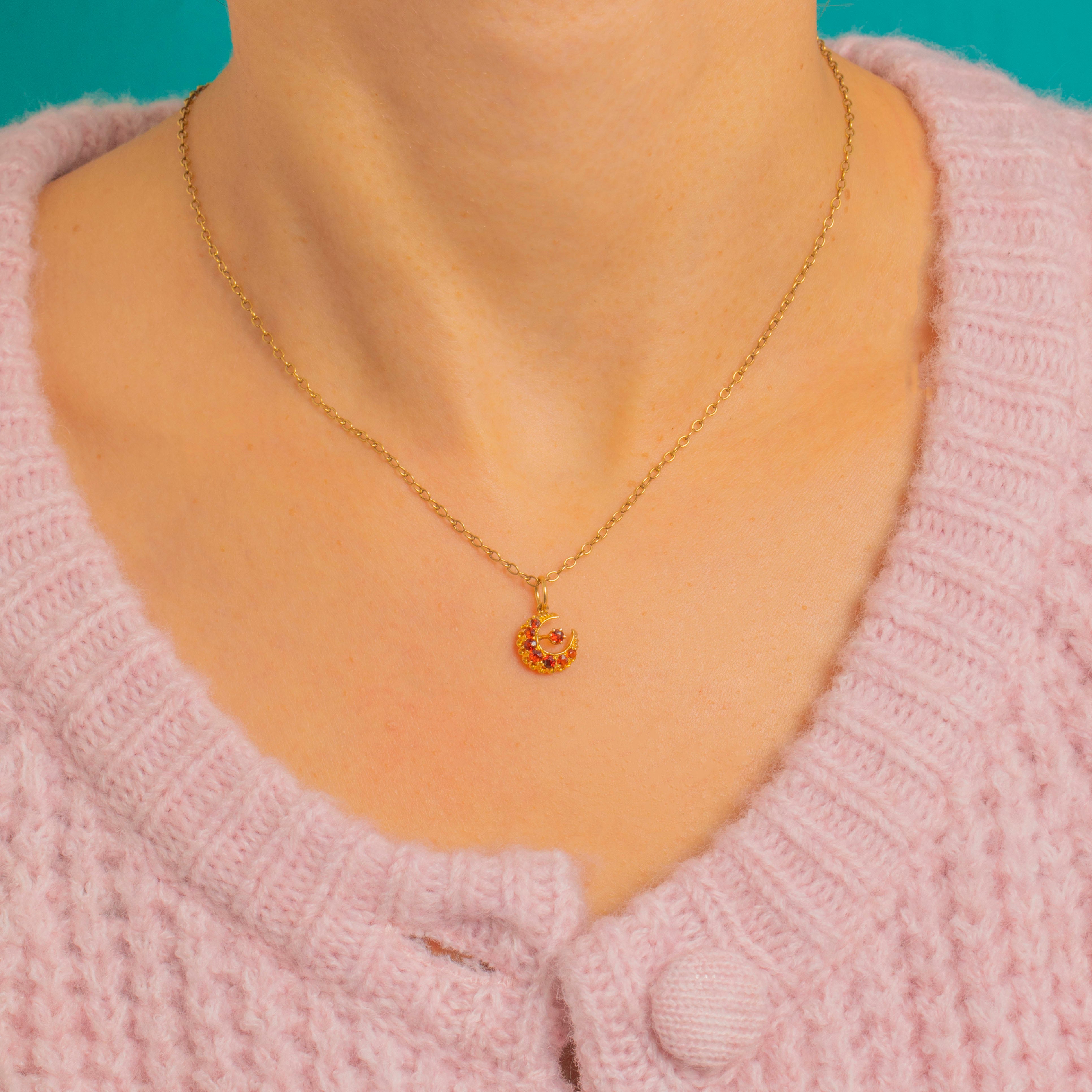 Petite yet full of personality, it layers effortlessly with other pieces or brings a flash of antique colour worn solo — a charming symbol of Victorian fascination with the moon and stars.