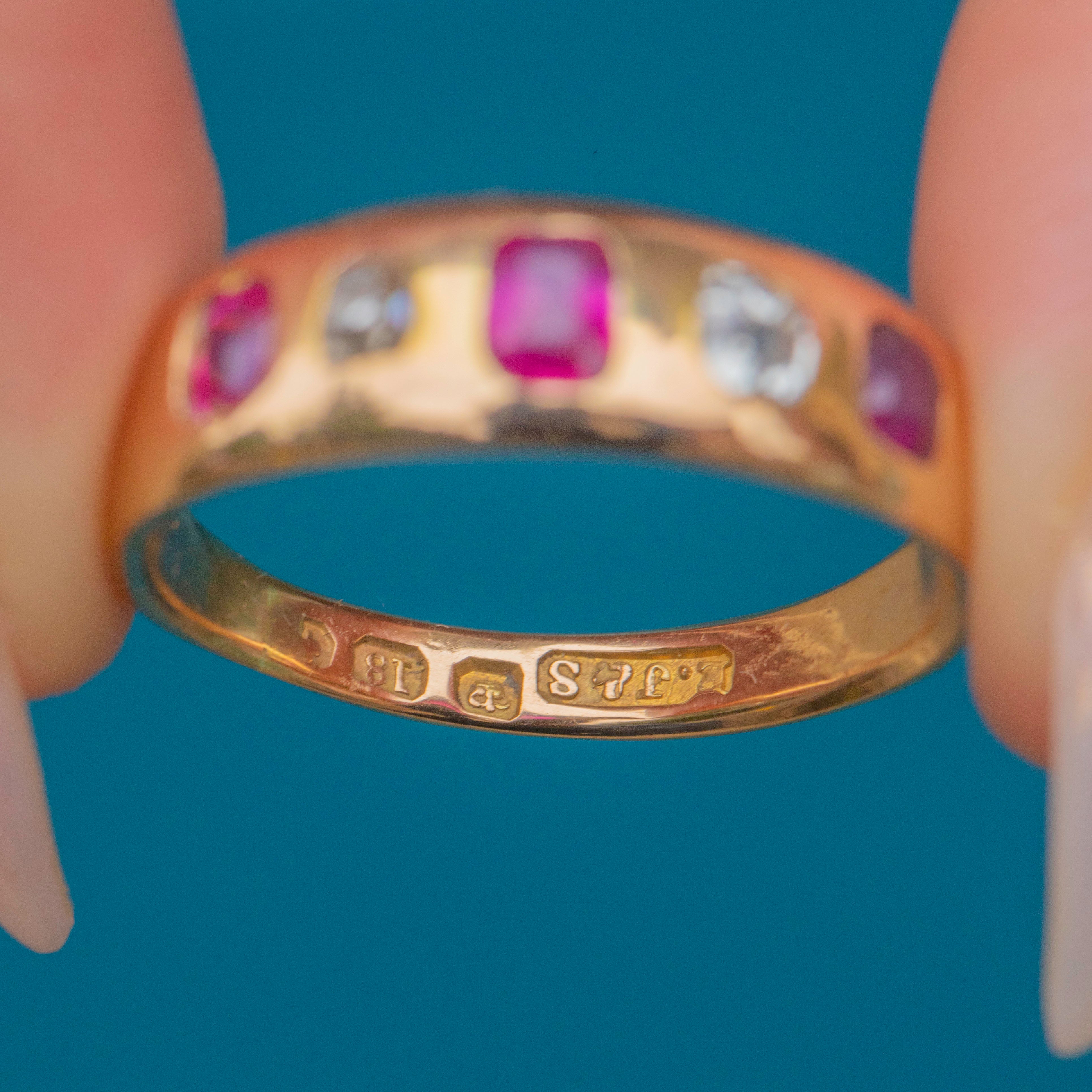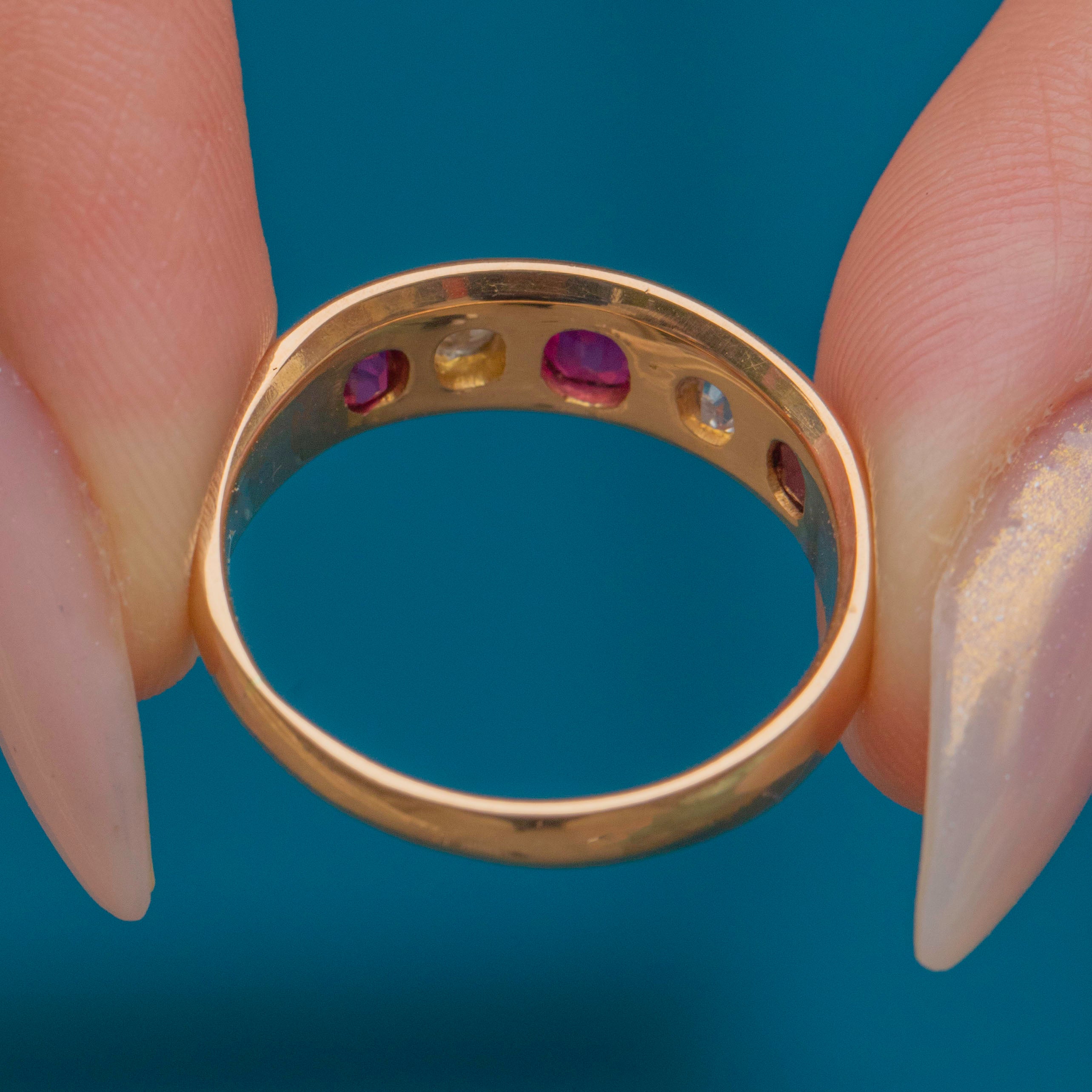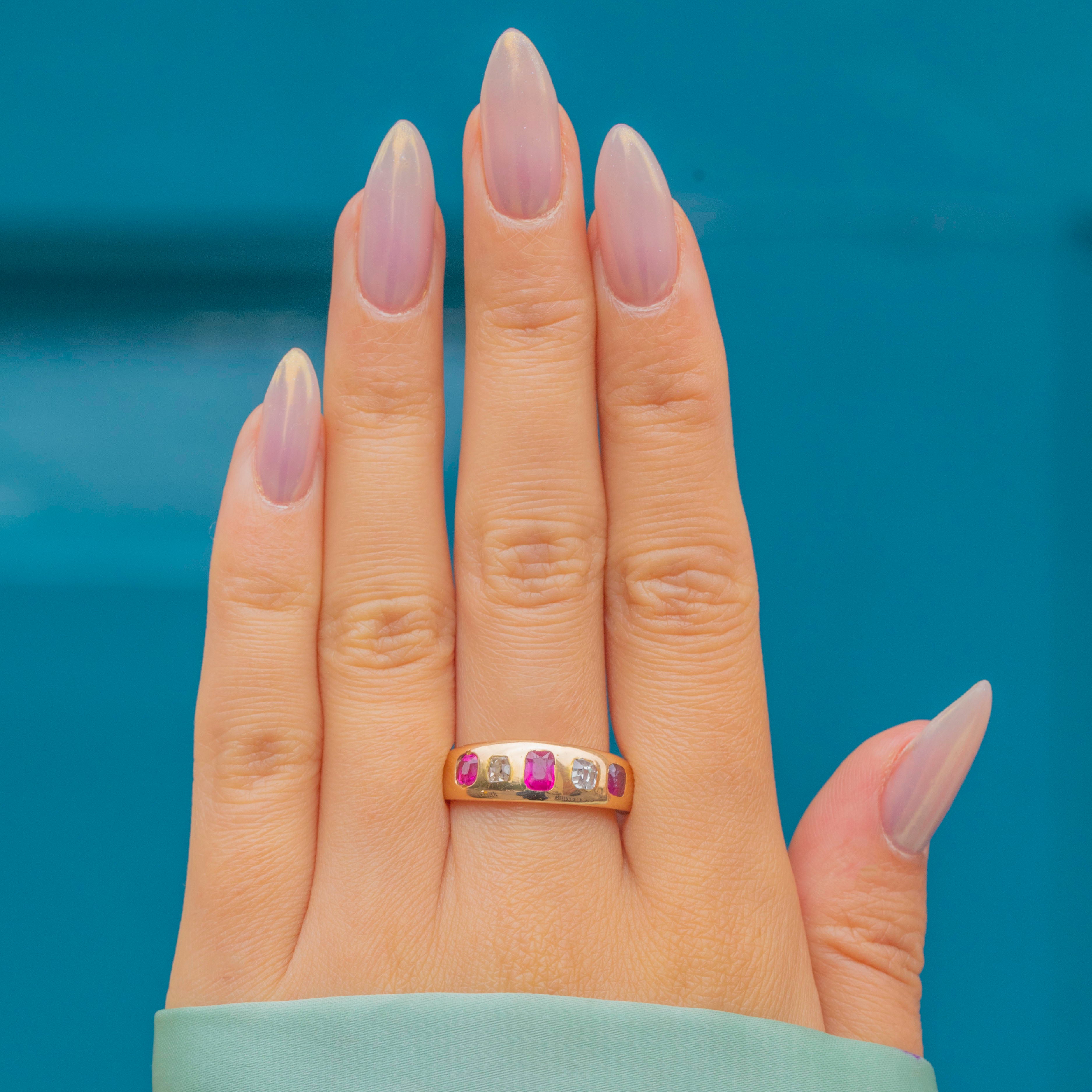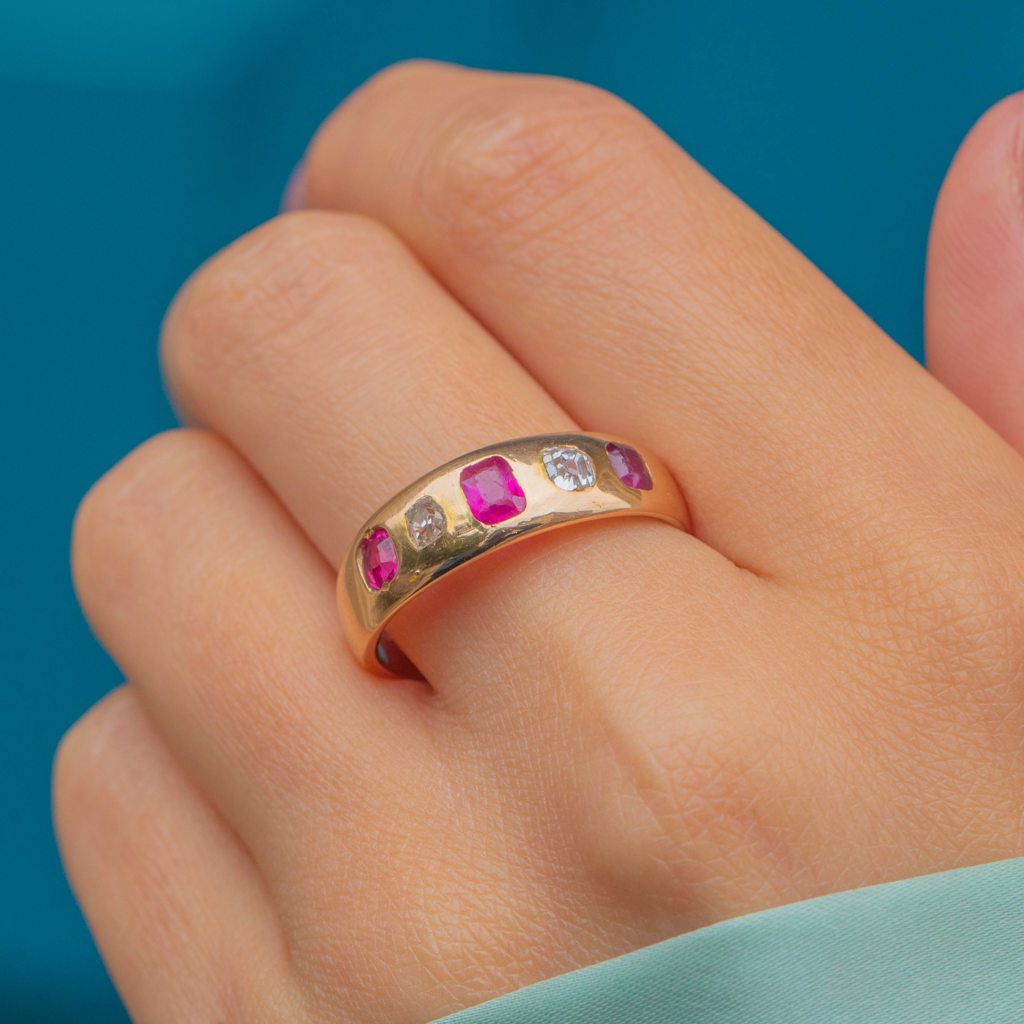 Victorian 18ct Gold Gypsy Ring with Rubies and Diamonds