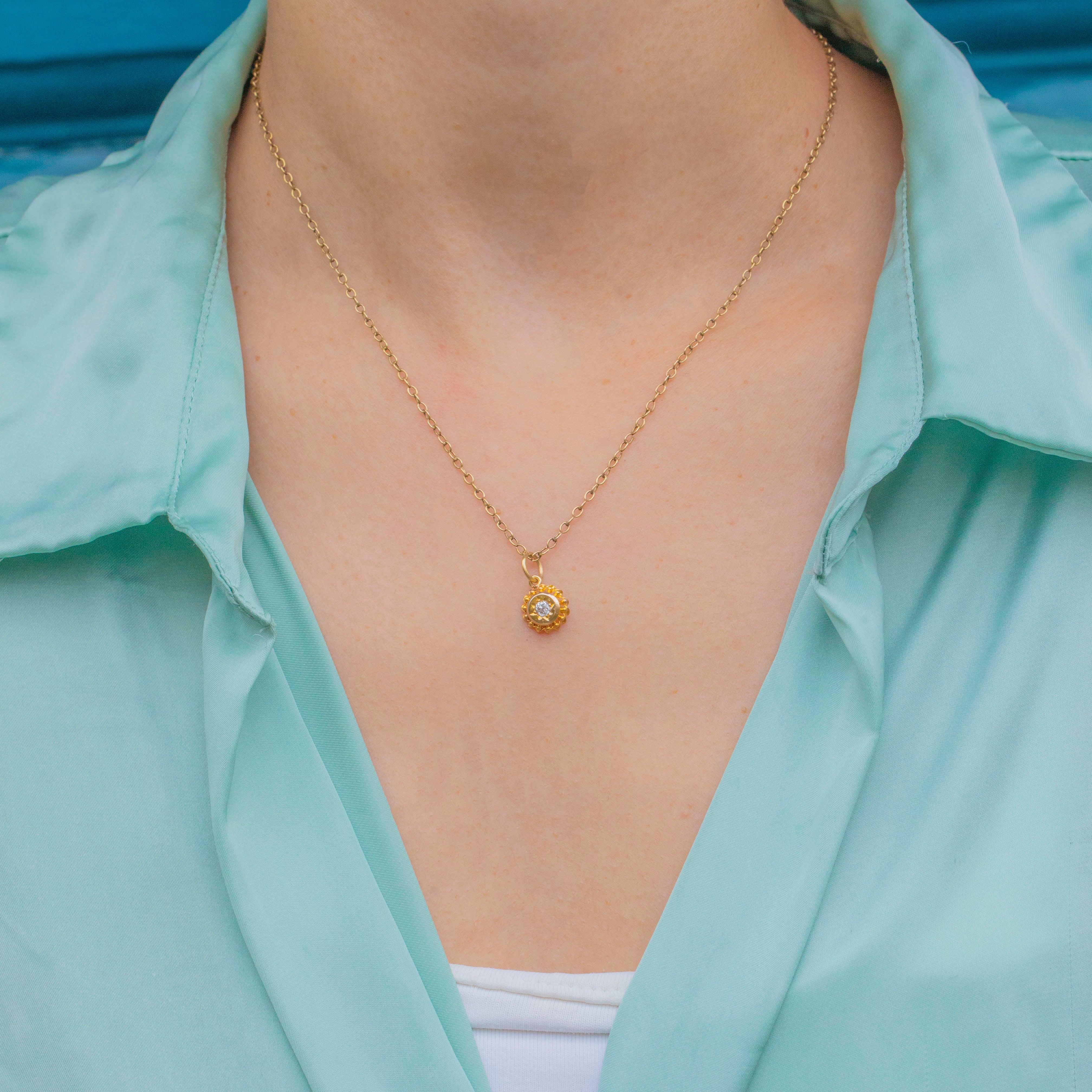 Petite yet full of character, this piece captures the antique fascination with ancient design and adds the perfect hint of sparkle for everyday wear or layering with other antique charms.