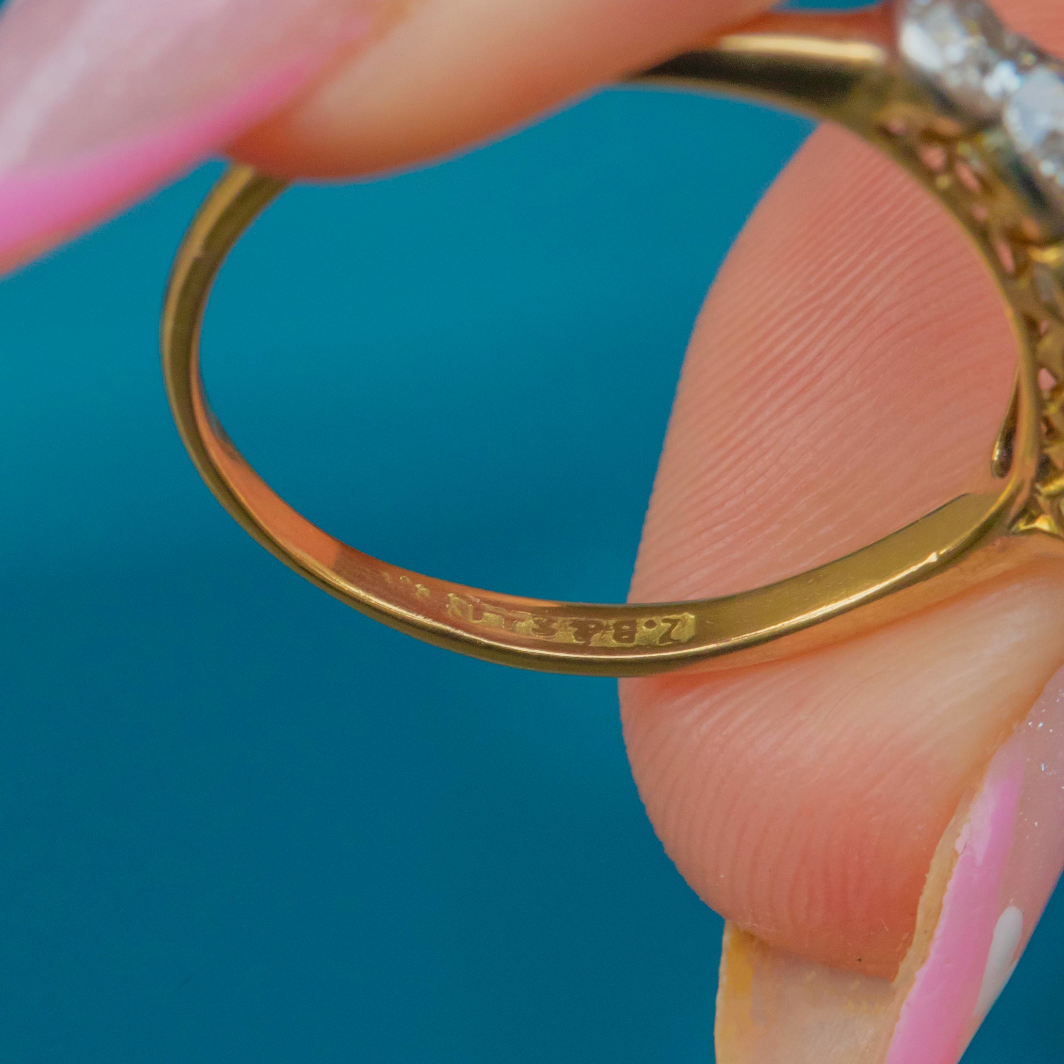 MATERIALS: Tests as 18ct Gold, Platinum settings, Old Mine Cut Diamonds (1.70ct).