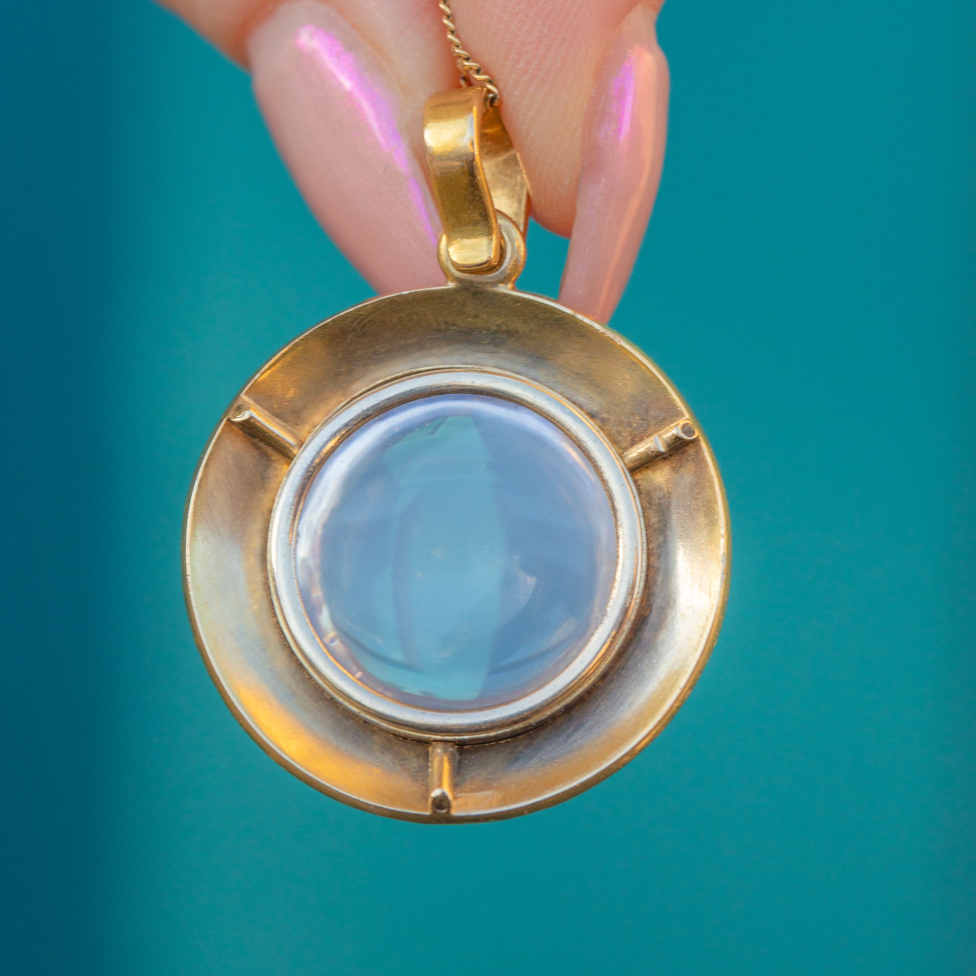 Victorian 18ct Gold Rock Crystal Blue Enamel Pendant, Locket Back
