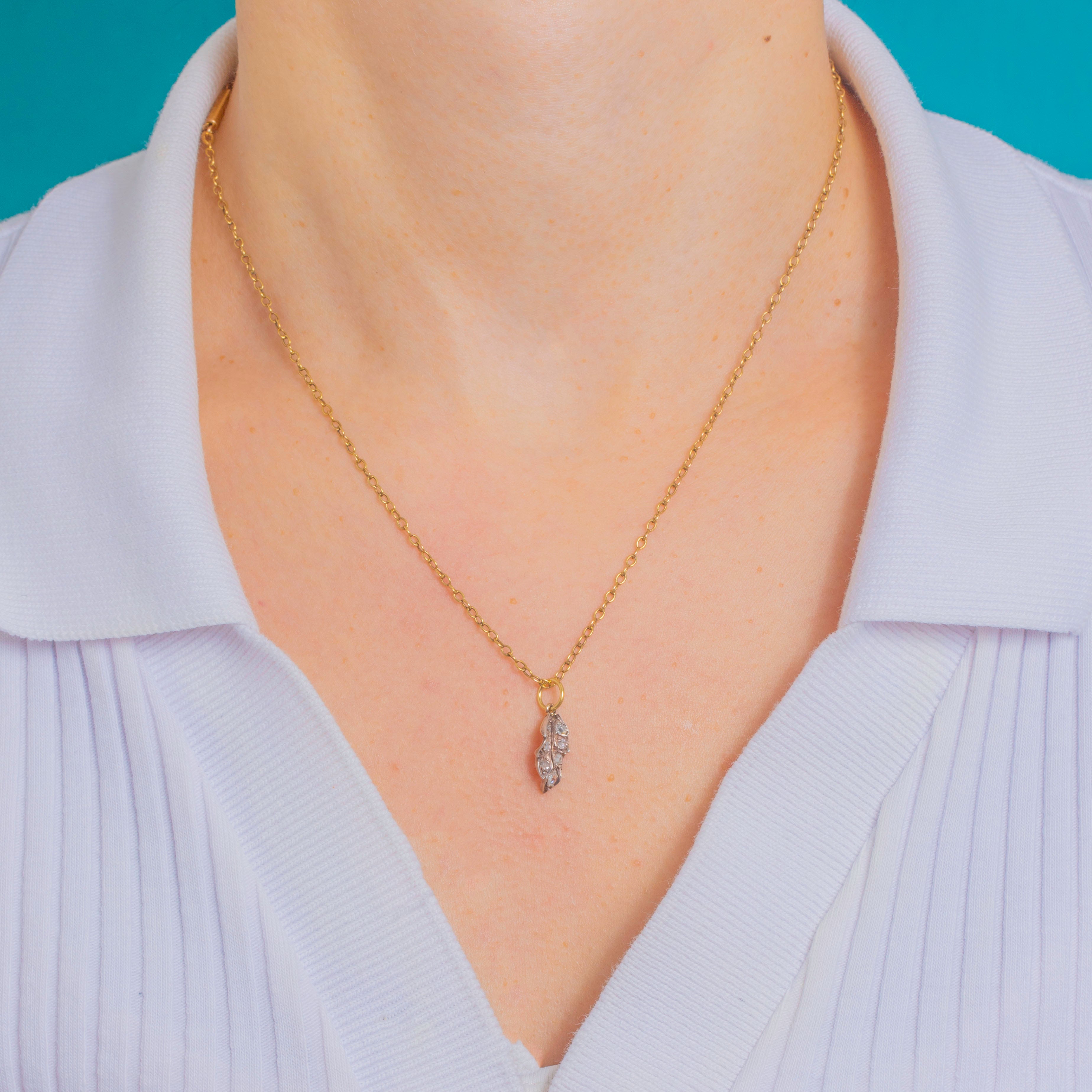 Dainty and deliciously decorative, this Victorian leaf charm is set with glimmering rose-cut Diamonds that trace each lobe and vein. The Silver-topped face lends a soft, antique sheen to the Diamonds, while the reverse and jump ring are fashioned in rich 18ct Gold for a timeless two-tone look.