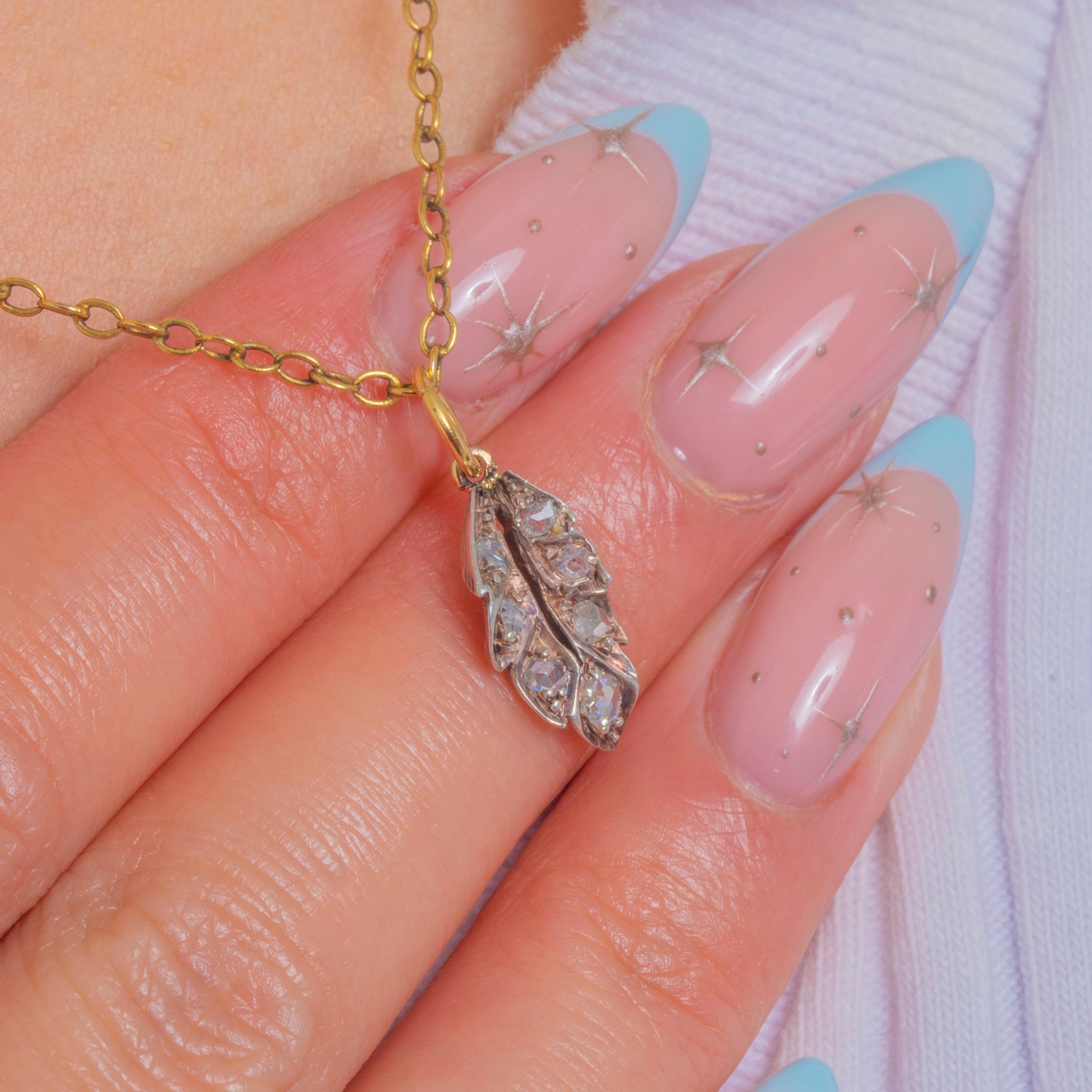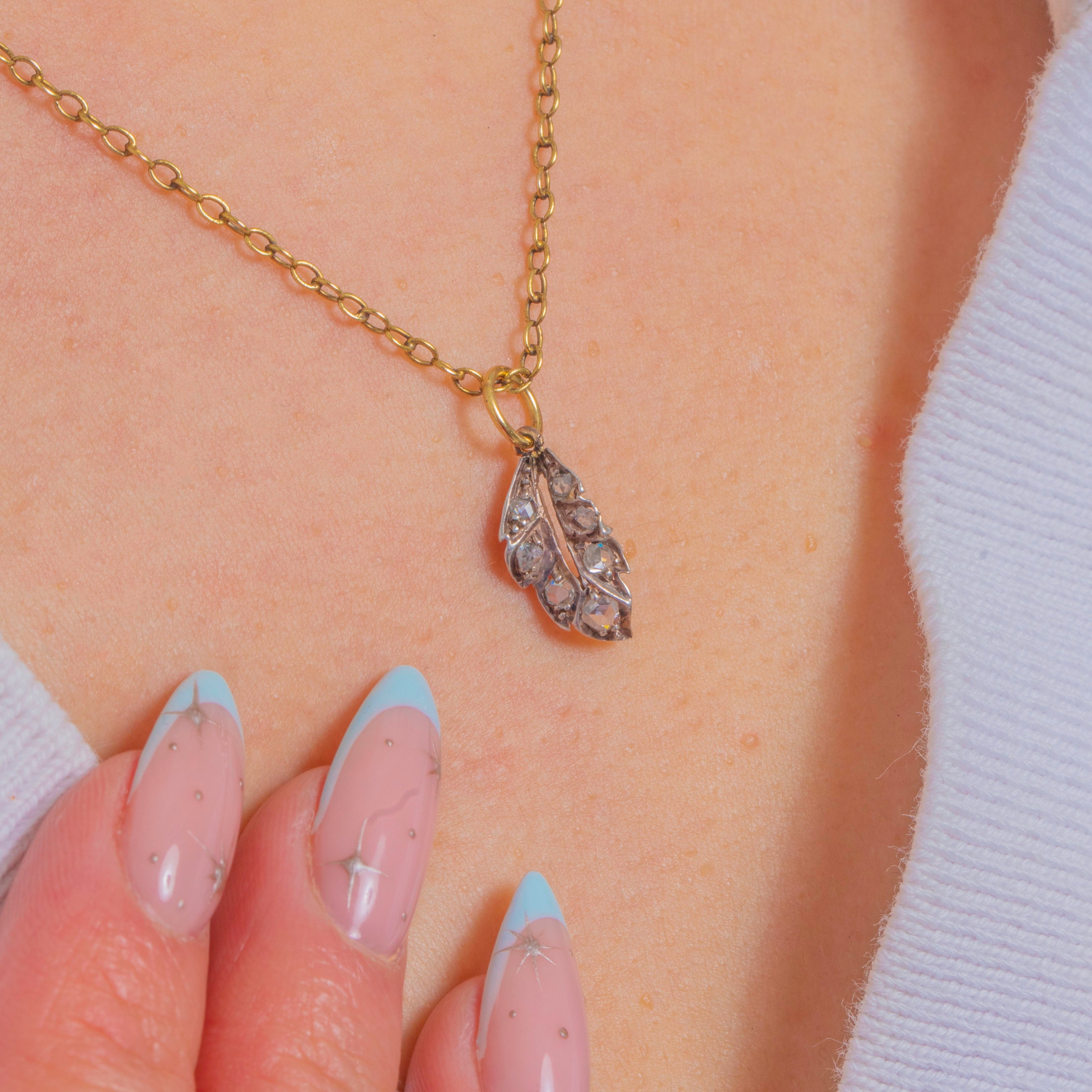 Victorian 18ct Gold & Silver Rose-Cut Diamond Leaf Charm Item added