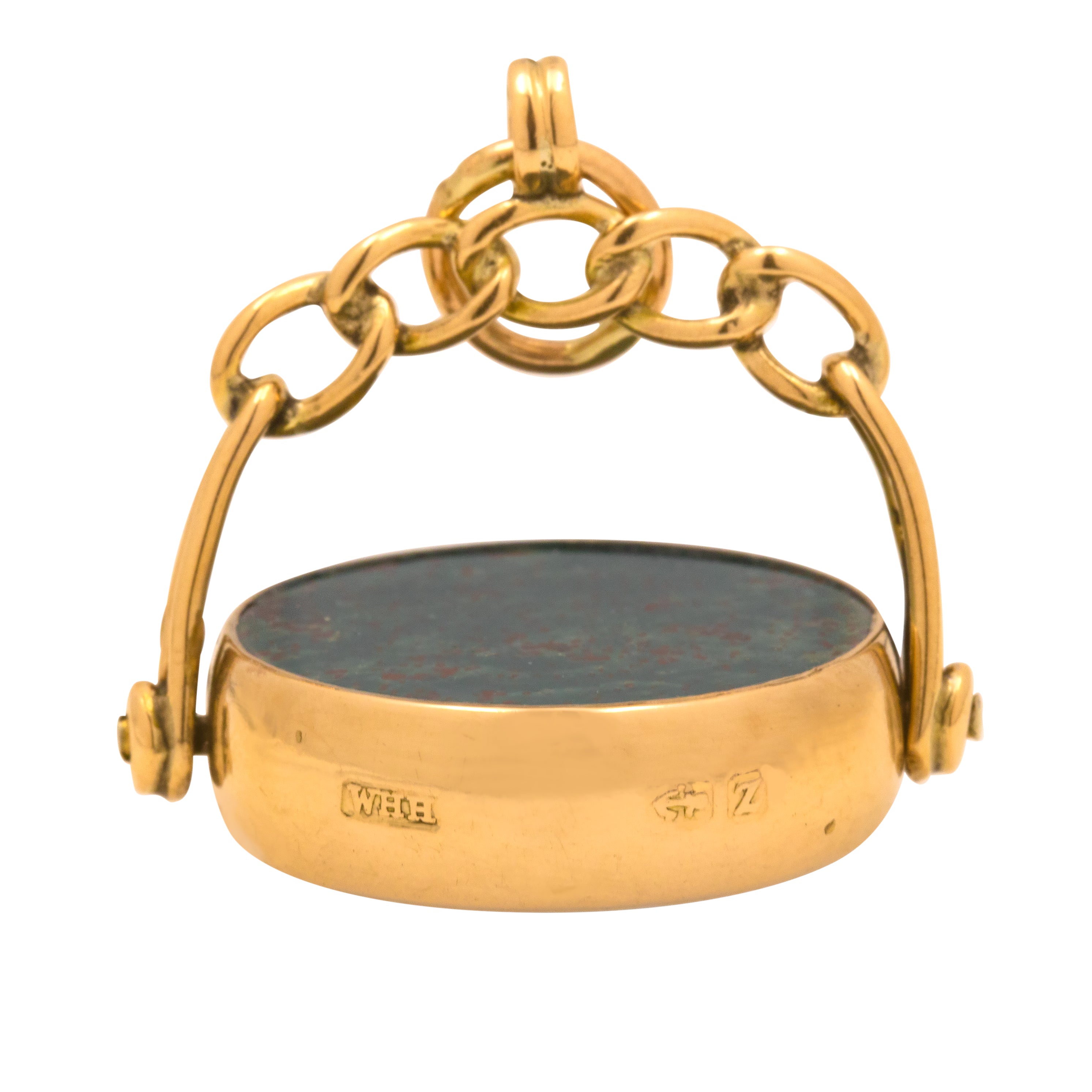 MATERIALS: Tests as 9ct Gold, Bloodstone, Carnelian.