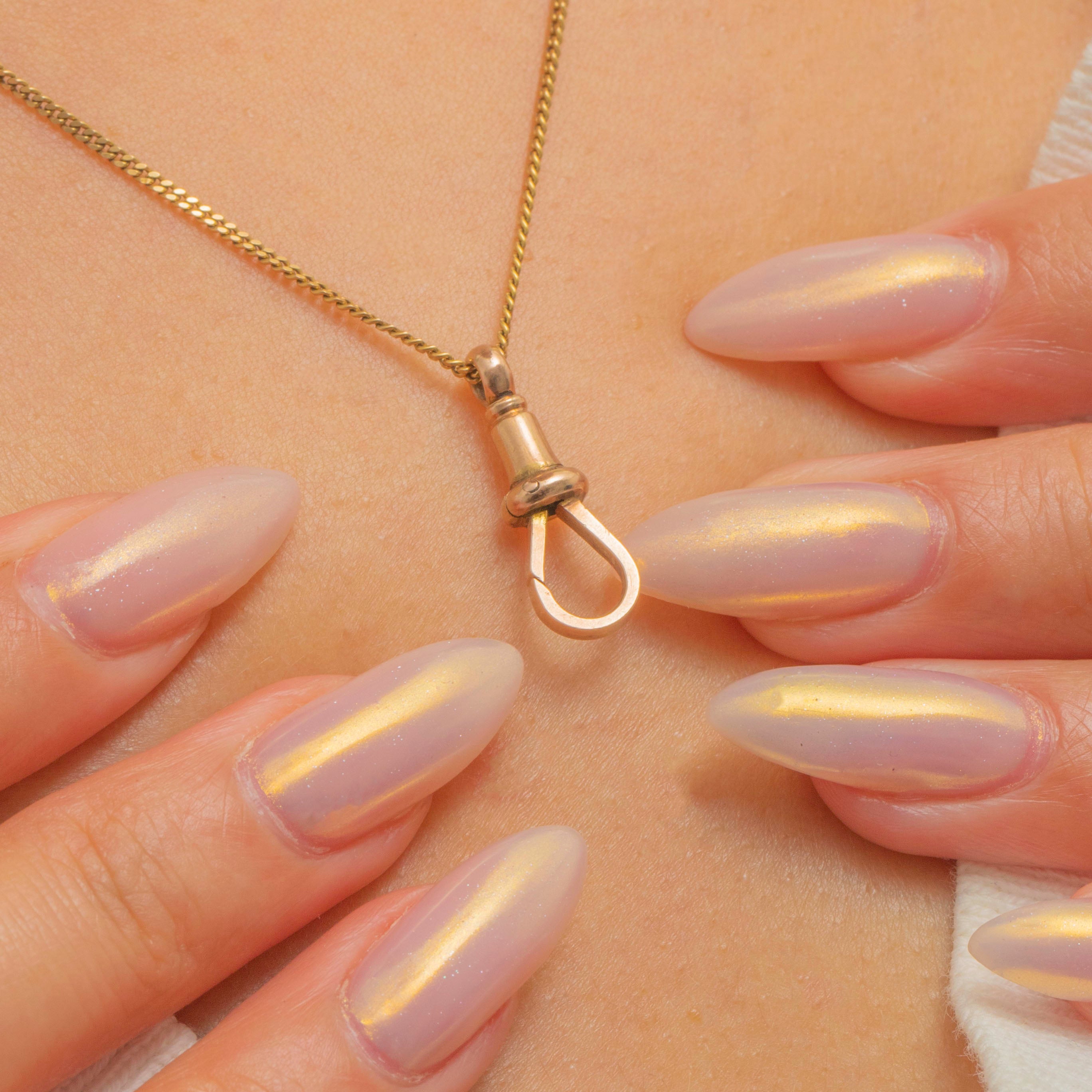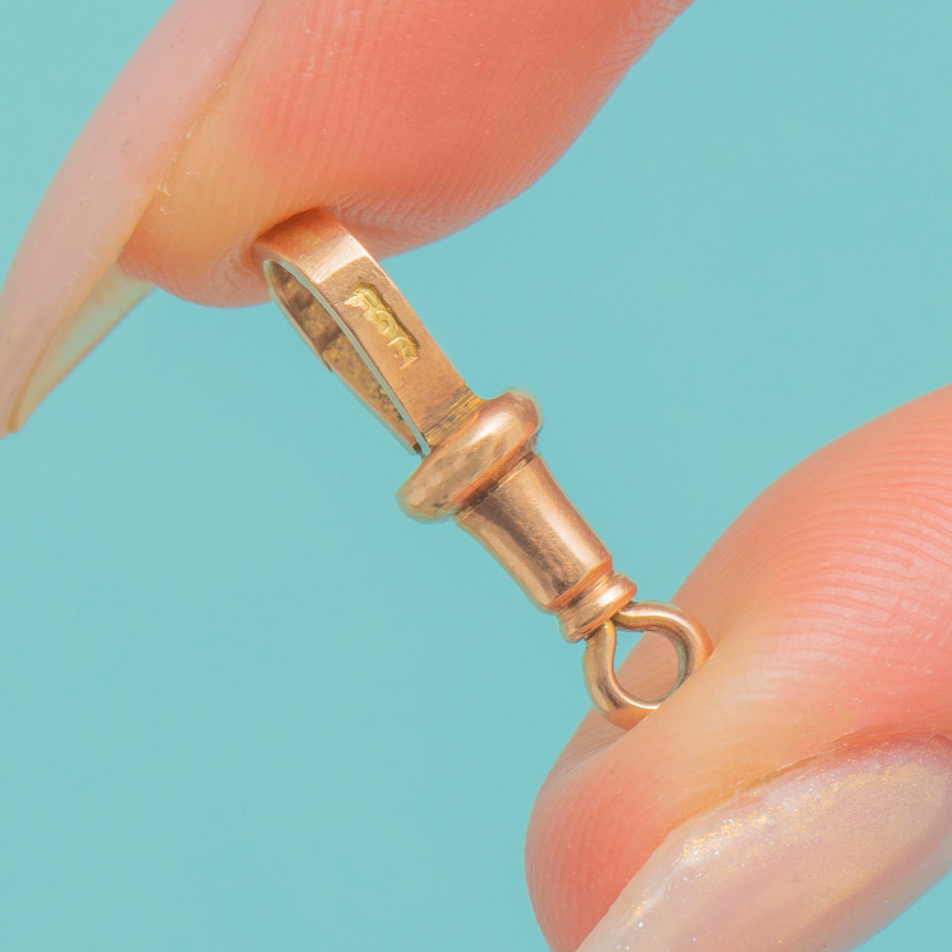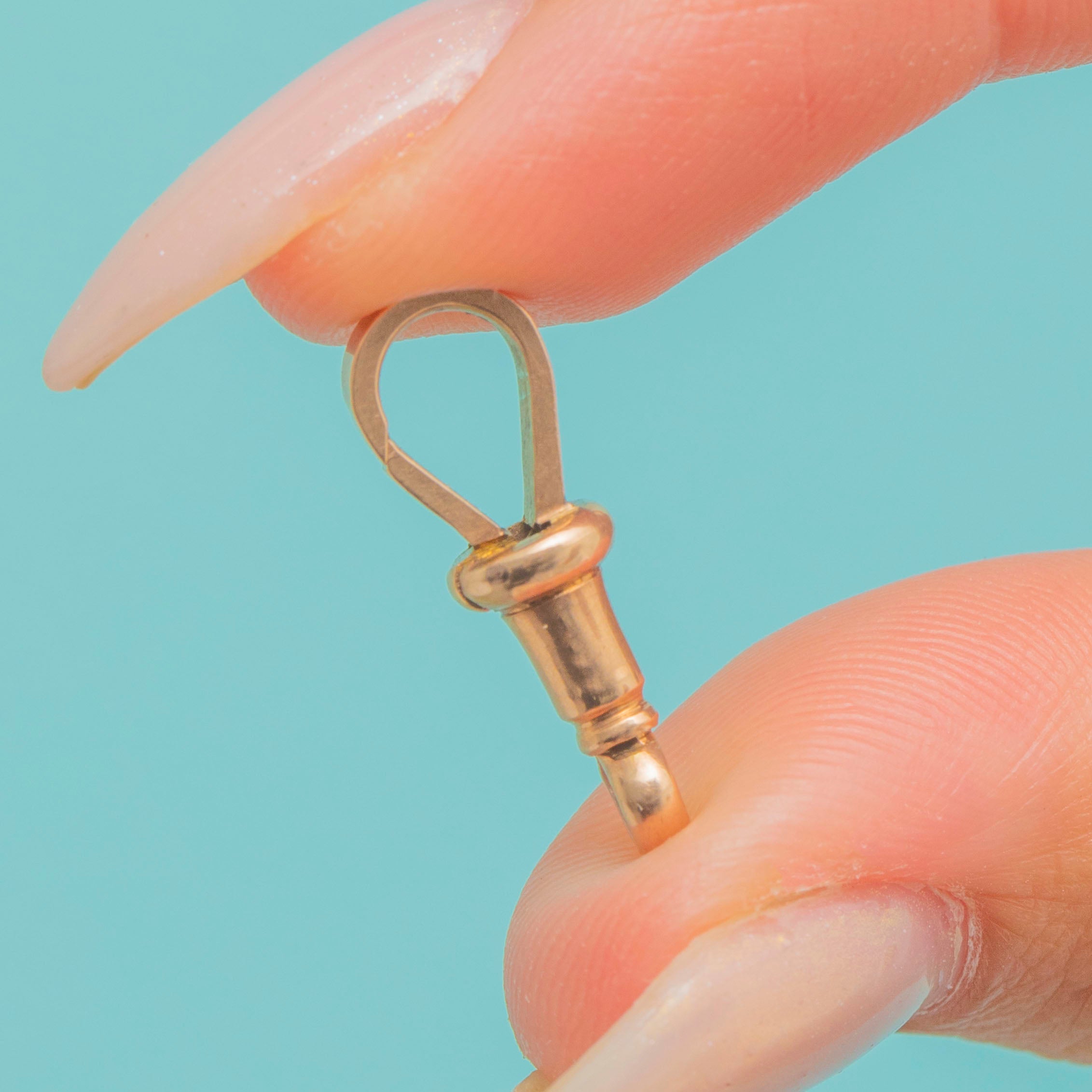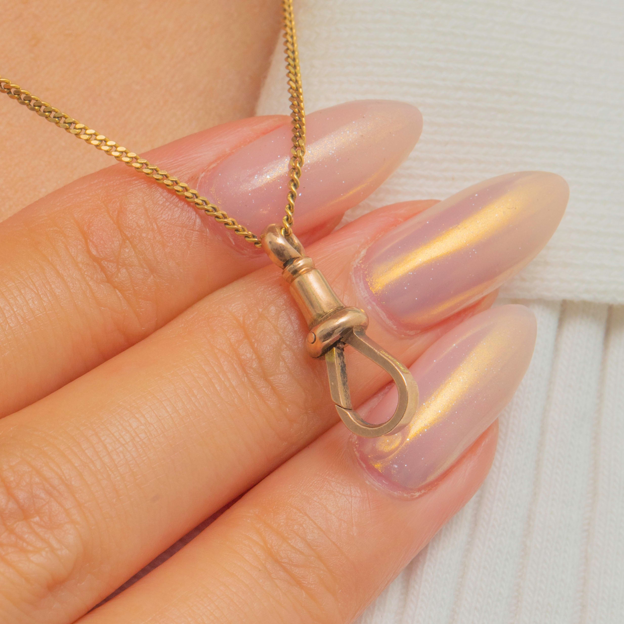 This sleek 9ct Gold dog clip is a classic piece from the Art Deco era, stamped “9ct” and designed with timeless simplicity. The tapered body and clean lines give it a refined silhouette, ideal for attaching pendants, fobs, or charms to your favourite chain.
