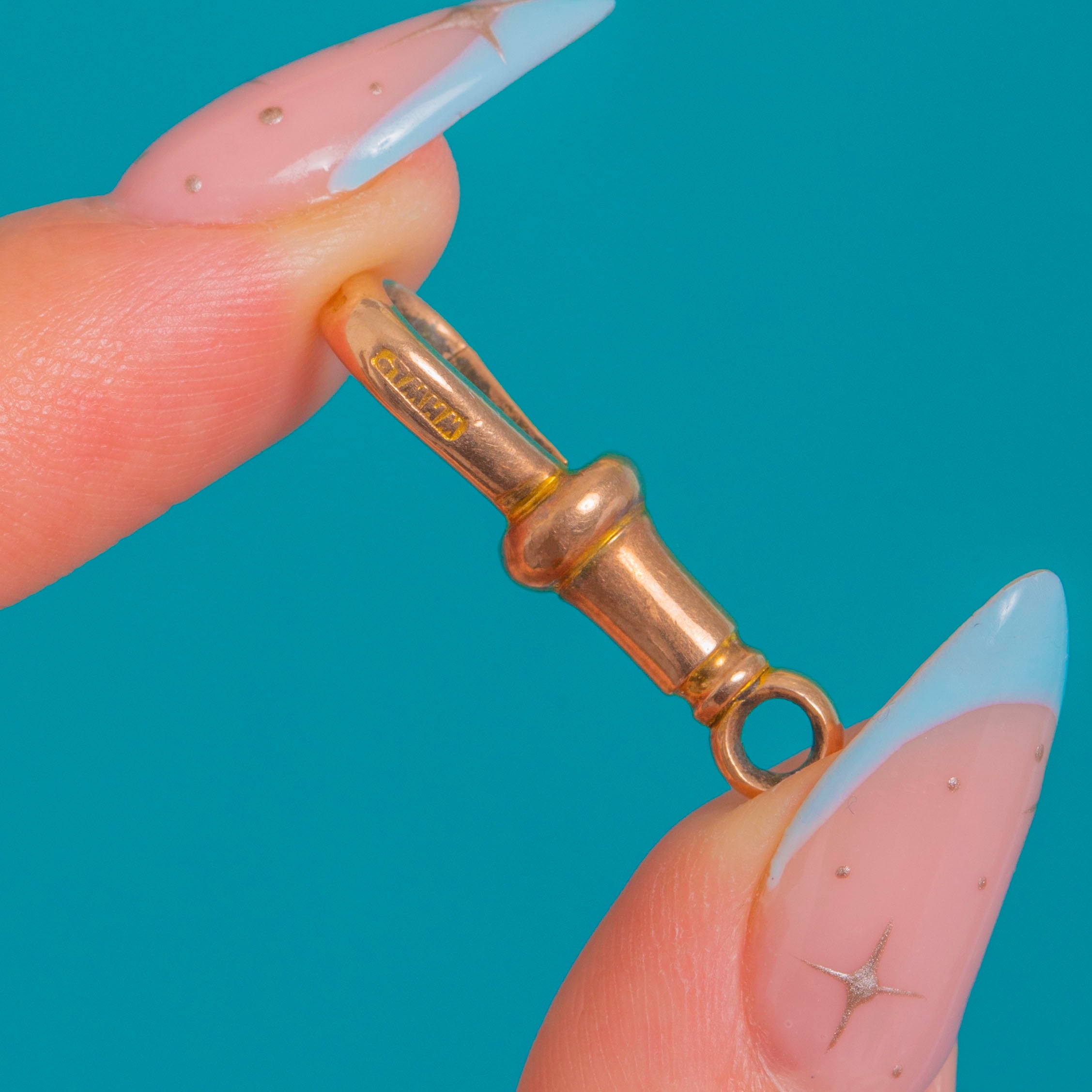 A classic Victorian dog-clip in 9ct Gold, elegantly engineered with a turned barrel, subtle banding and a sleek teardrop gate. Its warm, slightly rosy hue and polished finish lend effortless refinement to any chain.