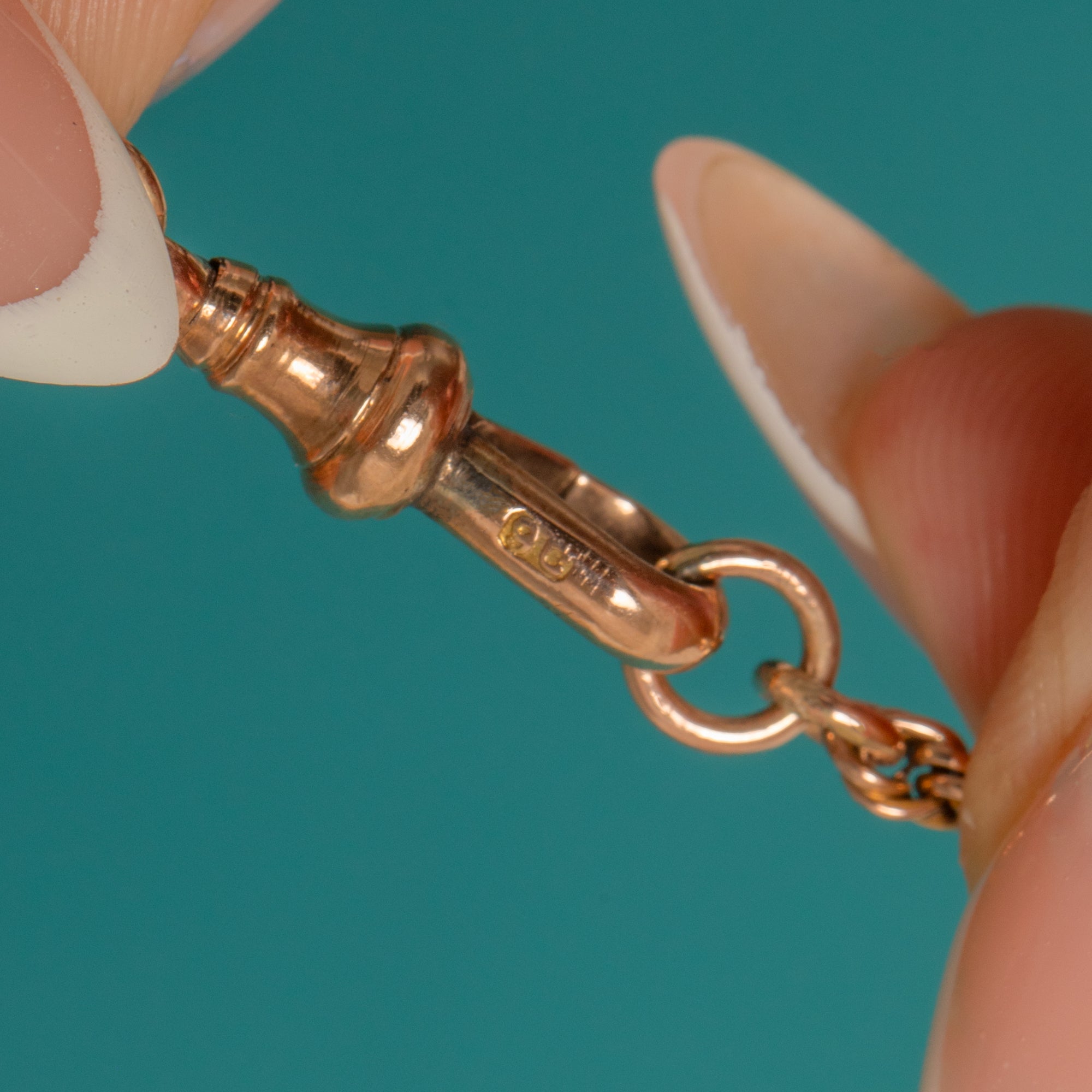EXCELLENT: Light surface wear and faint scratches under close inspection, consistent with age and careful wear. The links are intact, well-articulated and retain an even polish. The dog‑clip is tidy and closes securely.
