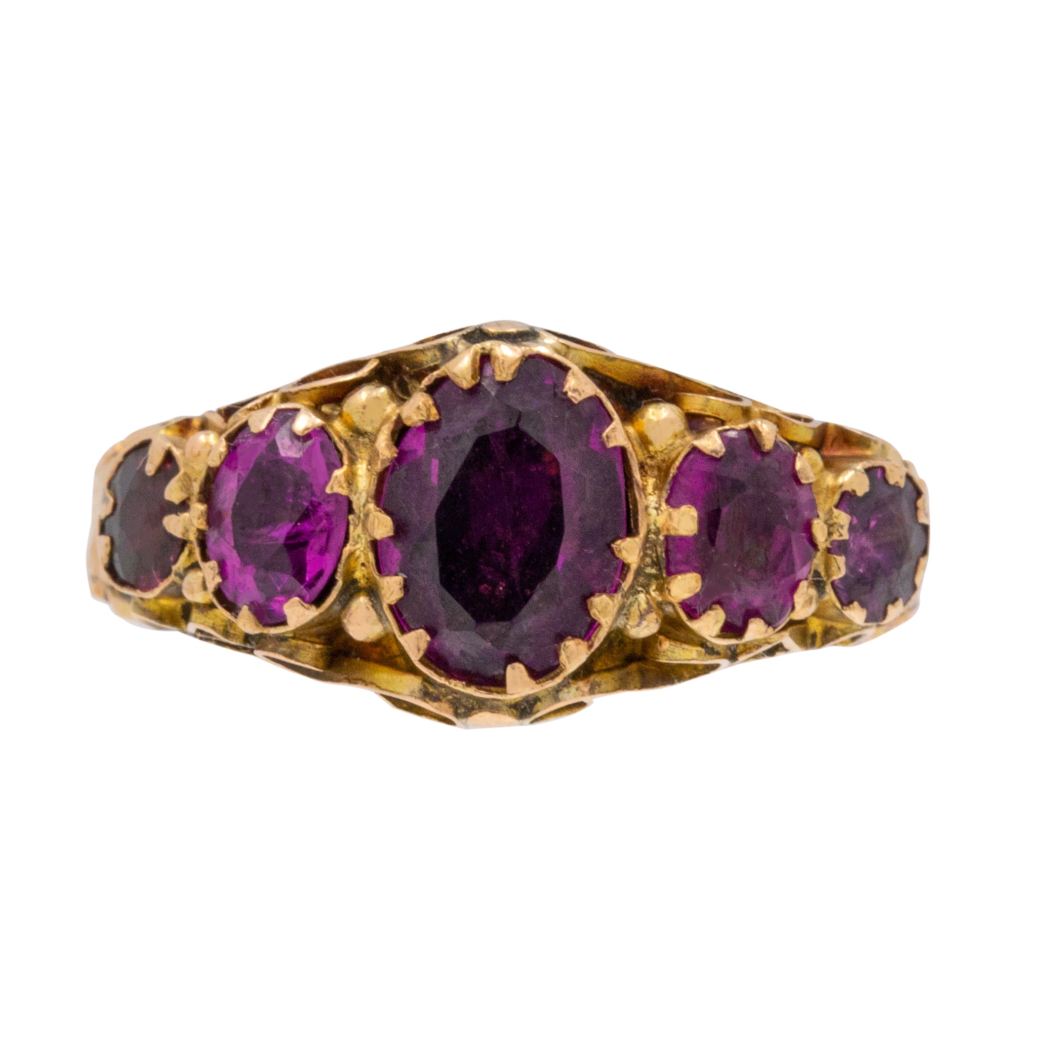 Victorian 9ct Gold Garnet Five Stone Ring, c.1860