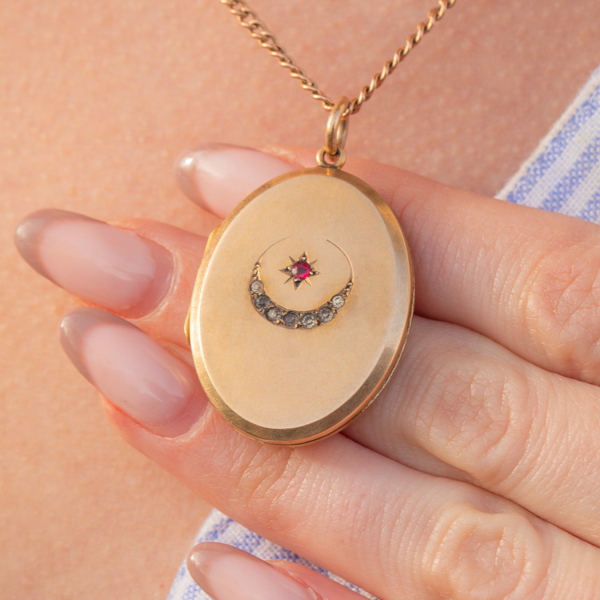Victorian 9ct Gold Paste Crescent Moon & Star Locket