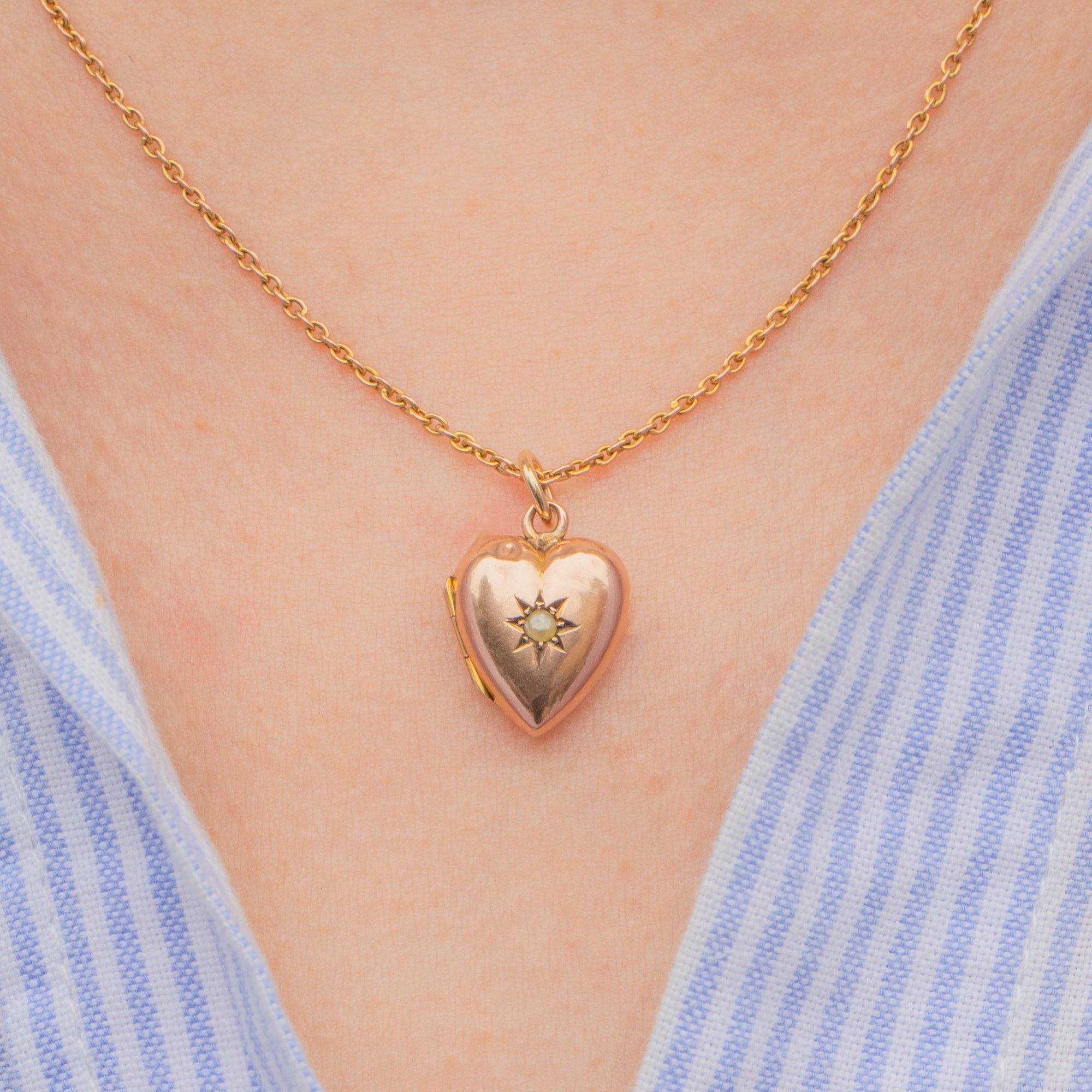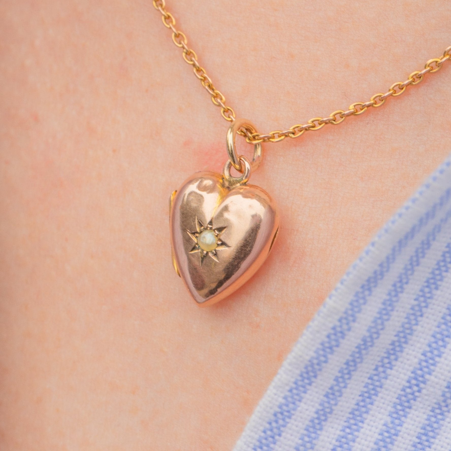 The dainty size this antique Pearl locket is just adorable, a perfectly wearable piece to keep your cherished photographs secure and close to your heart. Crafted from sun-kissed 9ct Gold, this Gold heart locket will radiate warmth as she adorns your décolletage!