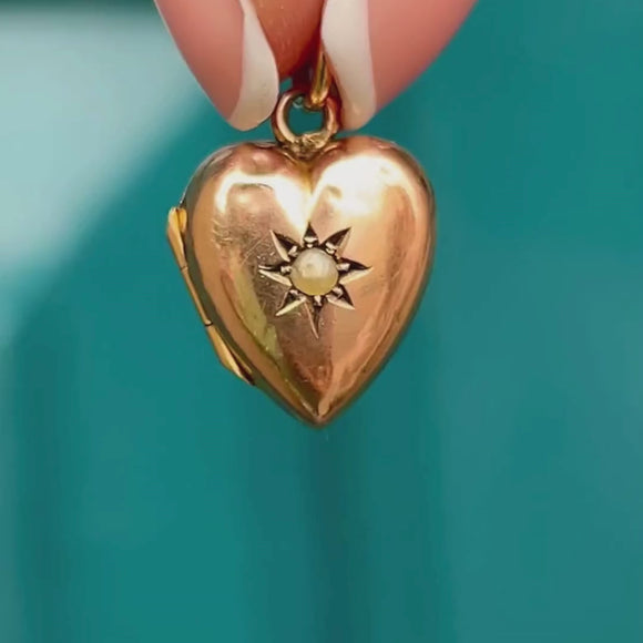 Victorian 9ct Gold Pearl Star Set Heart Locket