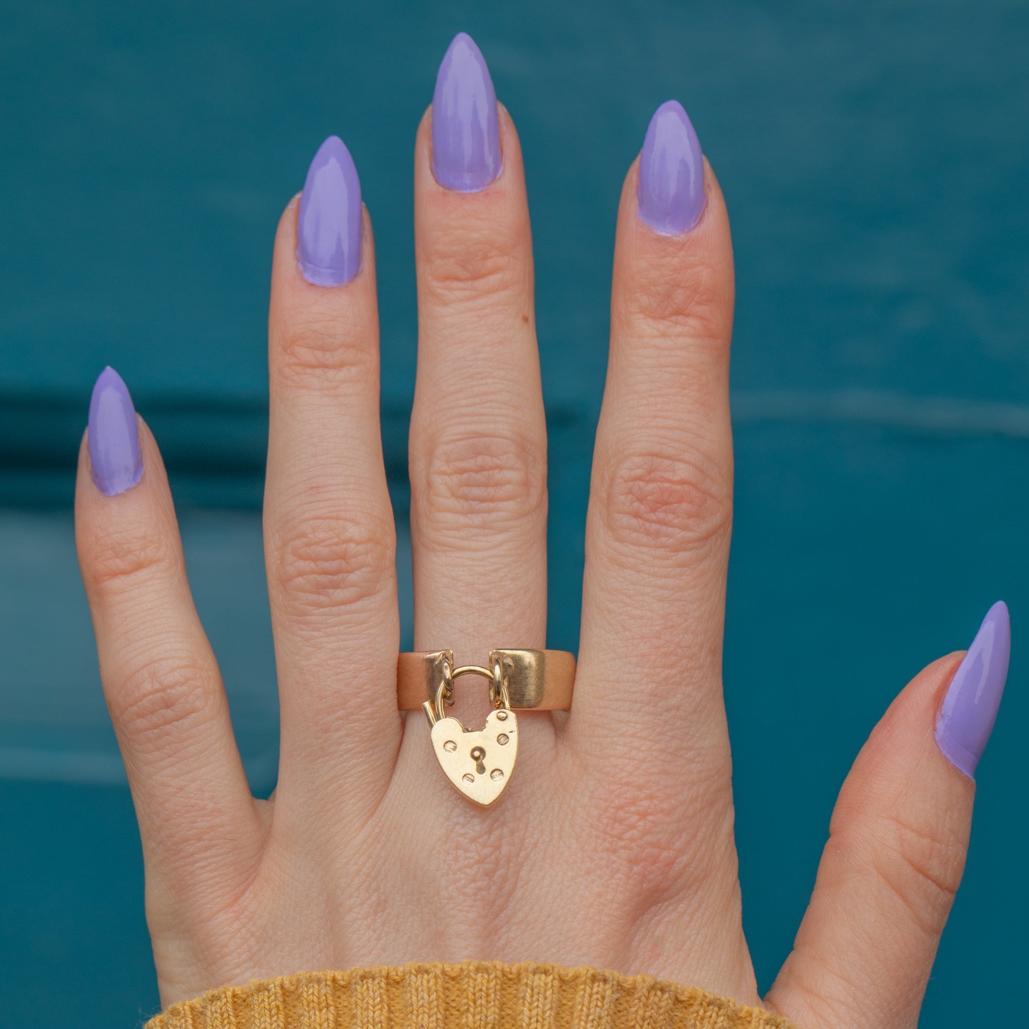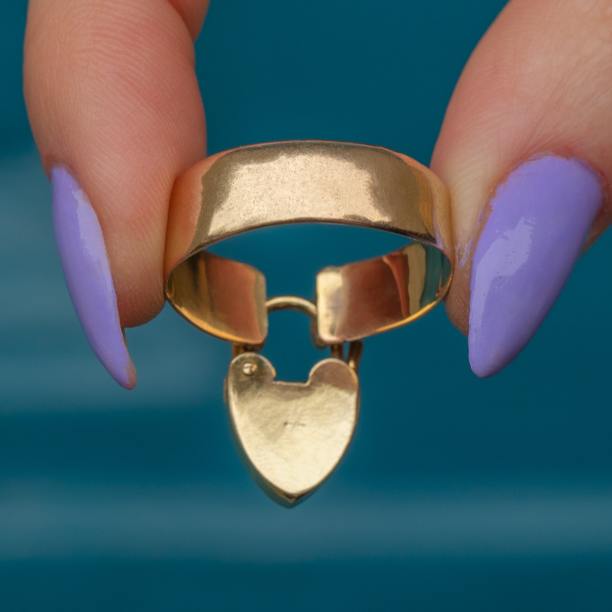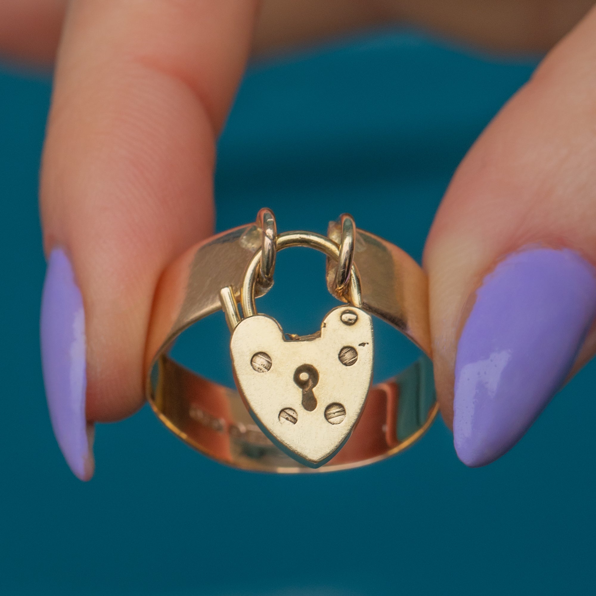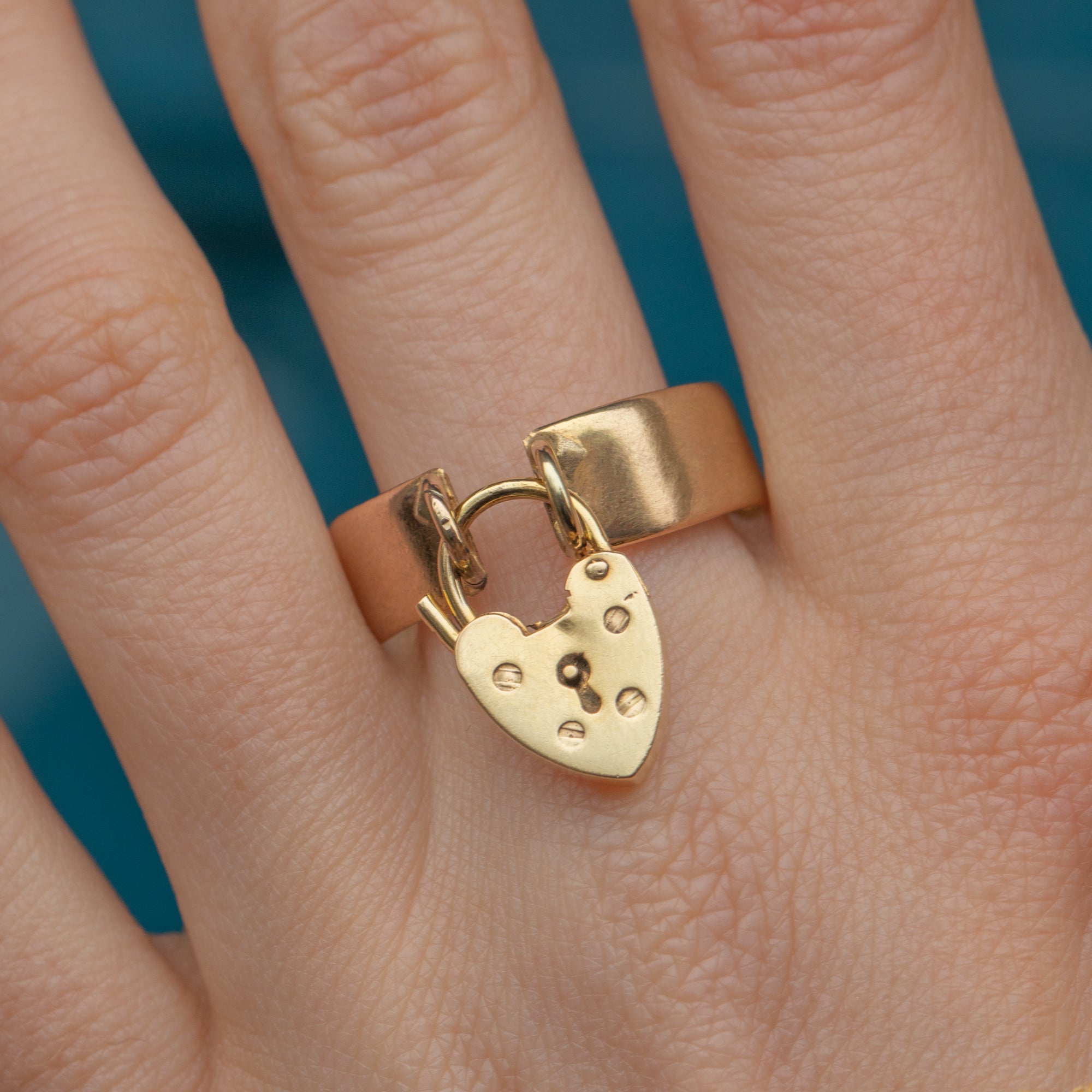 This adorable Victorian 9ct Gold ring, complete with a heart padlock charm, is a timeless piece perfect for everyday wear! Meticulously crafted from buttery 9ct Gold, this ring features a charming heart padlock resting from her chubby band.