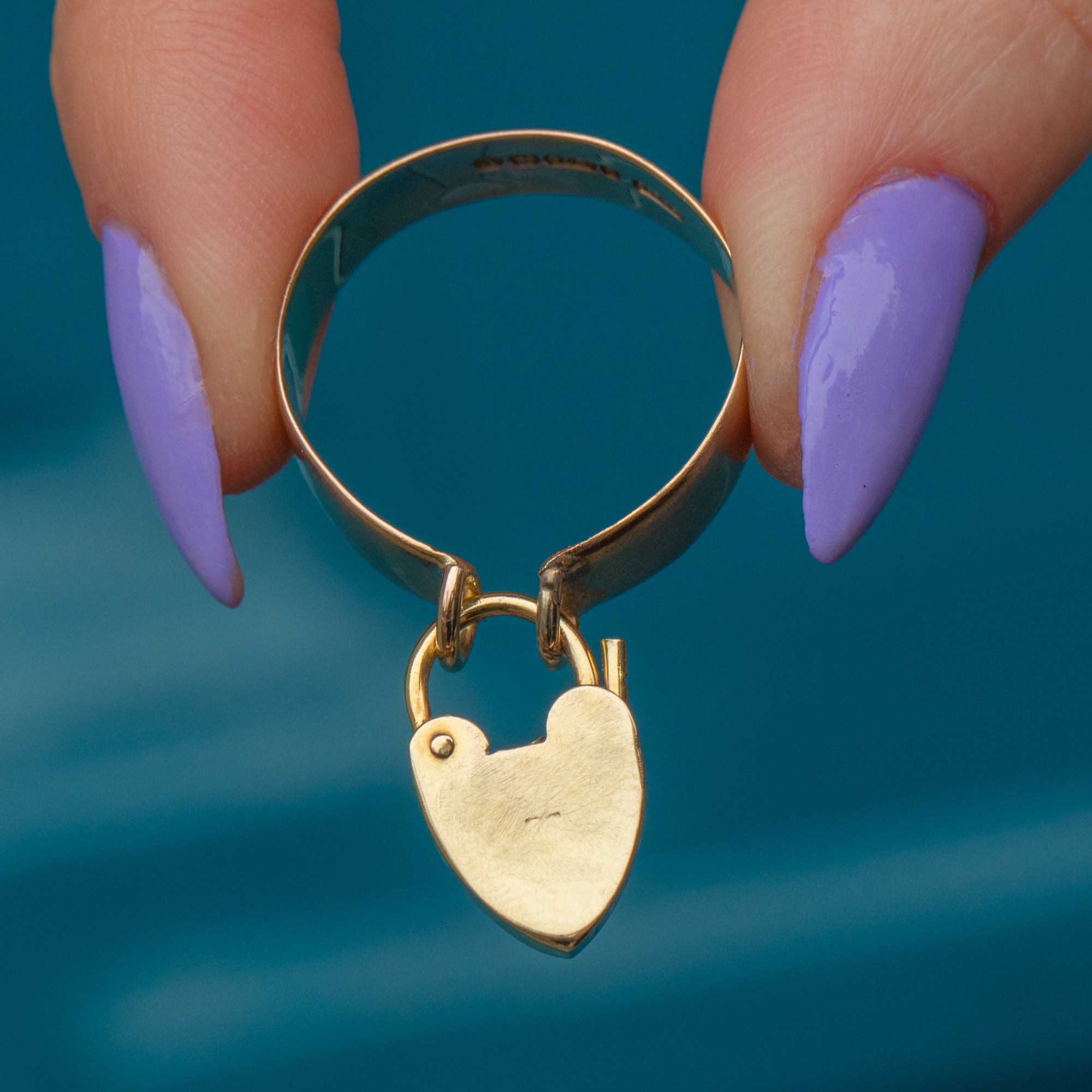 Victorian 9ct Gold Ring with Heart Padlock, c.1870