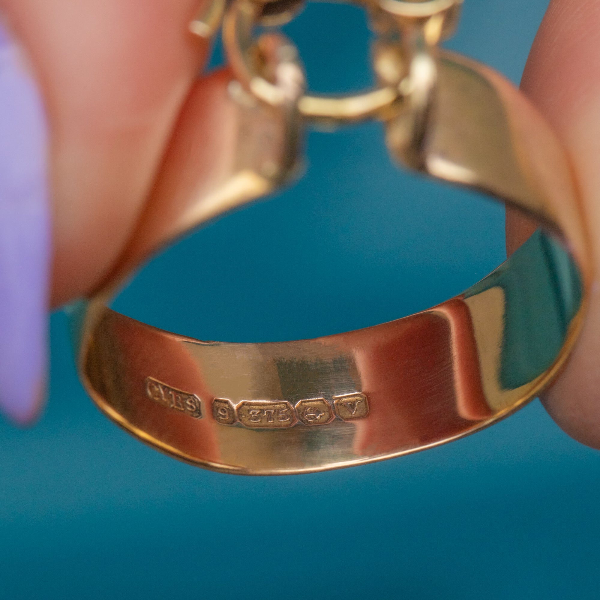 HALLMARKS: GYBS Makers mark, 9, .375, Birmingham Anchor, Date letter V for the year 1870.