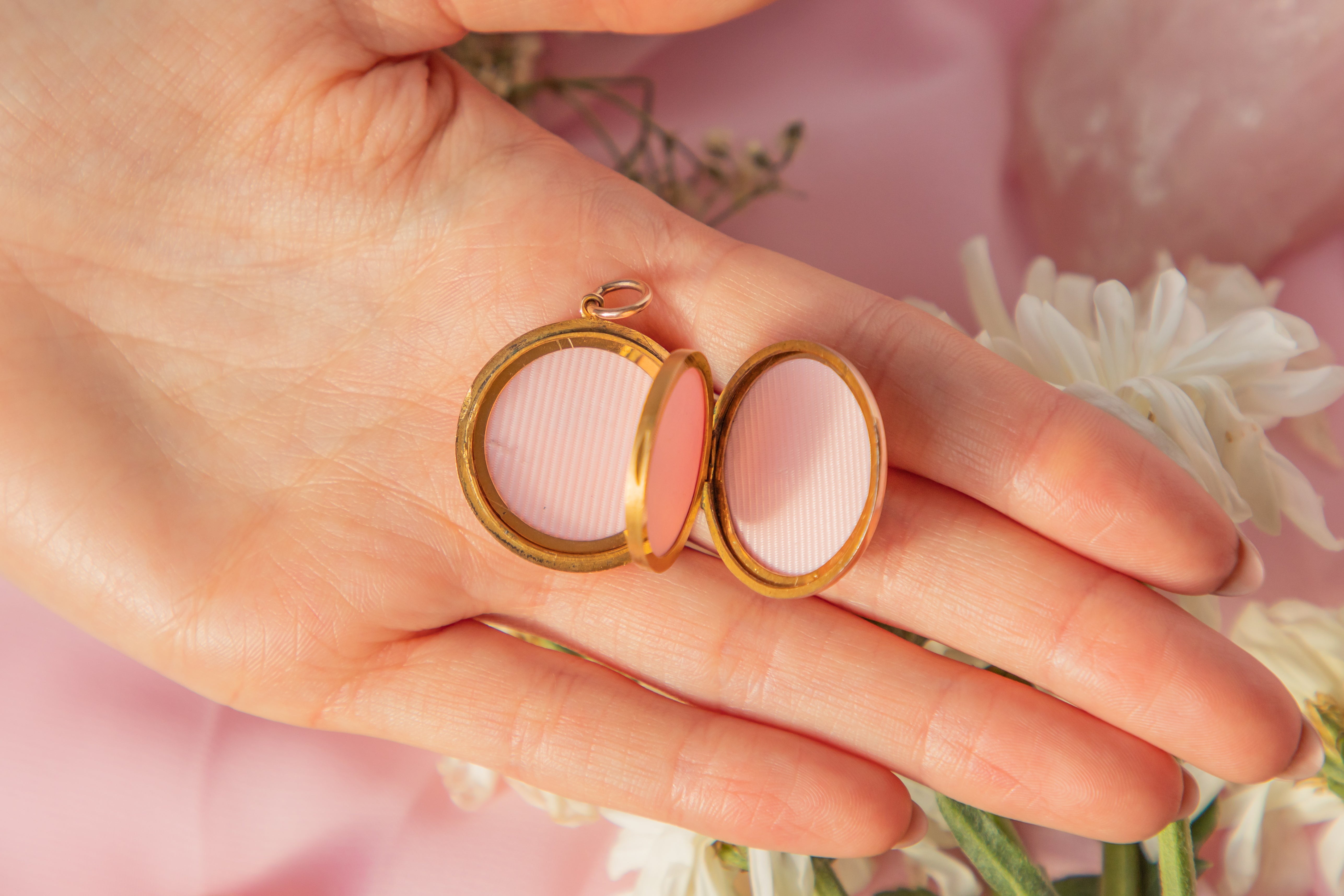 As you open this antique Gold locket, a fabulous surprise awaits inside! She boasts three frames with space for up to four images, so you can keep all precious family members or friends close at all times.