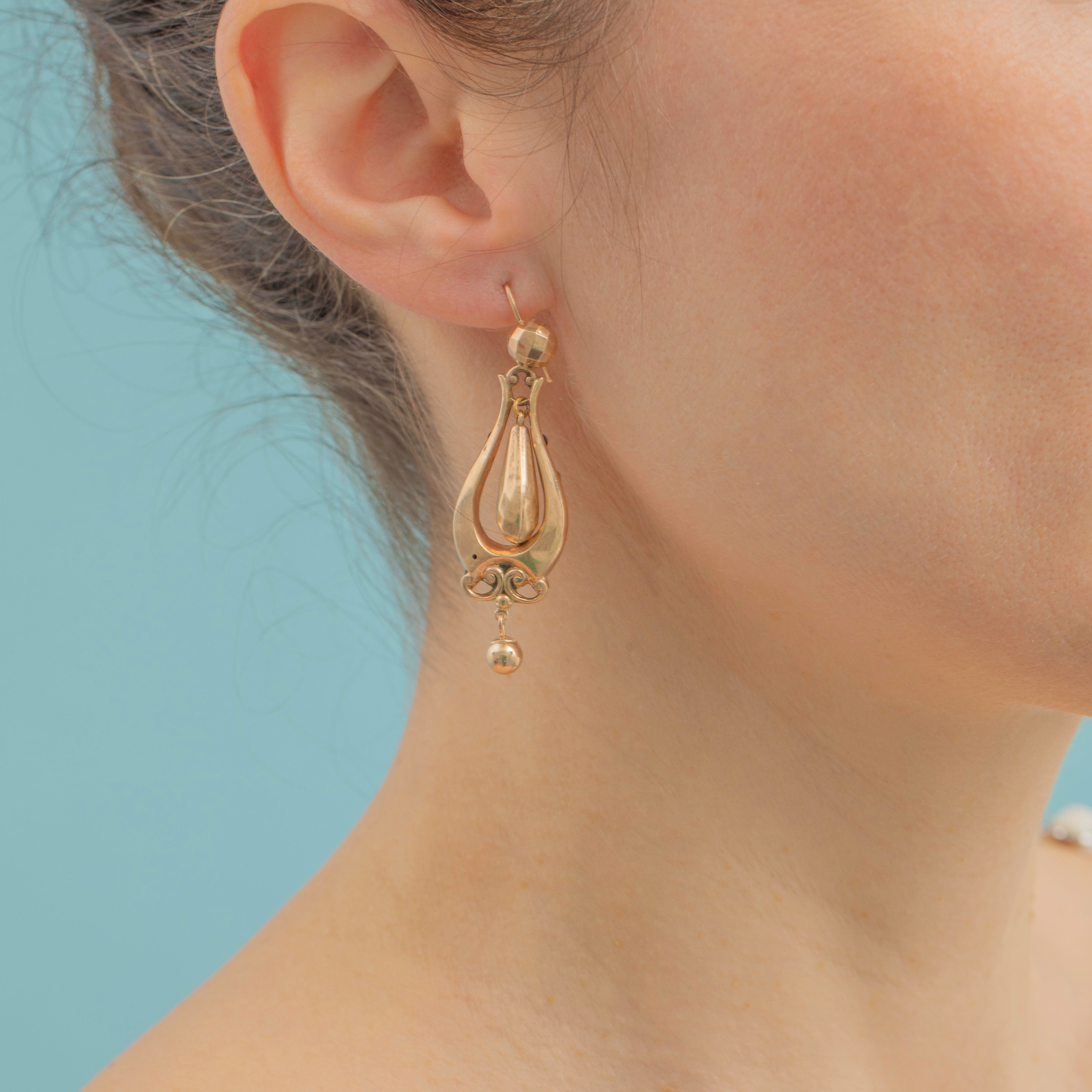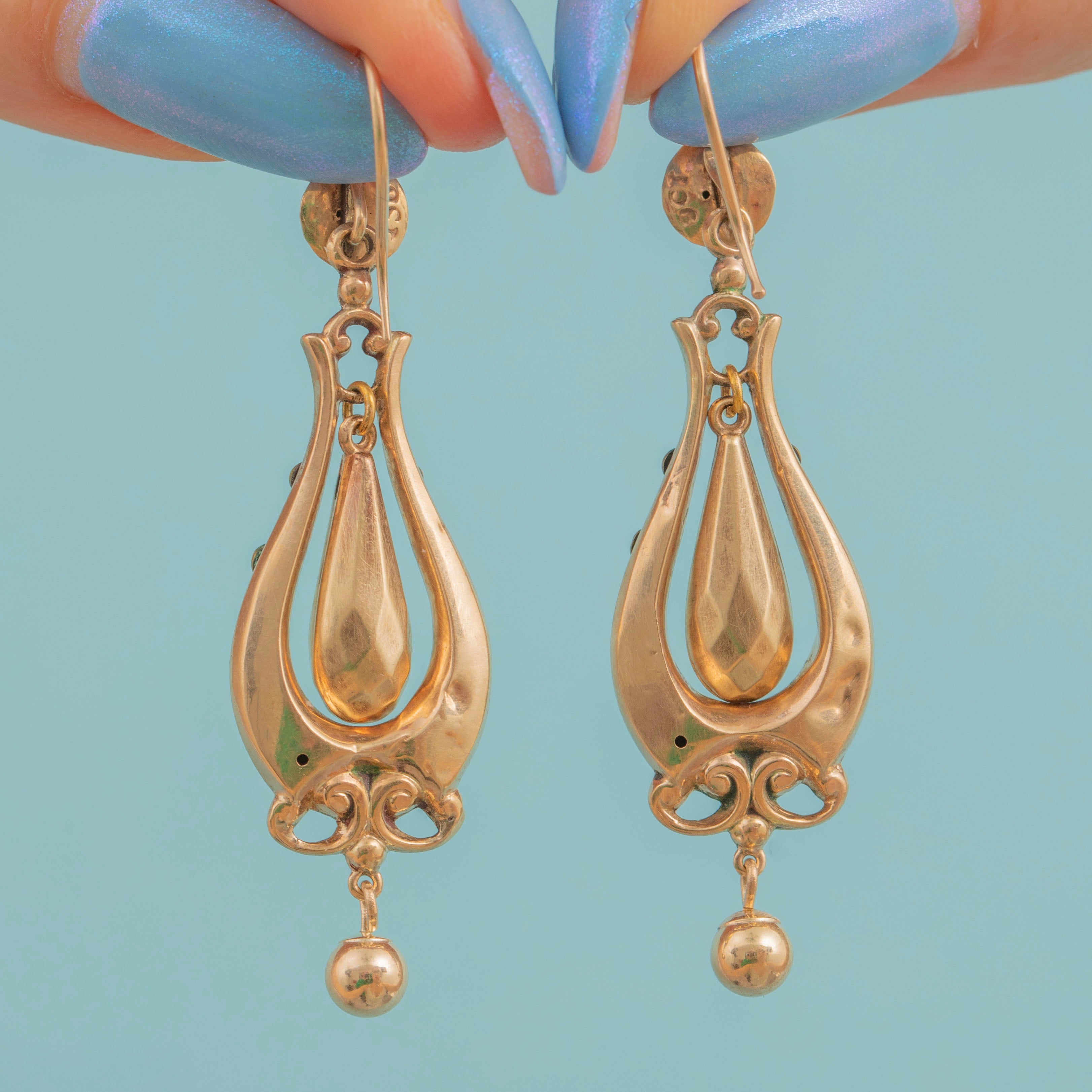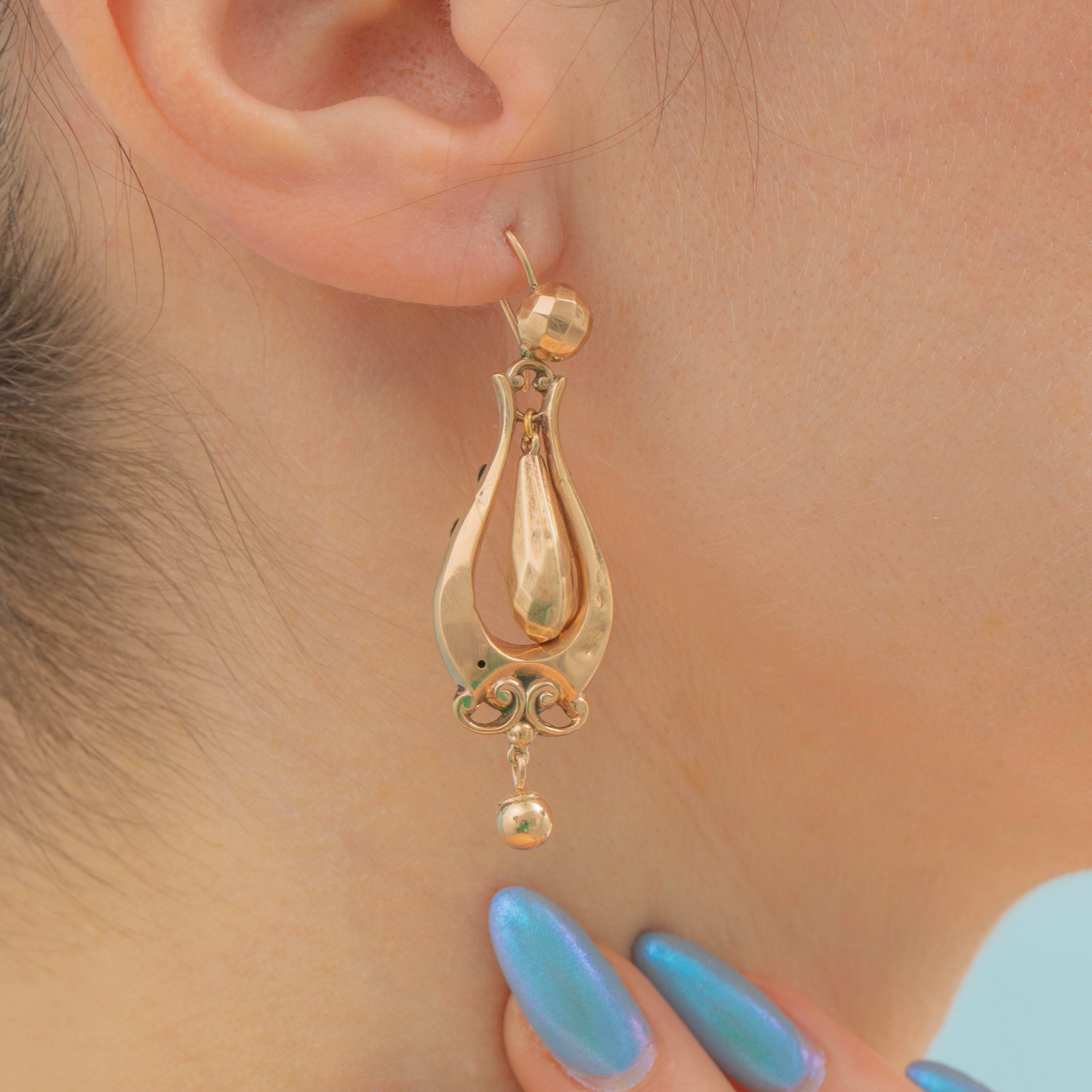 These Victorian earrings have a faceted drop at the centre and a bead at their base providing subtle movement in the ear!