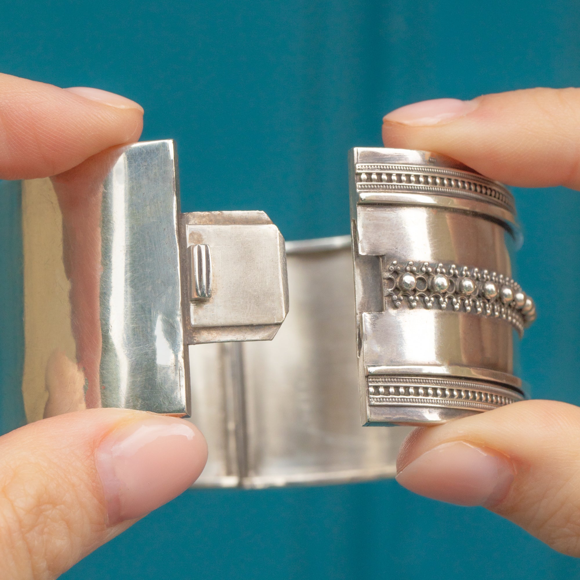 Victorian Aesthetic Silver Cuff Bangle Beaded Detail 39g